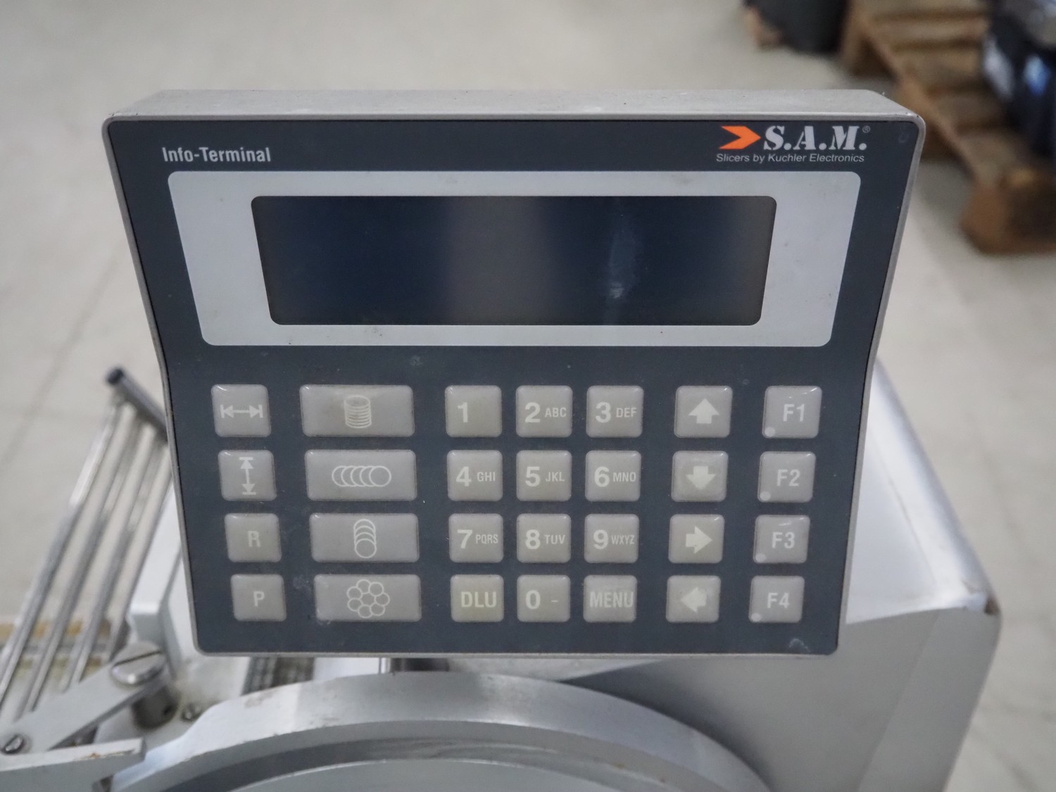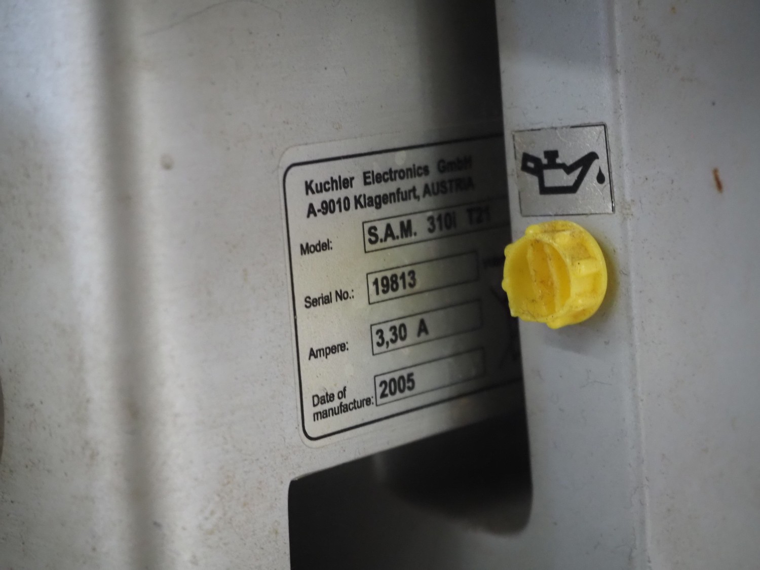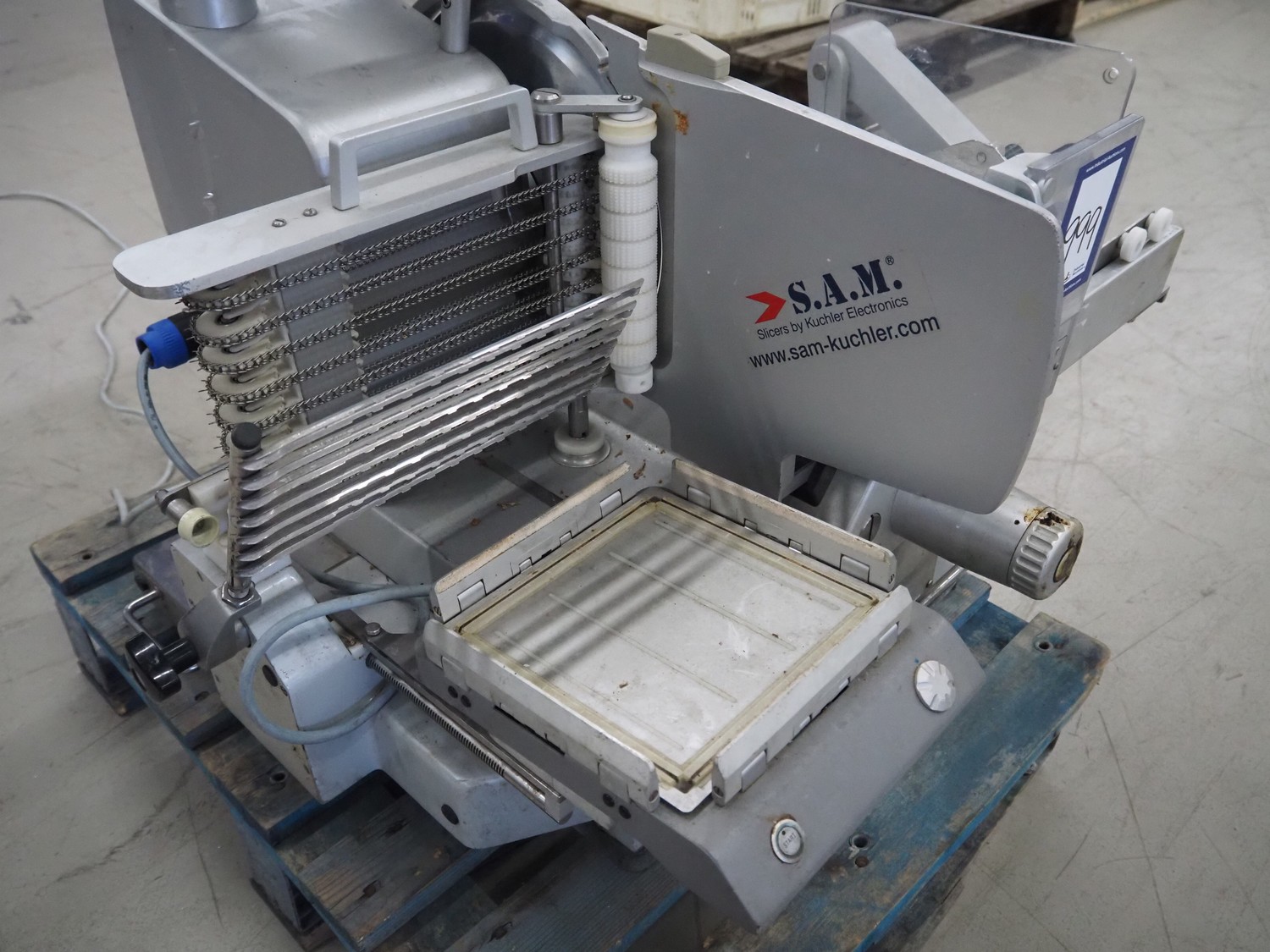 S.A.M. automatic slicer, model: S.A.M. 310i T21, serial number: 19813, year of construction: 2005, 3.3 A, dimensions: 800 mm x 700 mm x 700 mm.