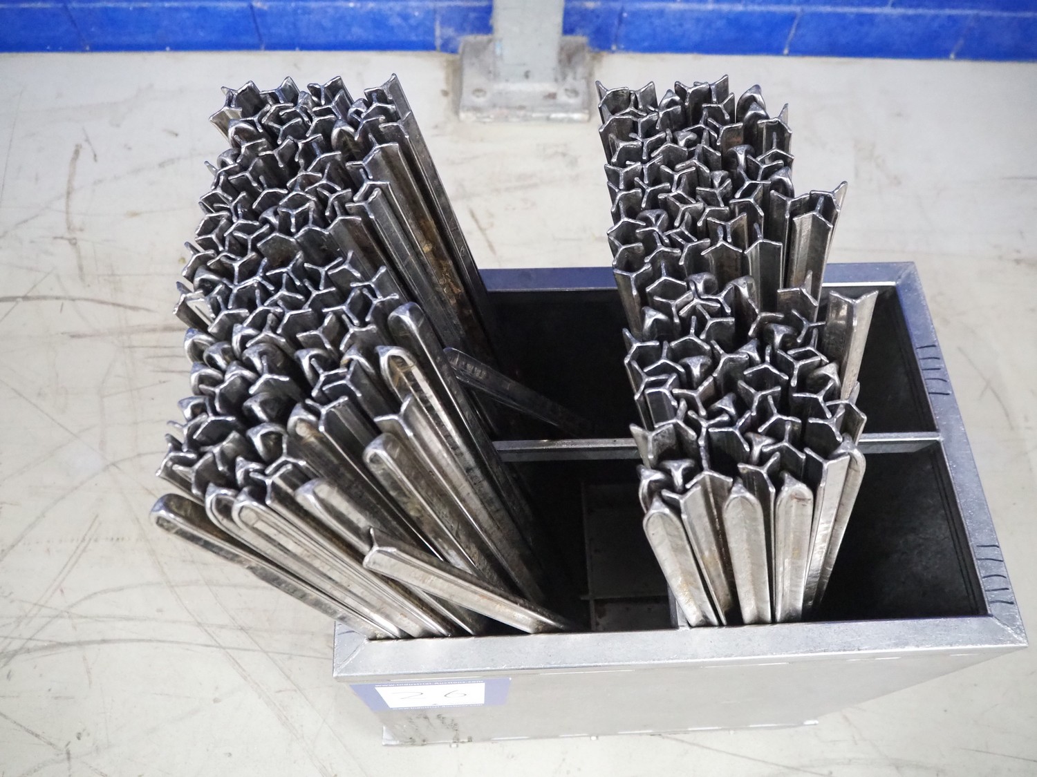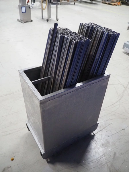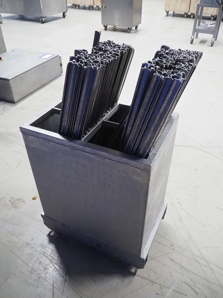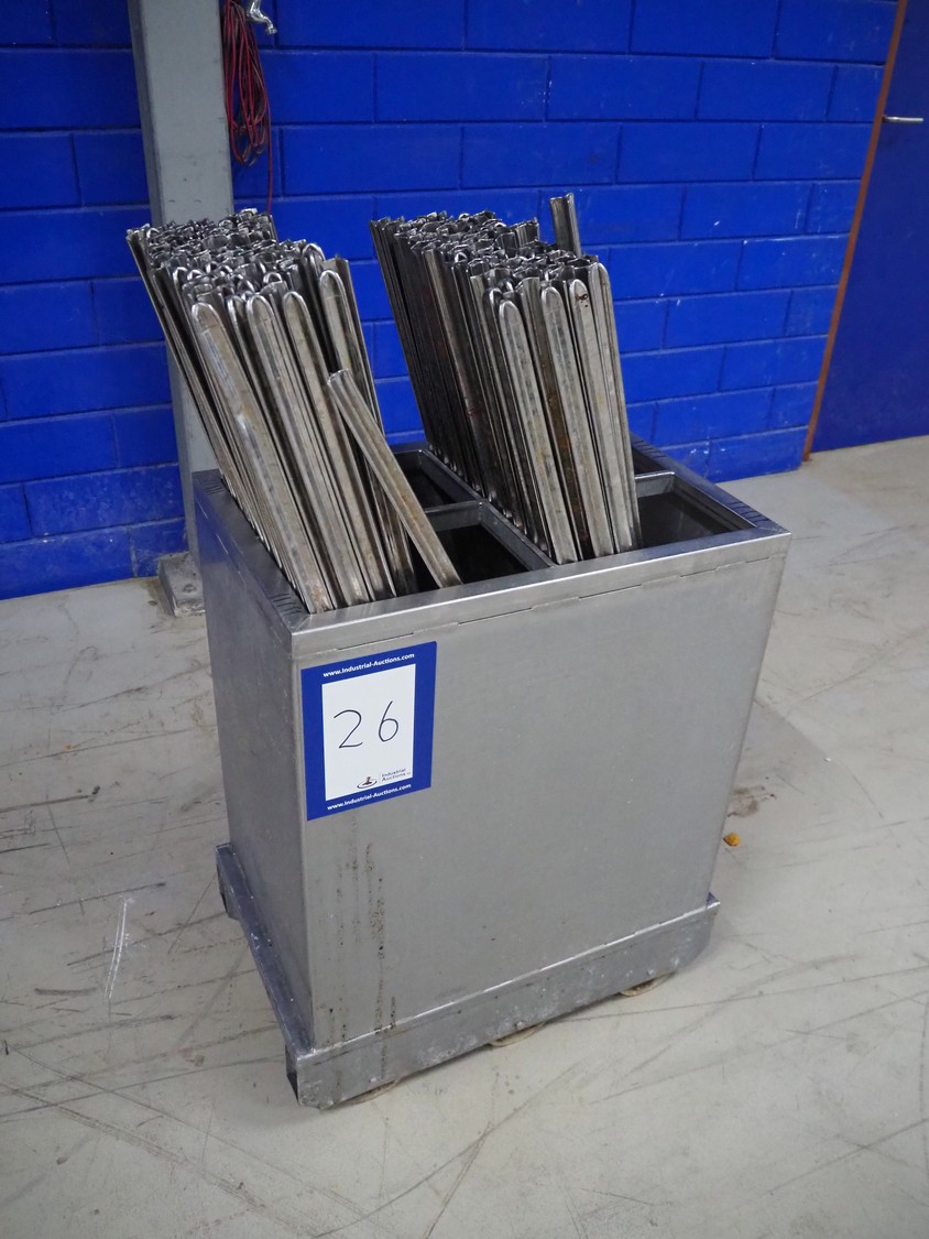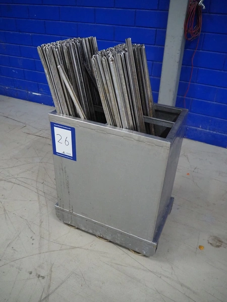 S/s trolley with large amount of s/s Y-shaped smoke sticks, smoke stick length: 1000 mm, total dimensions: 650 mm x 410 mm x 1100 mm.
