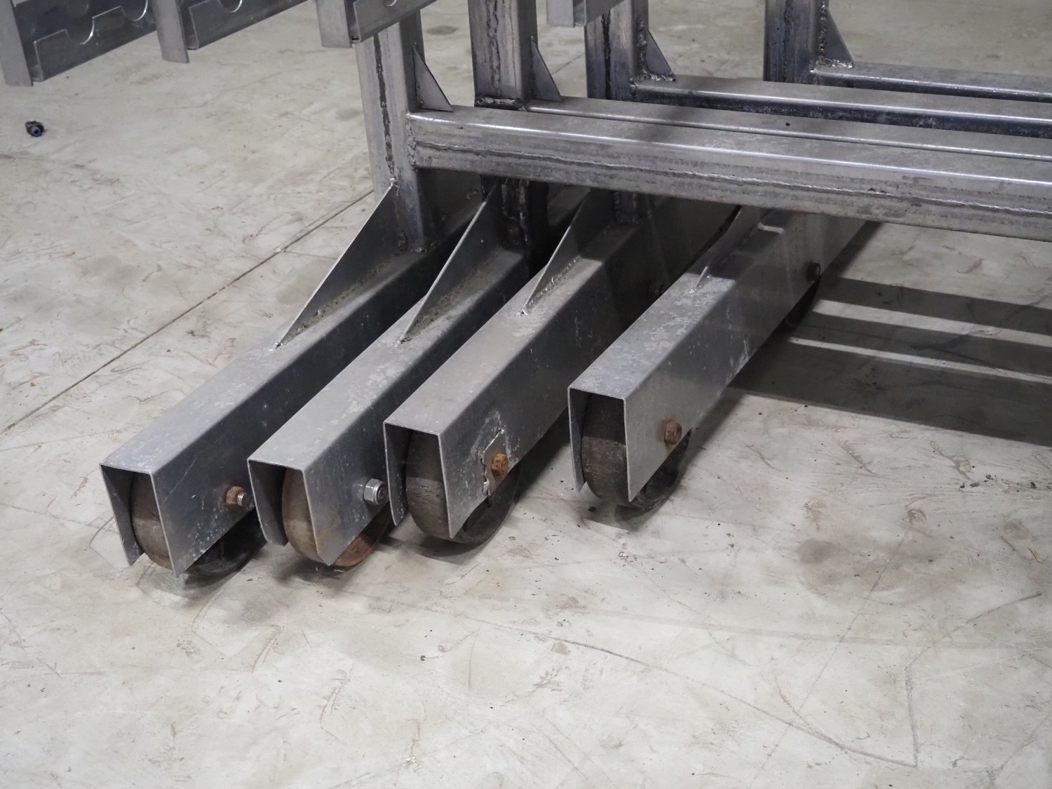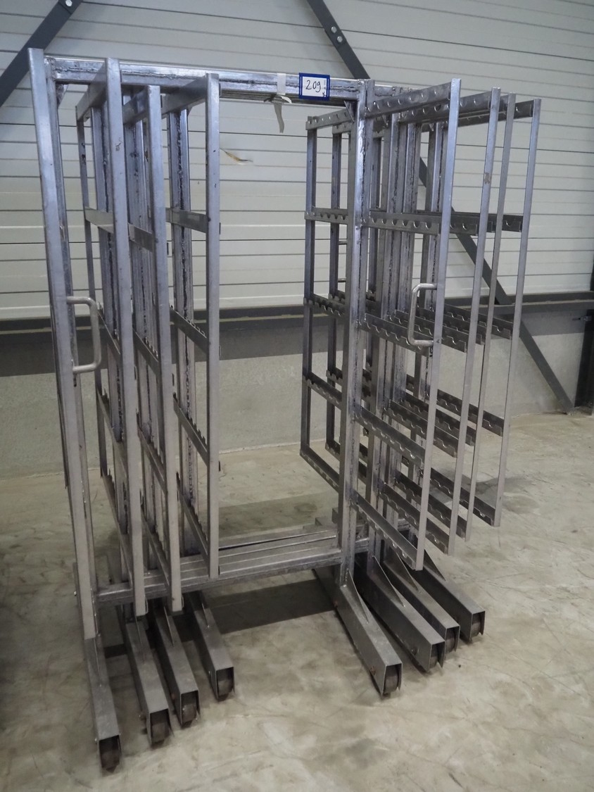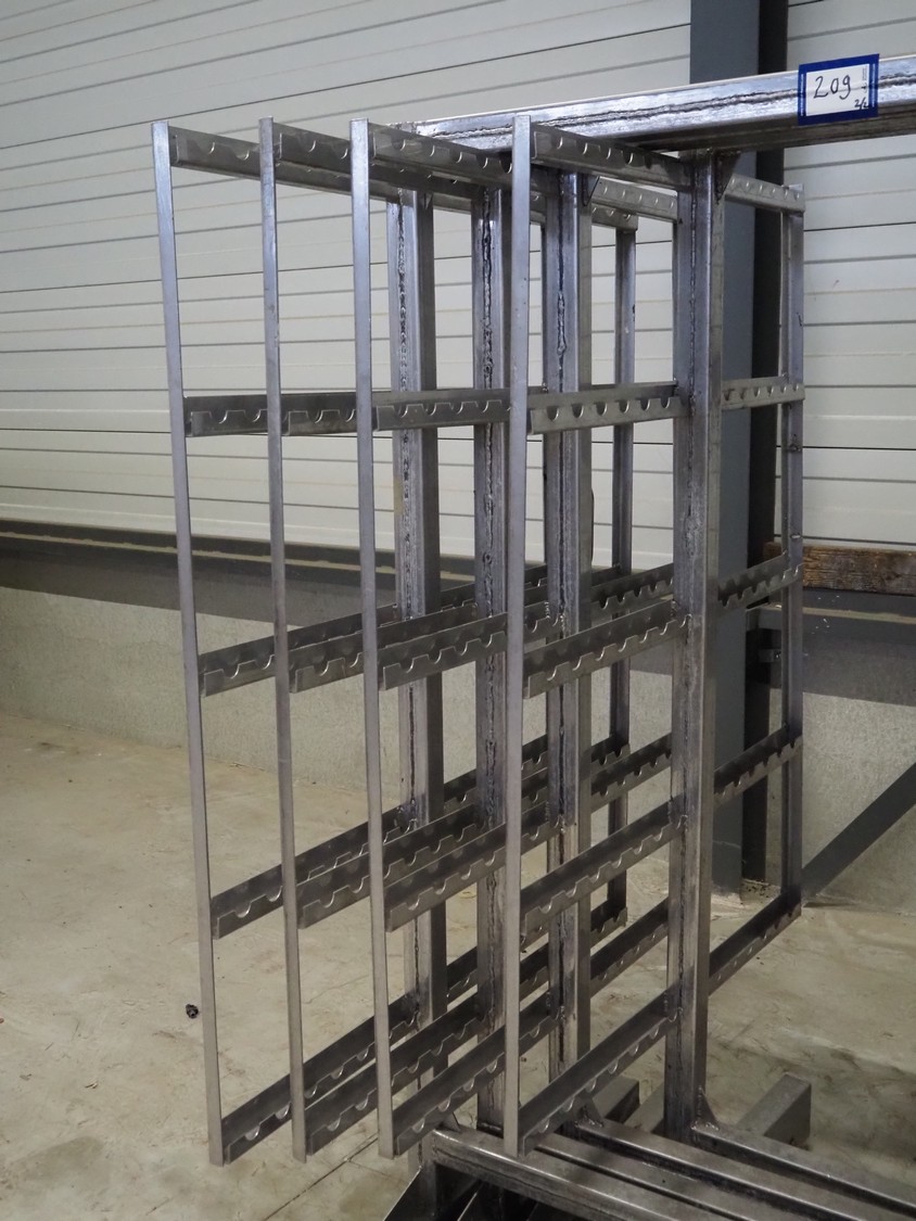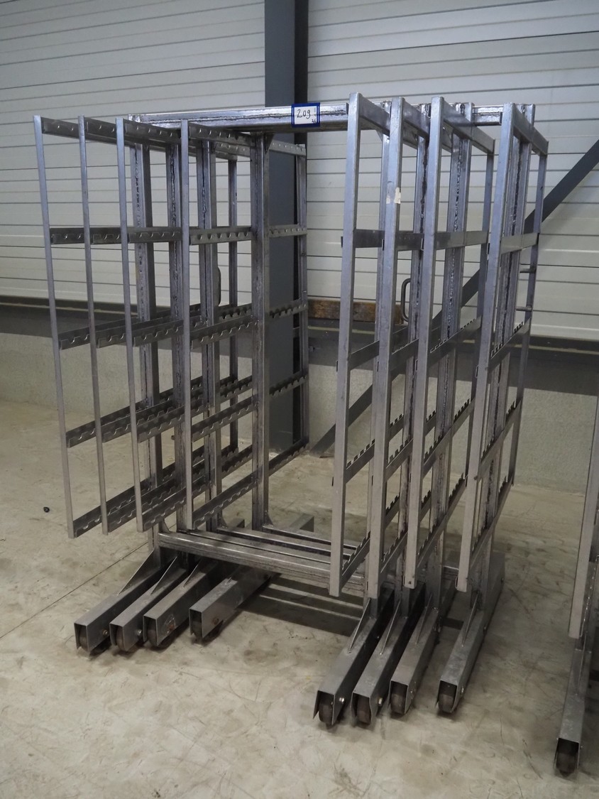 8 s/s smoke trolleys, 5 floors each, dimensions floors: 1000 mm x 1000 mm, total dimensions: (8x) 1000 mm x 1000 mm x 2000 mm.