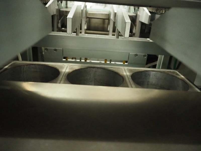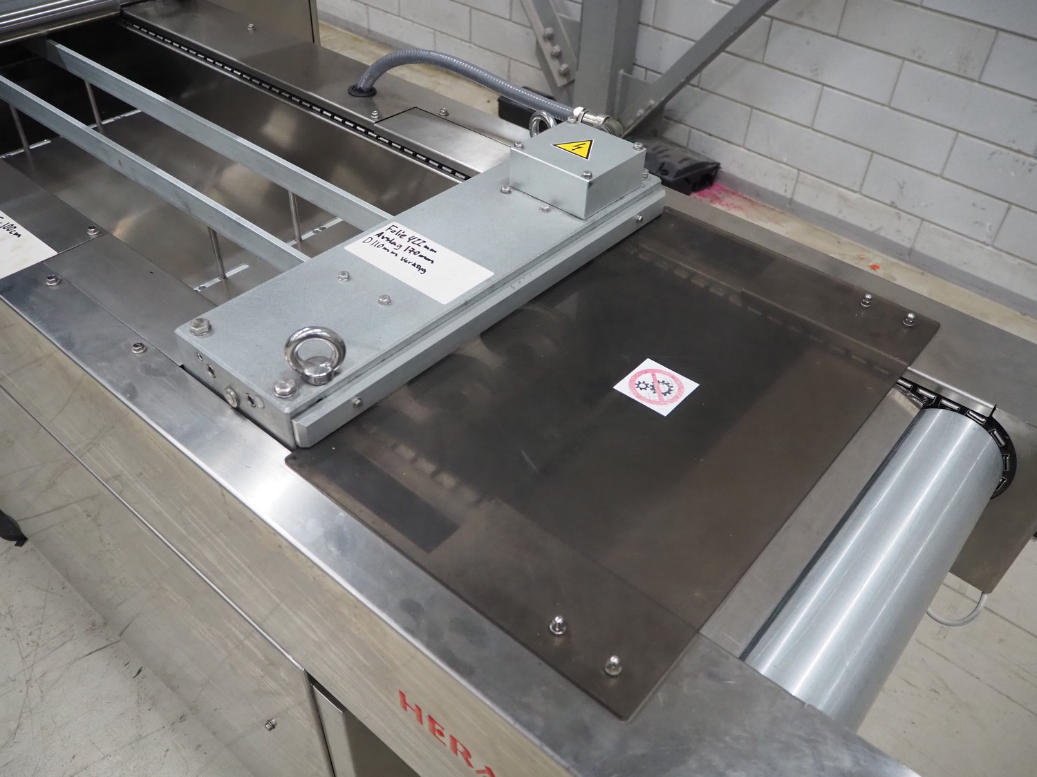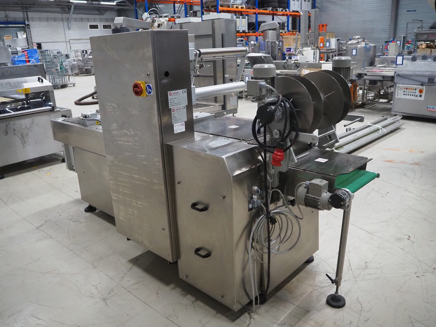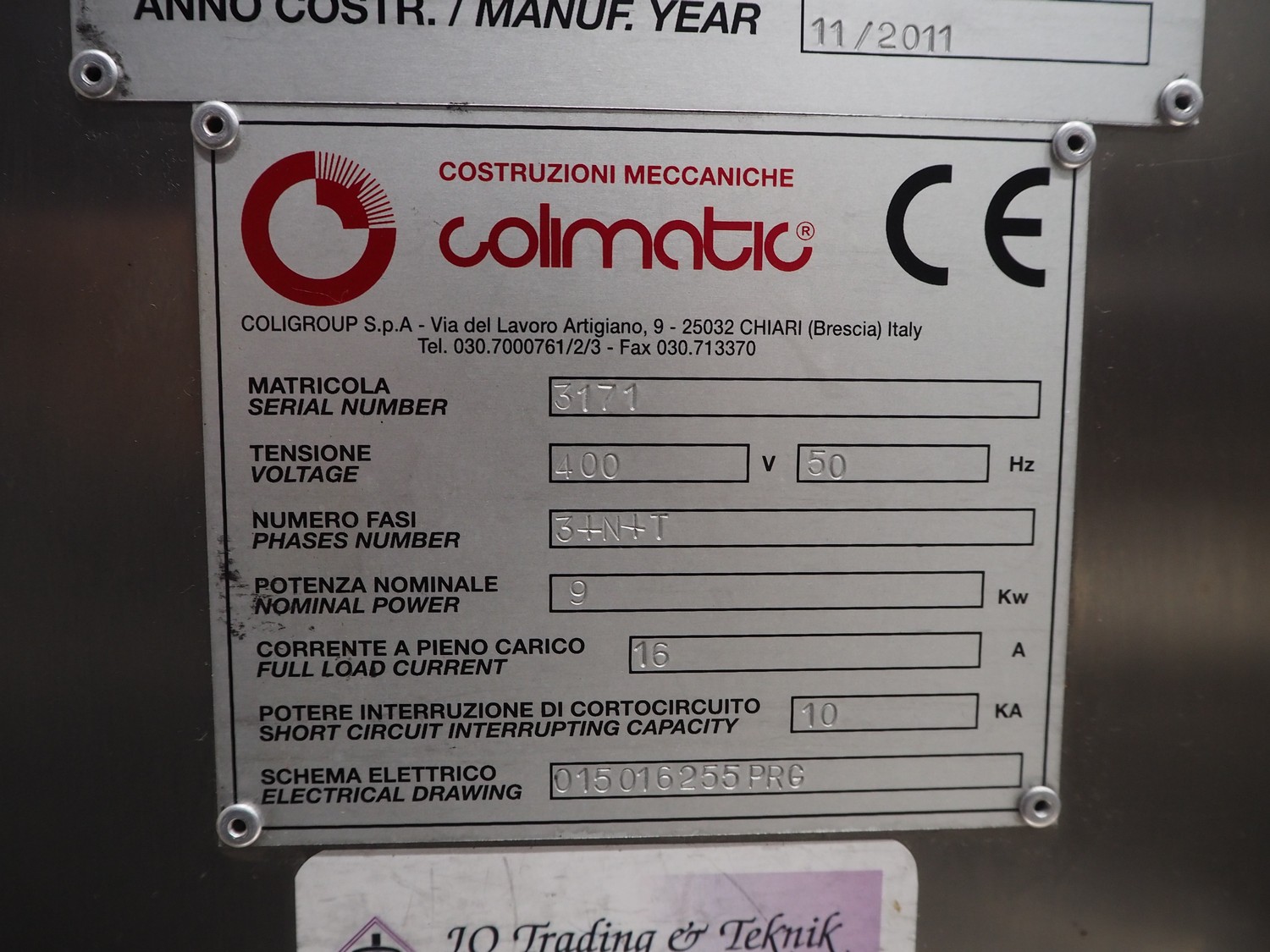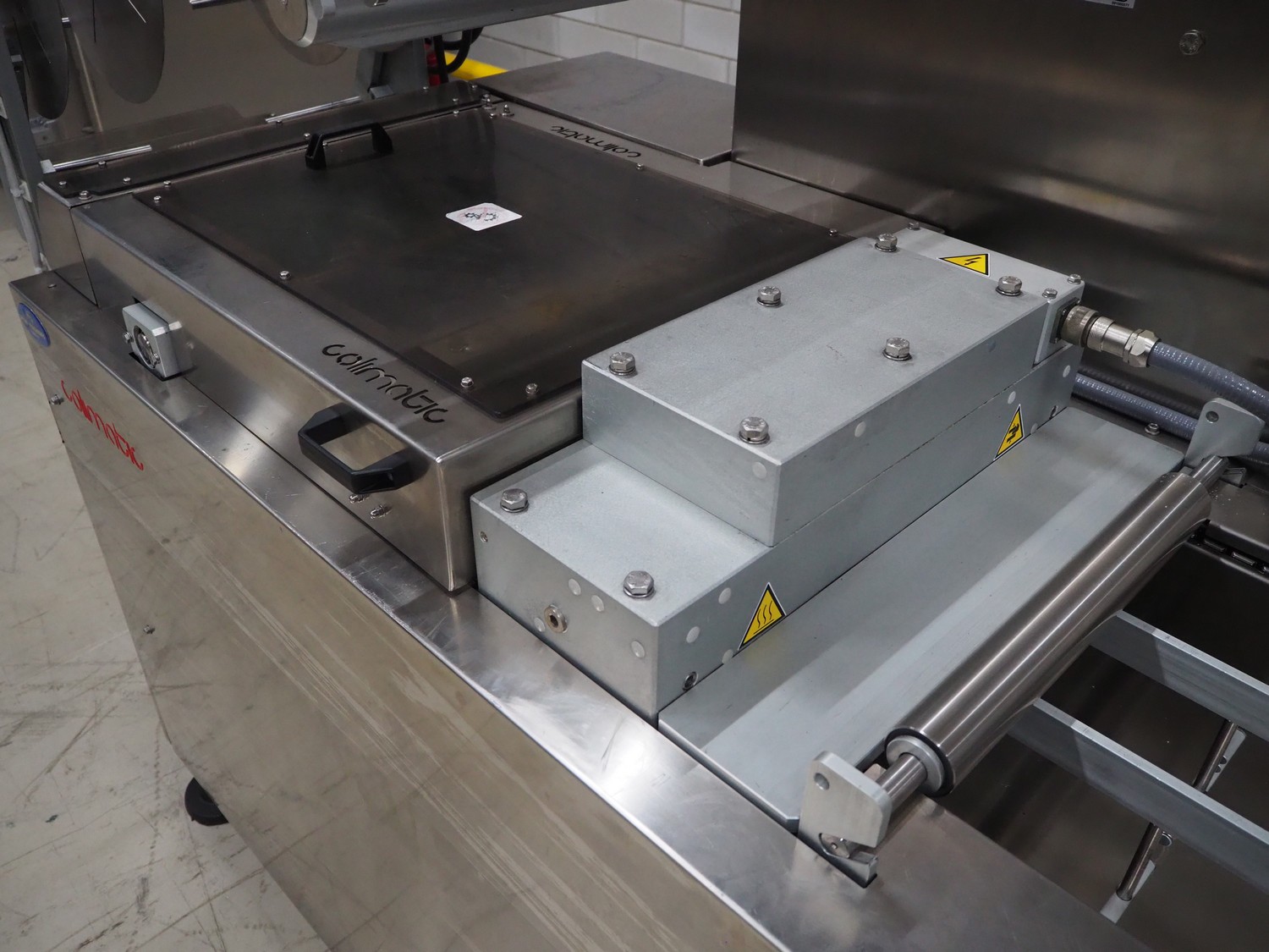 Colimatic thermoformer, model: THERA 250, type: F420/400, serial number: 3171, year of construction: 11/2011, 400 V, 3 Ph, 50 Hz, 16 A, 9 kW, weight: 1200 kg, dye: (3x) Ø 110 mm, plastic outfeed belt, belt width: 365 mm, Busch vacuum pump, type: RA 0063 F 5K3, capacity: 63 m³ per hour, total dimensions: 3400 mm x 1050 mm x 1900 mm.