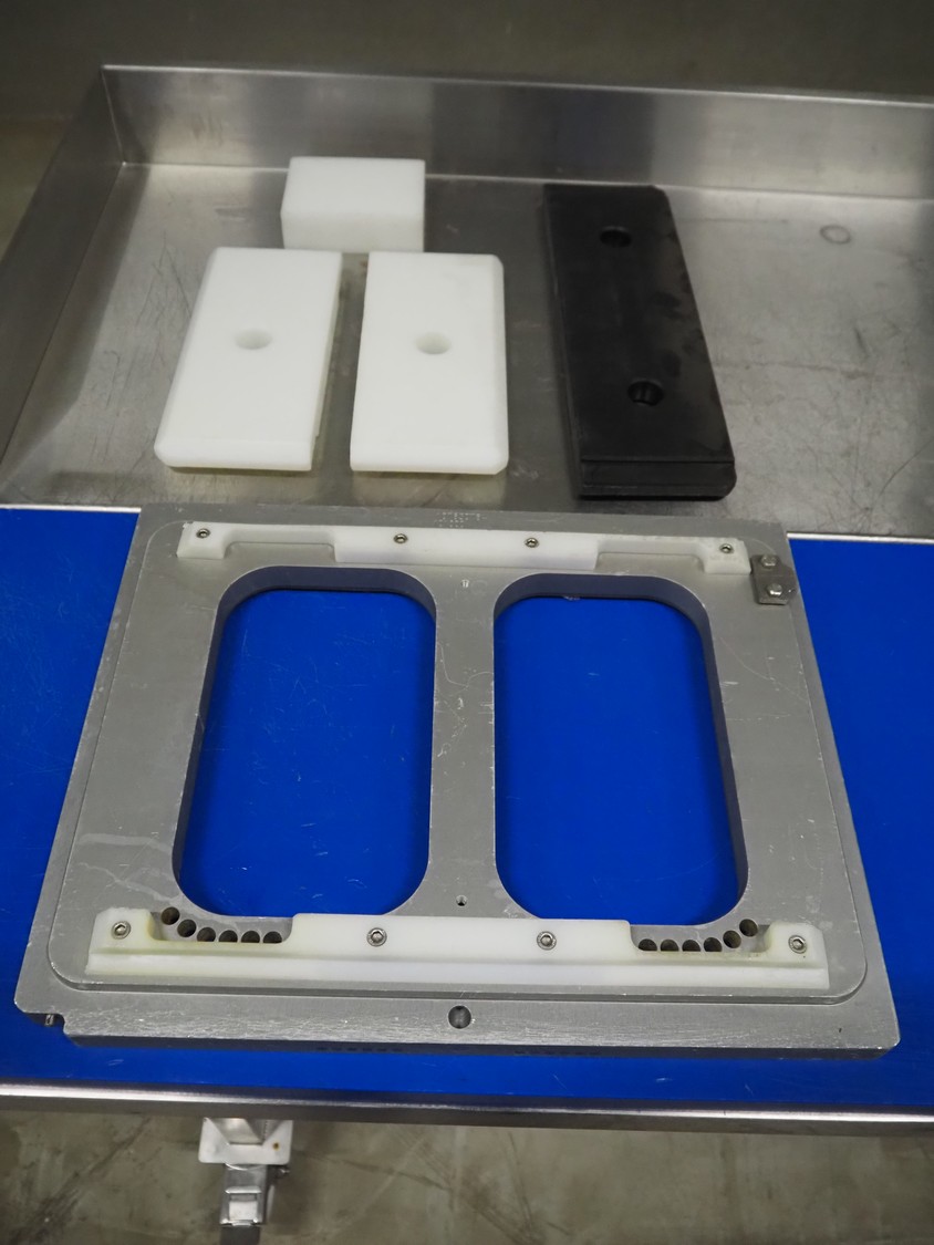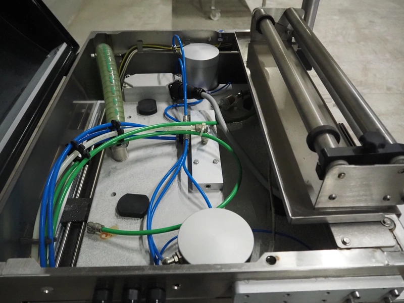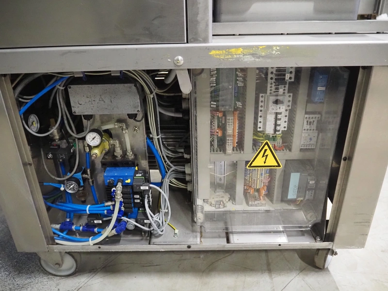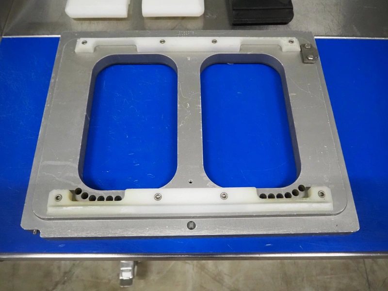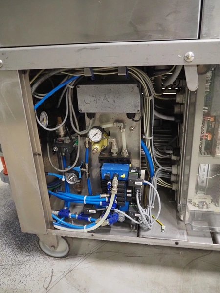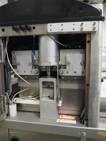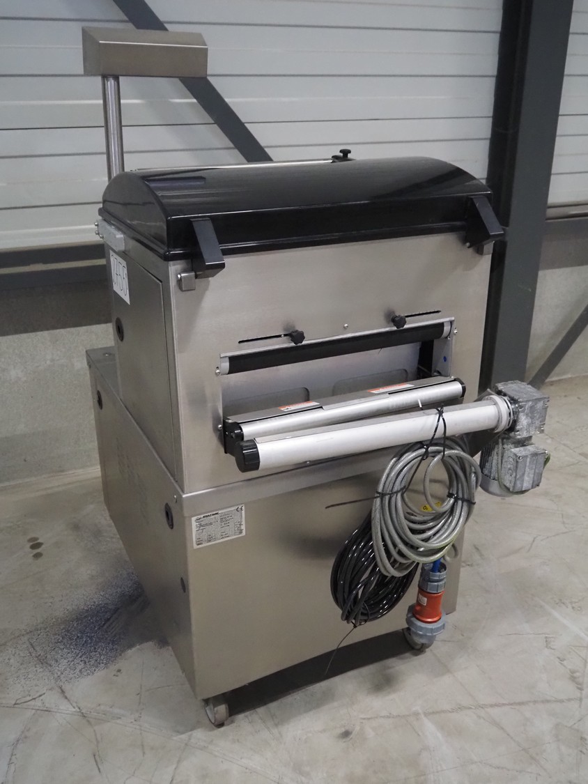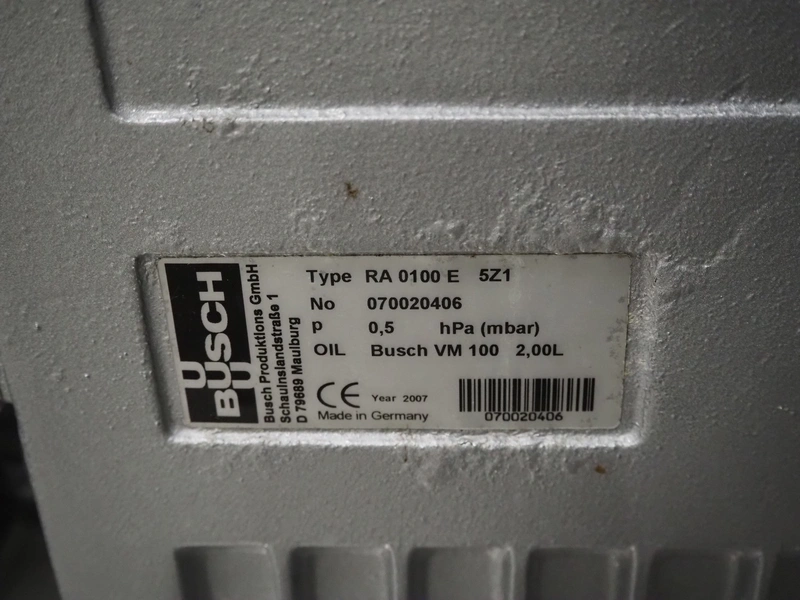 Multivac mobile traysealer, type: T250, serial number: 115818, year of construction: 2007, 415 V, 3 Ph, 50 Hz, 20 A, 6.2 kW, Busch vacuum pump, type: RA 0100 E 5Z1, number: 070020406, year of construction: 2007, capacity: 100 m³ per hour, dimensions dye: 350 mm x 245 mm, total dimensions: 1330 mm x 800 mm x 1650 mm. Including additional dye, dimensions dye: (2x) 275 mm x 170 mm.