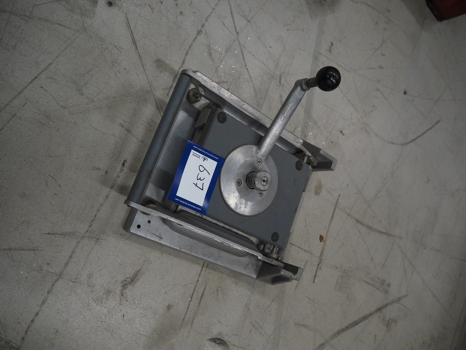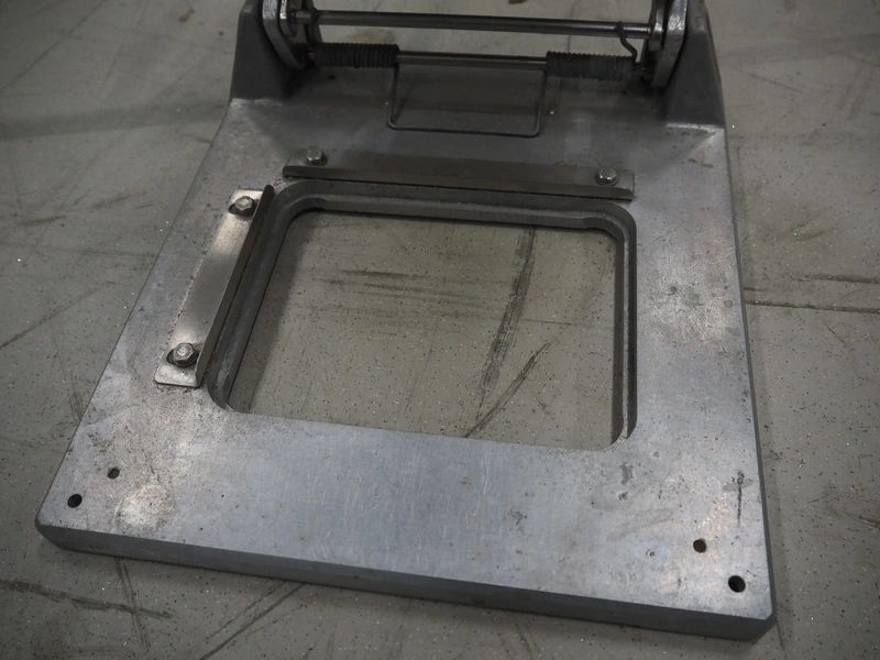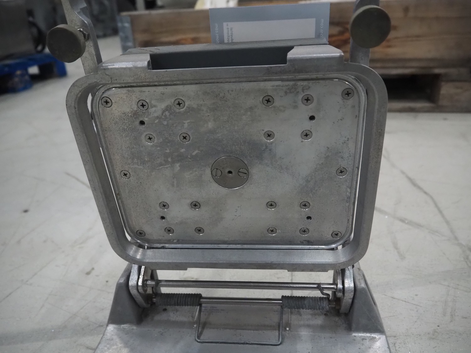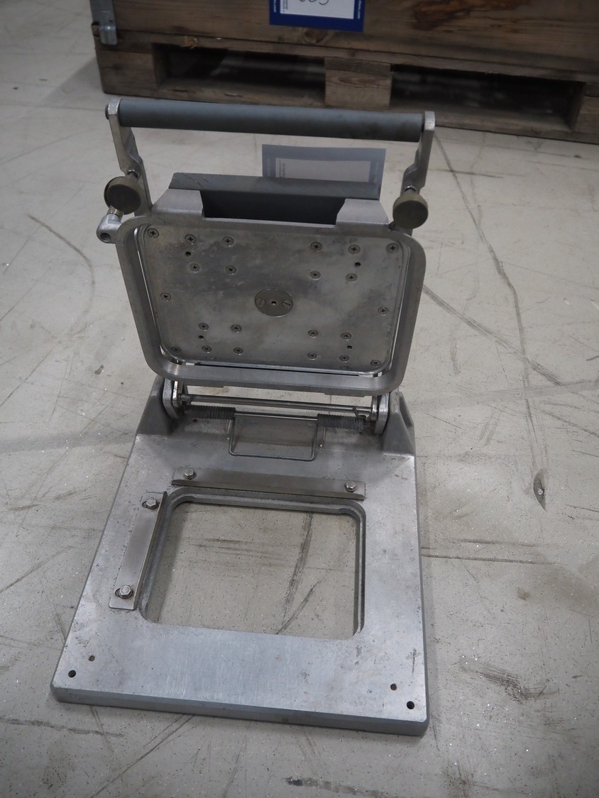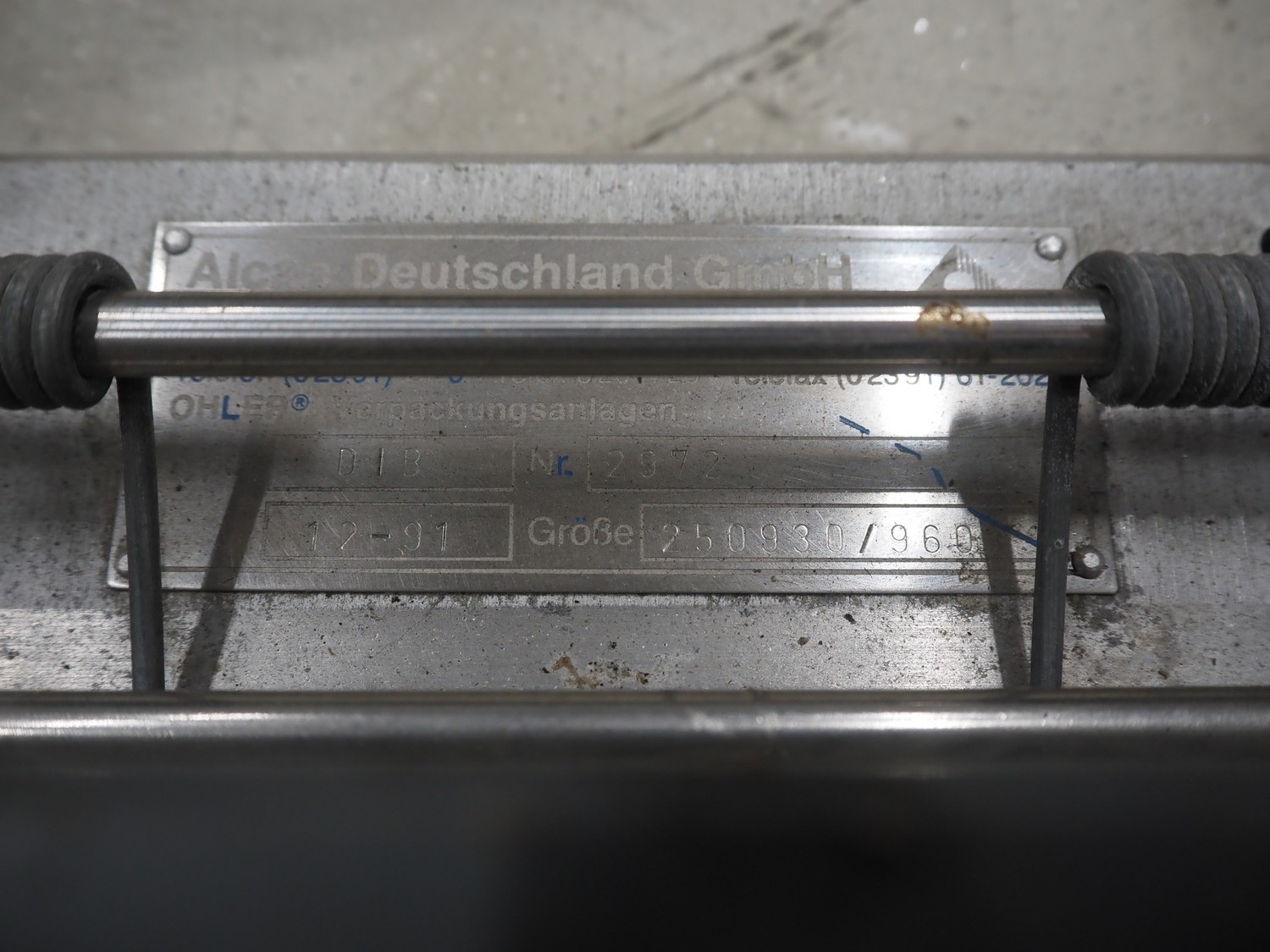Alcan traysealer, type: DIB, number: 2972, year of construction: 12-91, dye: 205 mm x 145 mm, total dimensions: 380 mm x 350 mm x 230 mm.