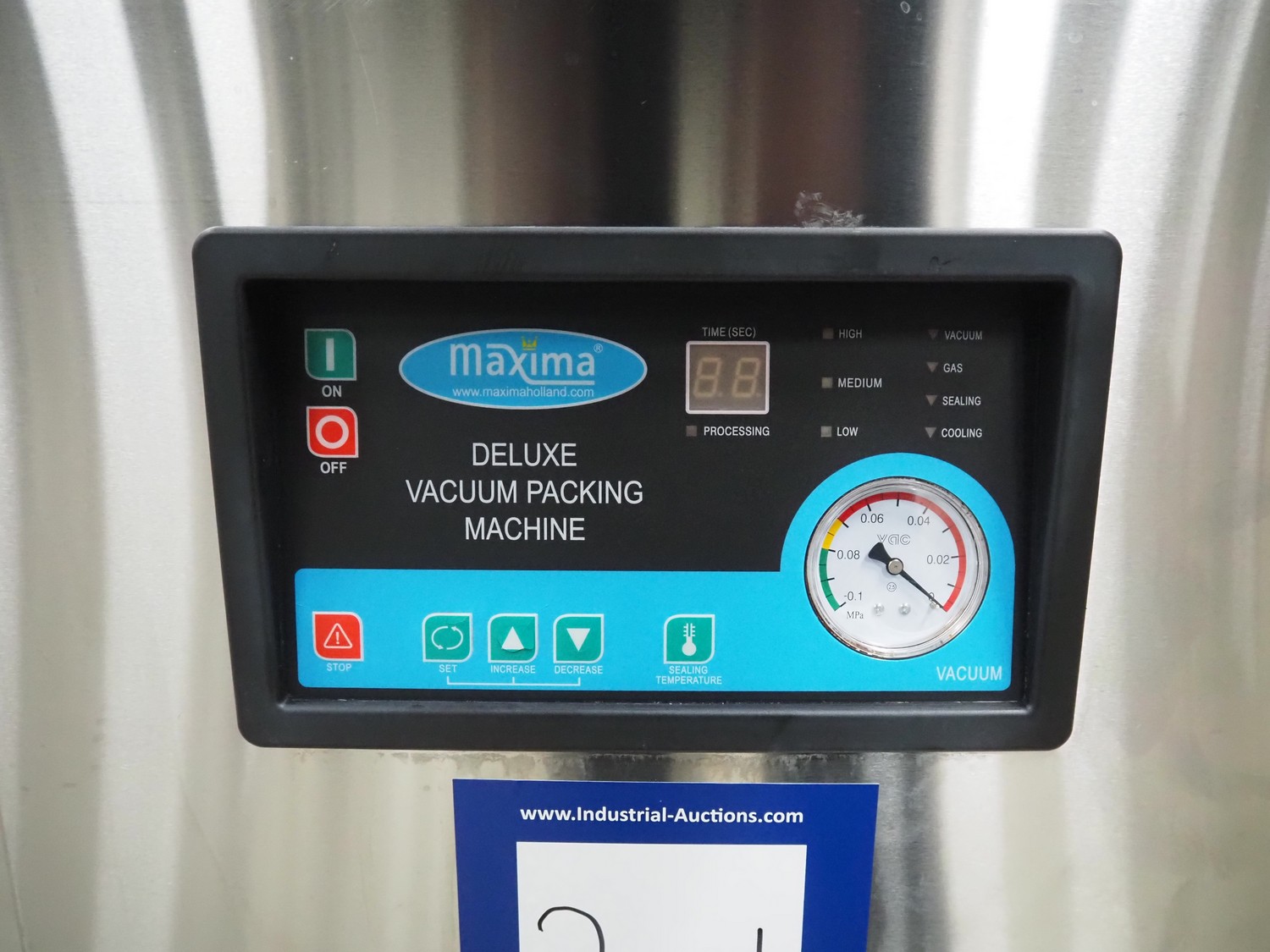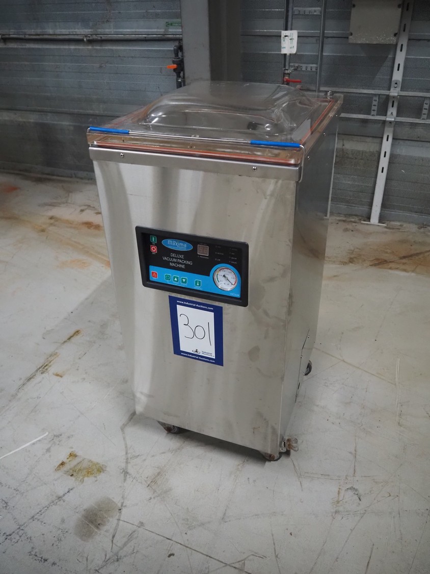 Maxima mobile vacuum machine, model: MVAC500, serial number: 500-055, seal length: 400 mm, dimensions chamber: 440 mm x 420 mm, total dimensions: 560 mm x 500 mm x 1100 mm.