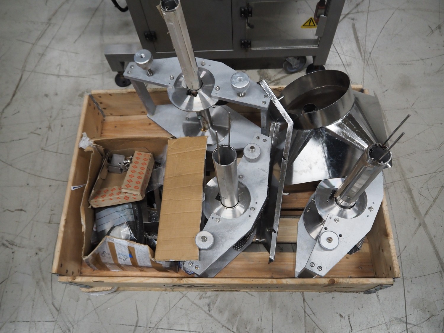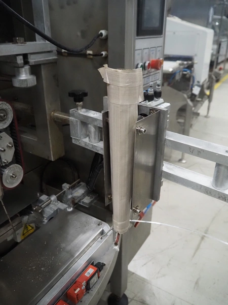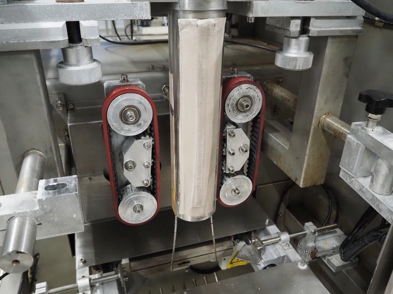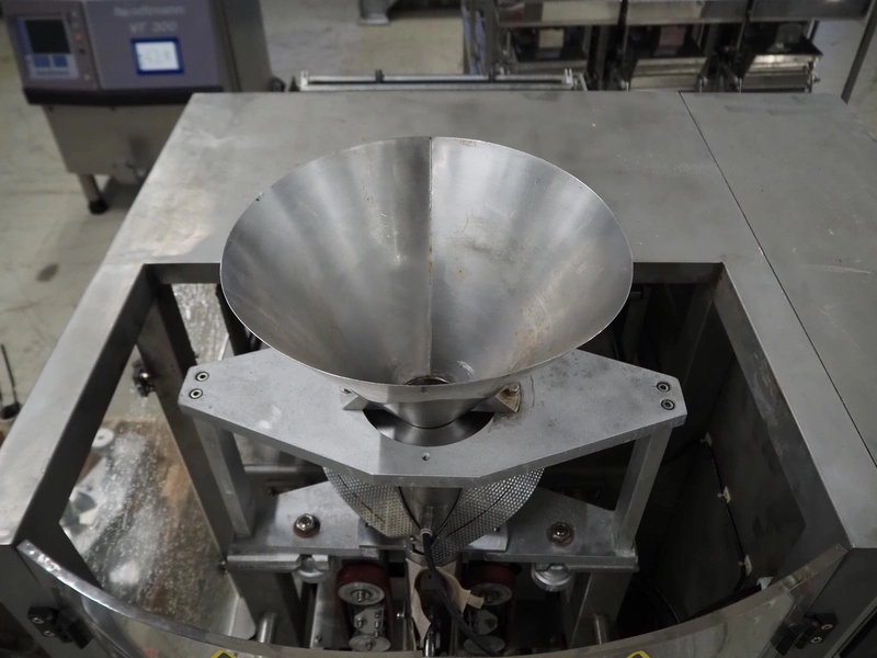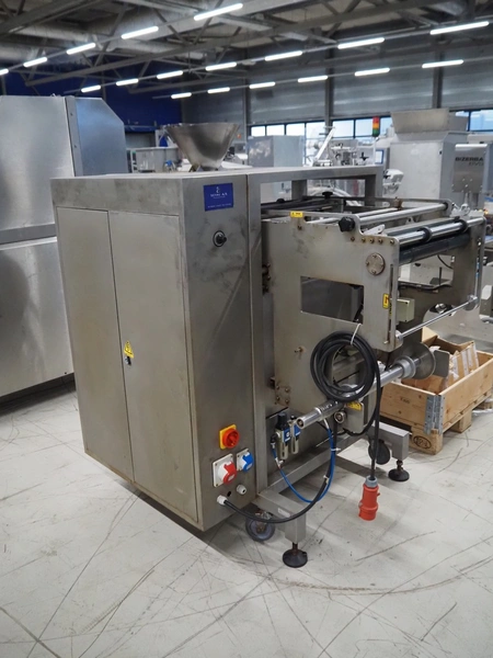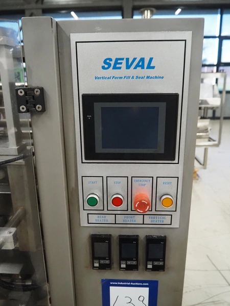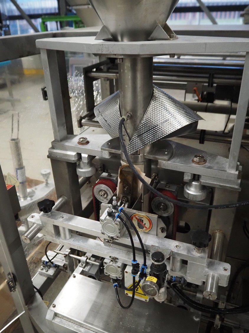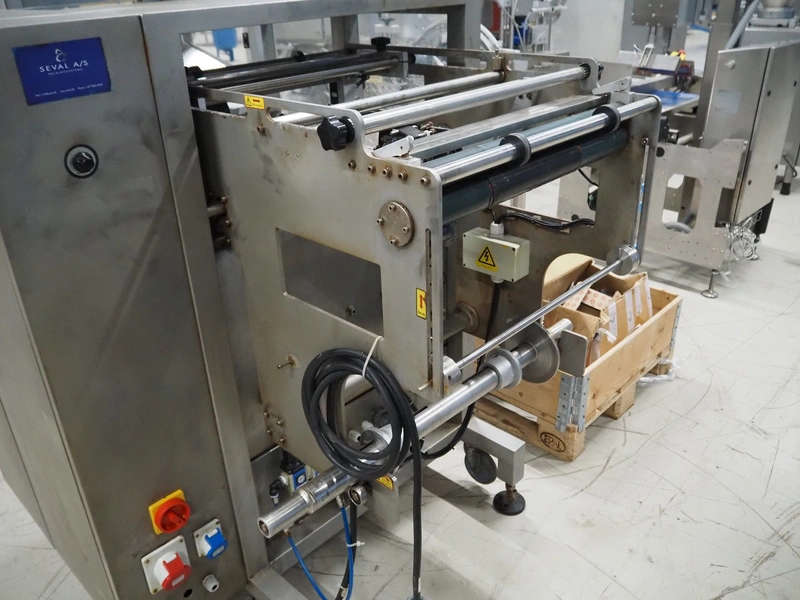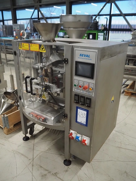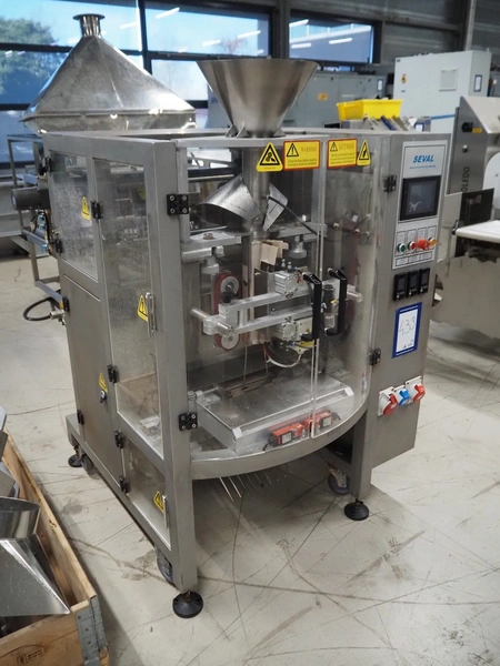 Seval vertical bag form-, fill- and seal machine, diameter filling pipe: 75 mm, vertical seal length: 320 mm, horizontal seal length: 250 mm, total dimensions: 1600 mm x 1150 mm x 1670 mm. Including extra filling pipes, diameter filling pipes: (1x) 55 mm, (1x) 70 mm.