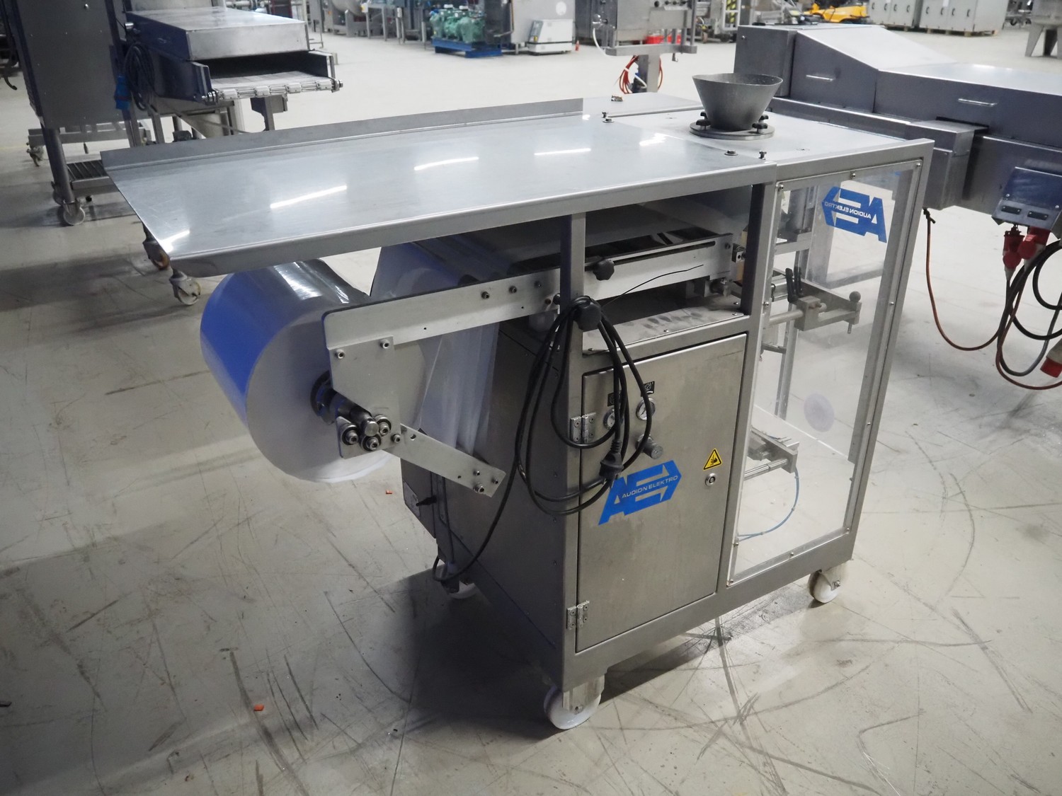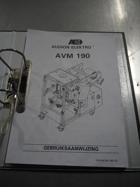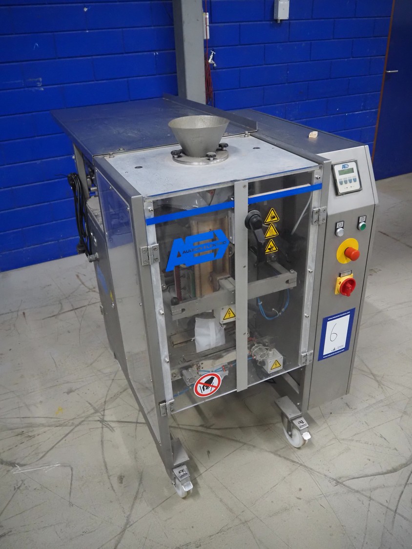 Audion Elektro vertical bag form, fill and sealing machine, type: AVMS 190-2, serial number: 179/002-02, year of construction: 2004, 230 V, 1 Ph, 50/60 Hz, 2300 W, 6 bar, film width: 310 mm, vertical seal length: 315 mm, horizontal seal length: 260 mm, total dimensions: 1450 mm x 850 mm x 1300 mm.