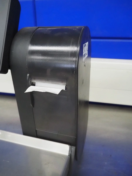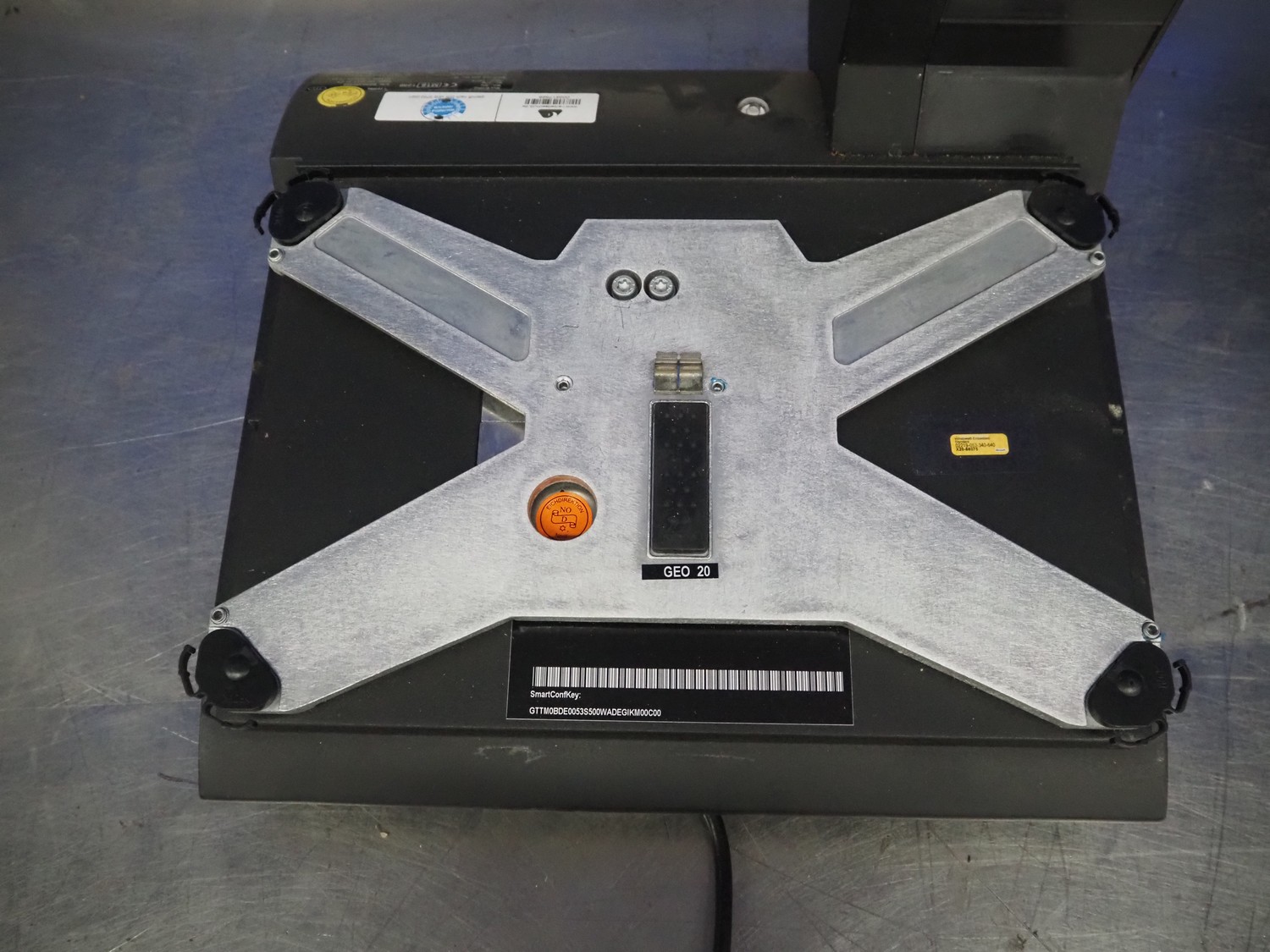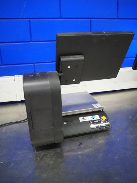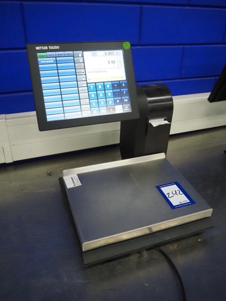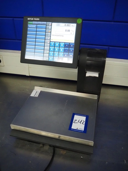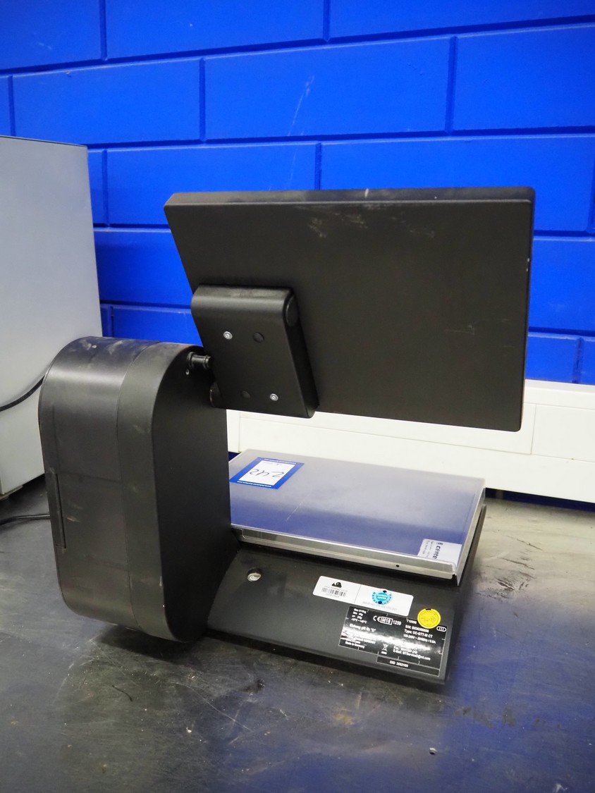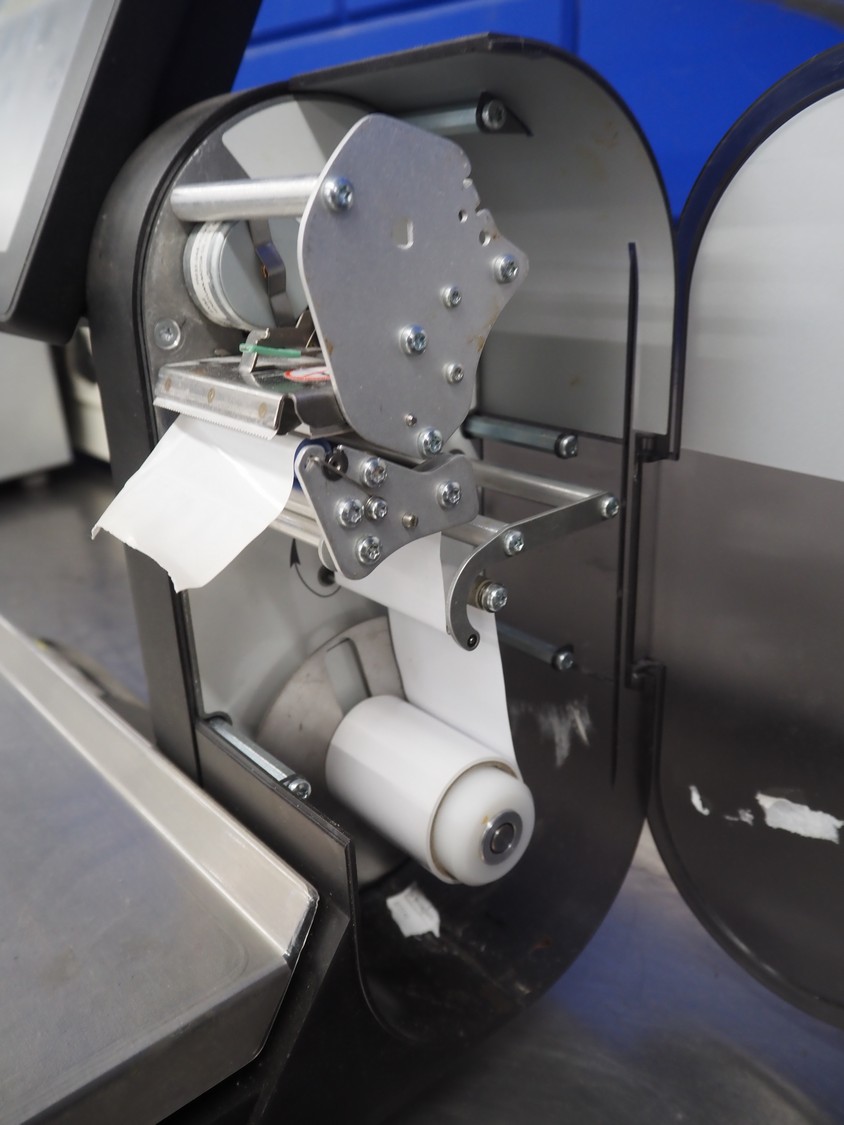 Mettler Toledo weighing scale with label printer, type: UC-GTT-M CT, serial number: B836386886, maximum: 6/15 kg, minimum: 40 gram, e= 2/5 gram, dimensions scale: 360 mm x 270 mm, total dimensions: 430 mm x 400 mm x 470 mm.