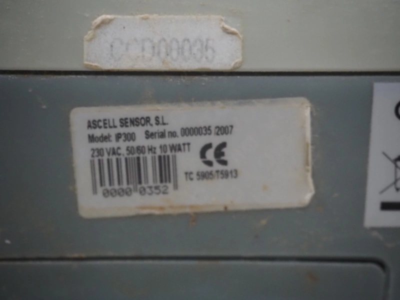 Ascell Sensor S.L. weighing scale, model: IP300, serial number: 0000035, year of construction: 2007, 230 V, 50/60 Hz, 10 W, maximum weight: 30 kg, minimum weight: 200 gram, e= 10 gram, dimensions scale: 400 mm x 300 mm, total dimensions: 510 mm x 300 mm x 550 mm.