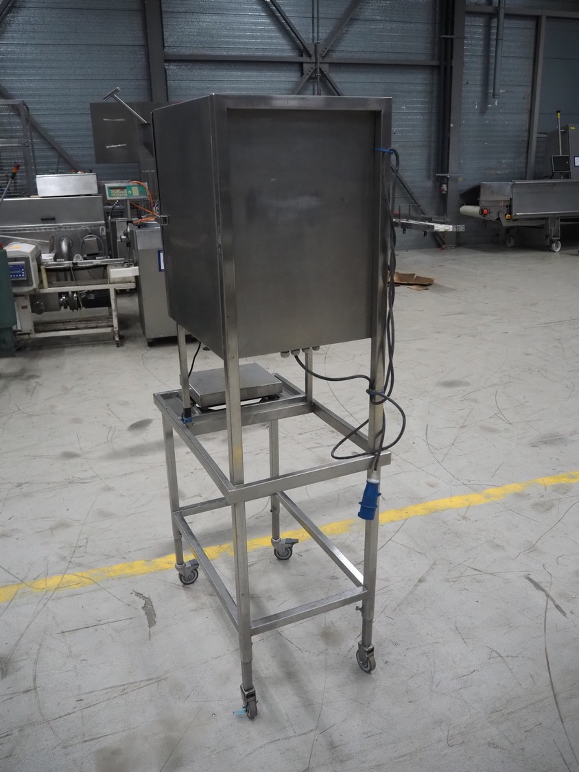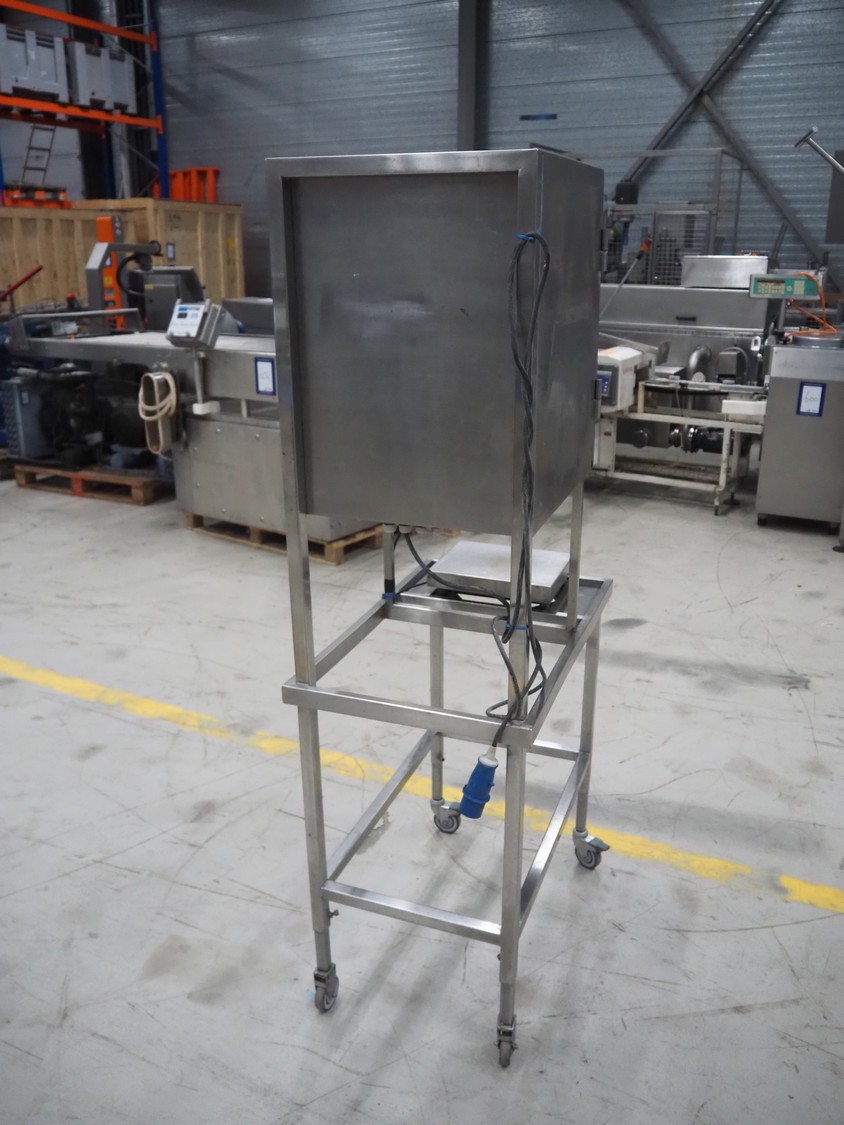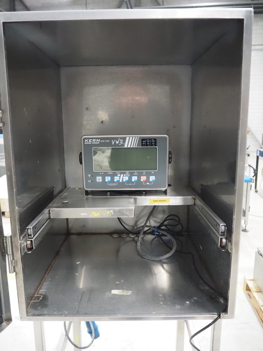 Kern weighing scale on s/s frame, type: SXS 6K-3M, serial number: WX18060105, 220/240 V, 1 Ph, 50 Hz, maximum capacity: 3/6 kg, minimum capacity: 0.02/0.04 kg, e= 0.001/0.002 kg, dimensions scale: 240 mm x 300 mm, total dimensions: 800 mm x 500 mm x 1750 mm.