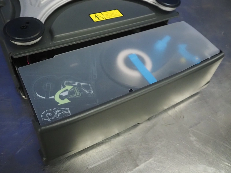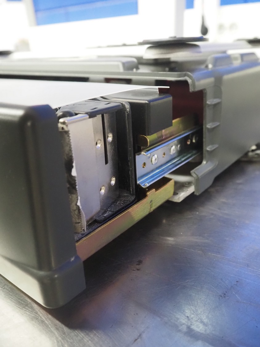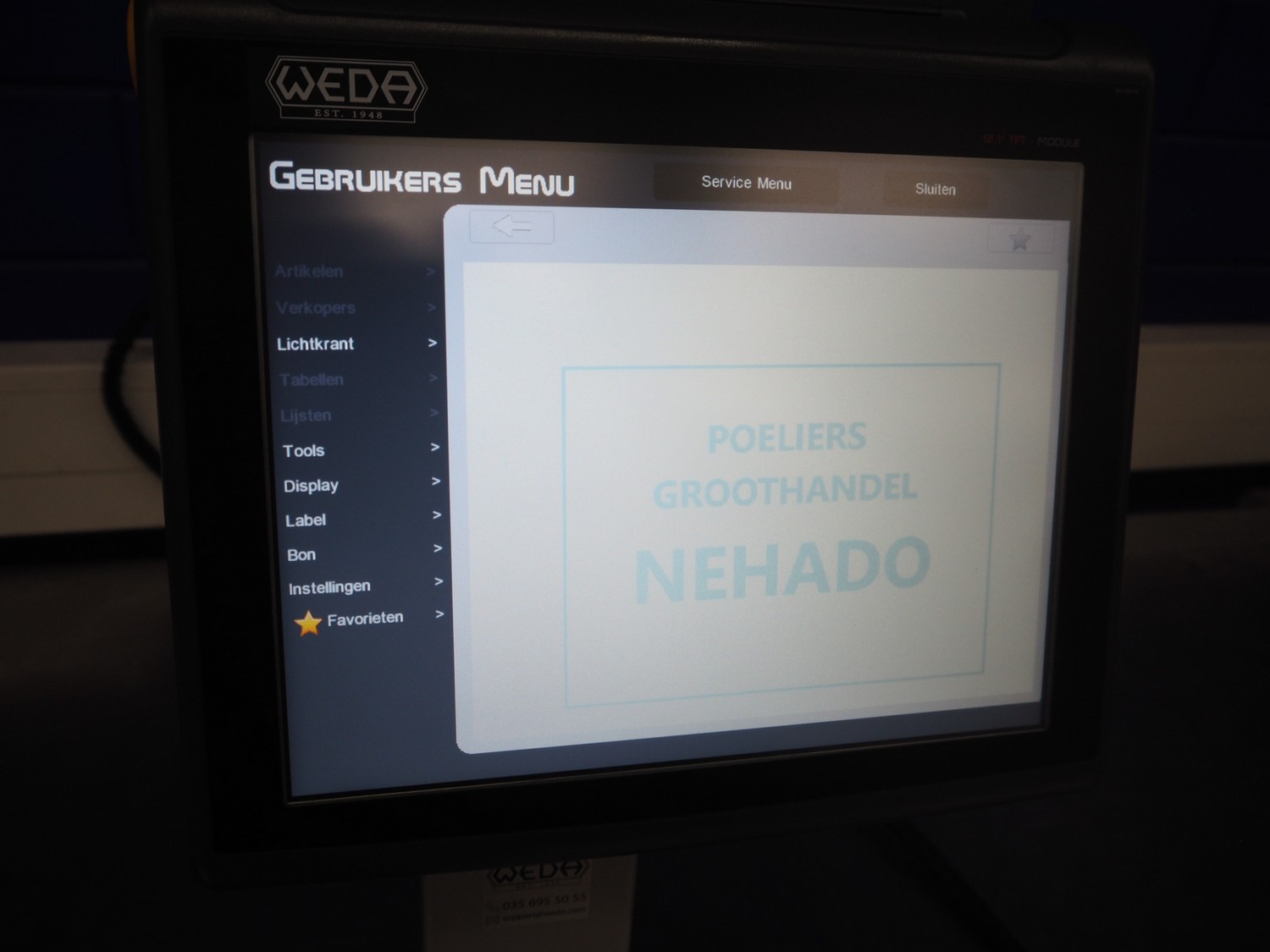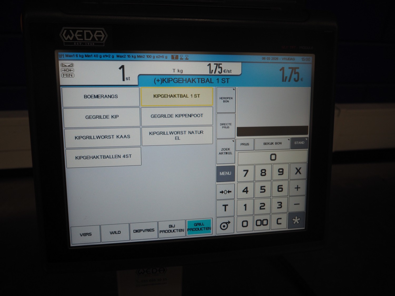 Dibal S.A. weighing scale with label printer and scanner, model: D-900 series, serial number: 31948519, 110-230 V, 50/60 Hz, 1.2 A, maximum weight: 15 kg, minimum weight: 100 gram, e= 5 gram, T= -14.995 kg, dimensions scale: 360 mm x 280 mm, total dimensions: 380 mm x 460 mm x 620 mm.