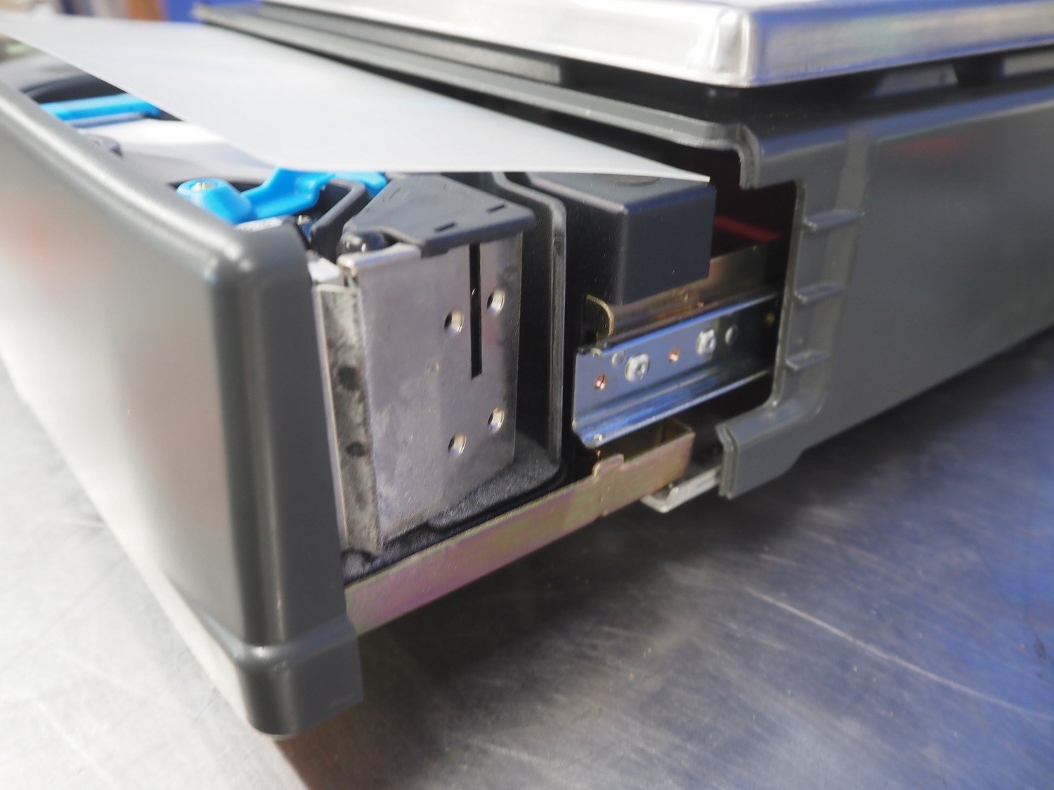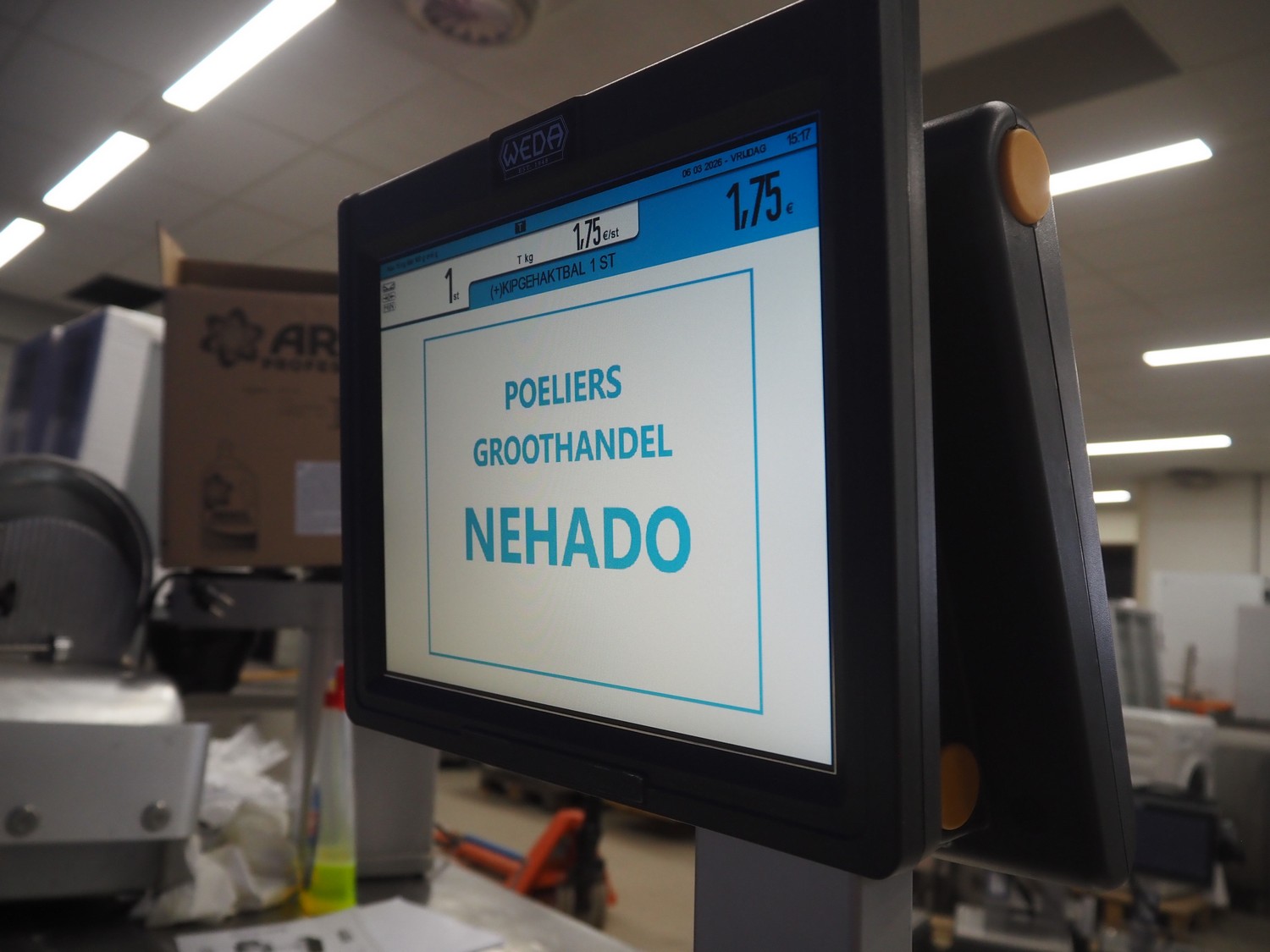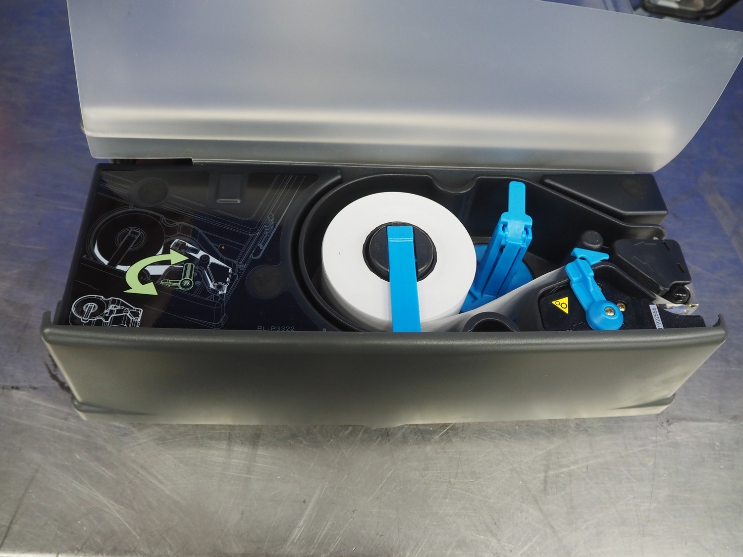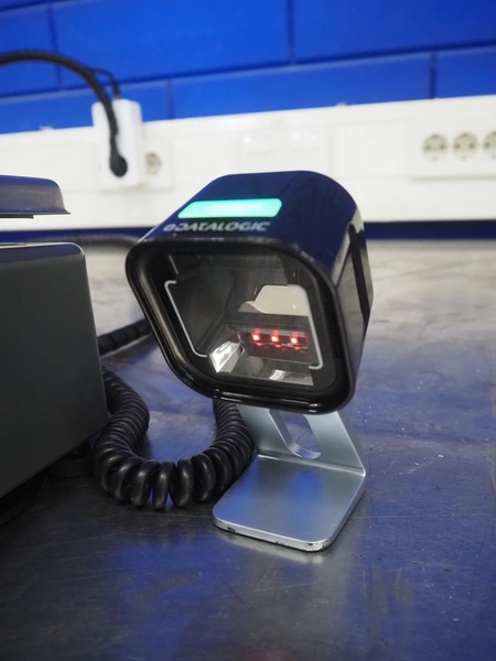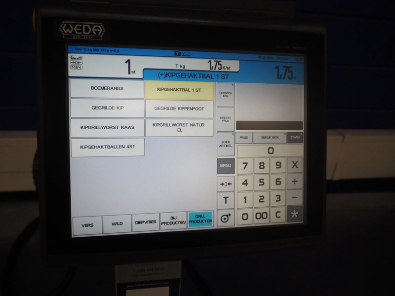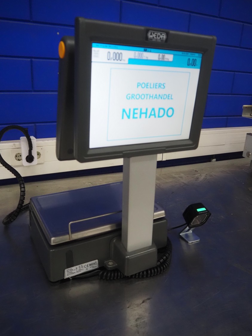 Dibal S.A. weighing scale with label printer and scanner, model: D-900 series, serial number: 31922556, 110-230 V, 50/60 Hz, 1.2 A, maximum weight: 15 kg, minimum weight: 100 gram, e= 5 gram, T= -14.995 kg, dimensions scale: 360 mm x 280 mm, total dimensions: 380 mm x 460 mm x 620 mm.