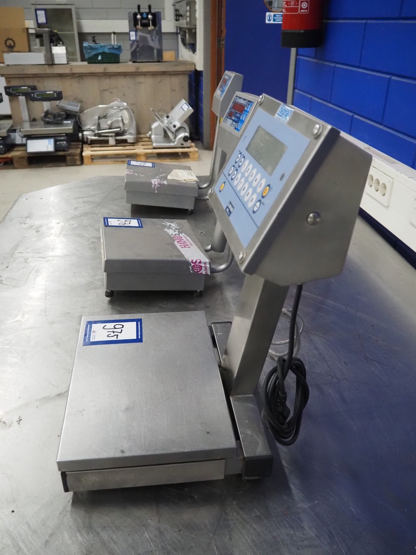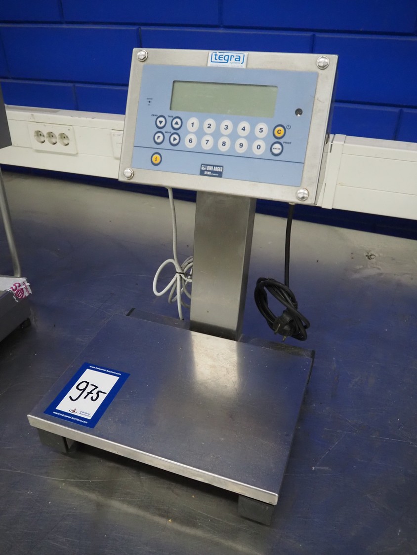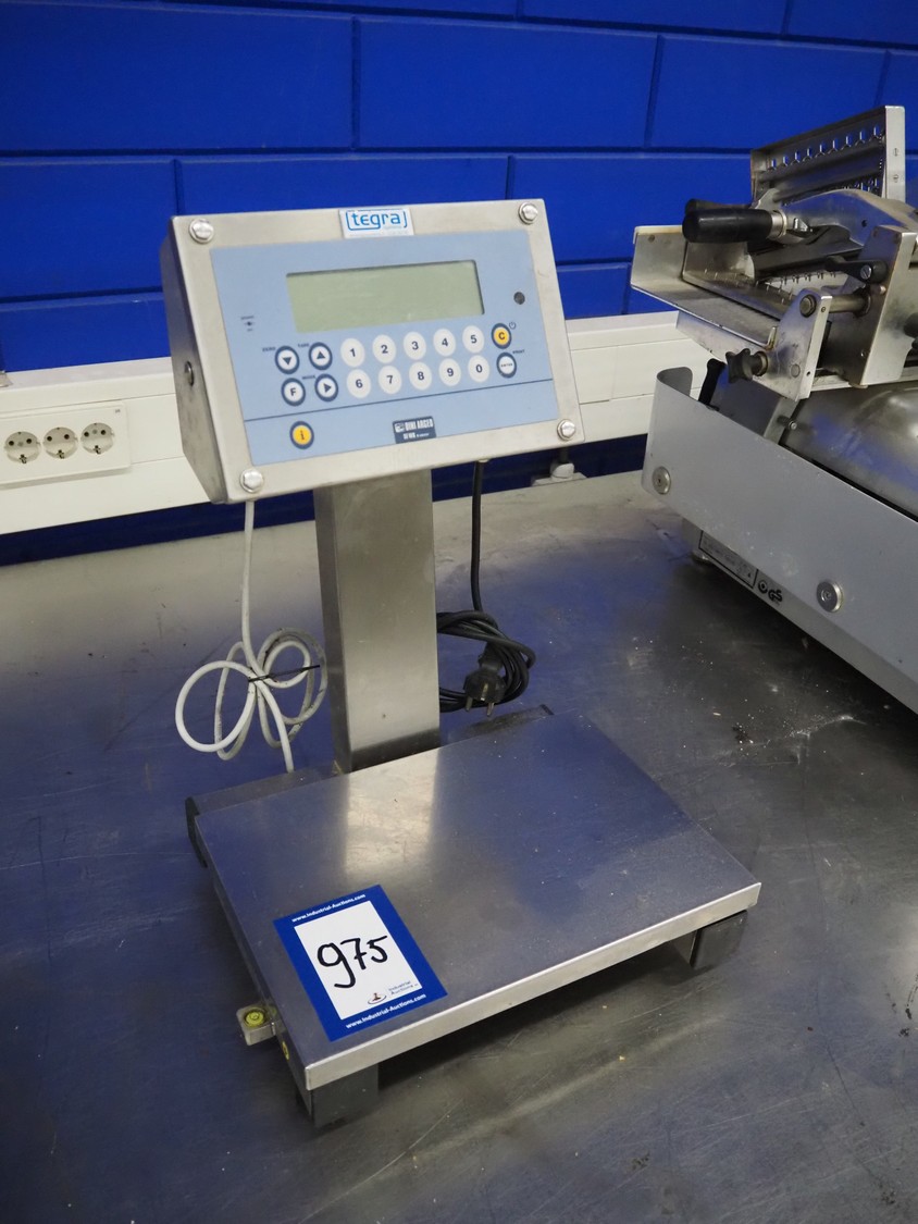 Dini Argeo srl weighing scale, model: DFWKXT, serial number: 147036, 110/220 V, 1 Ph, 50/60 Hz, 15 W, maximum capacity: 15 kg, minimum capacity: 0.1, e= 5 g, dimensions: 350 mm x 300 mm x 500 mm.