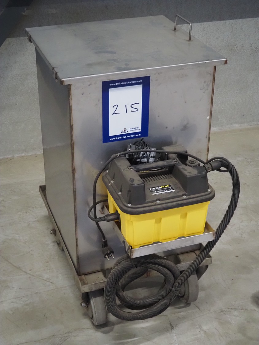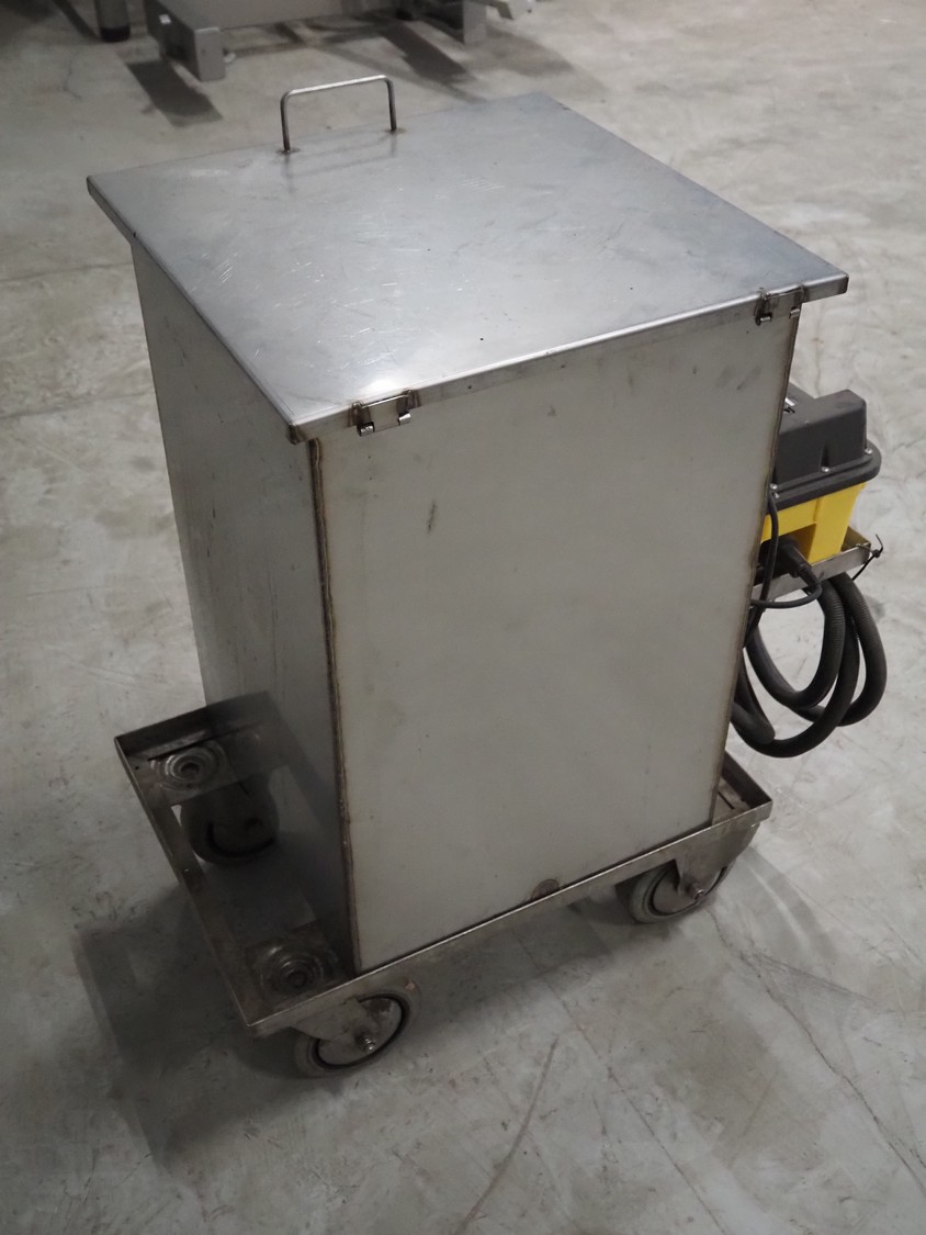 Mobile s/s tub with power plus steam generator, type: POWX340, serial number: 10-01-2020/191076/0057, 220/240 V, 50 Hz, 1850/2200 W, total dimensions: 720 mm x 500 mm x 960 mm.