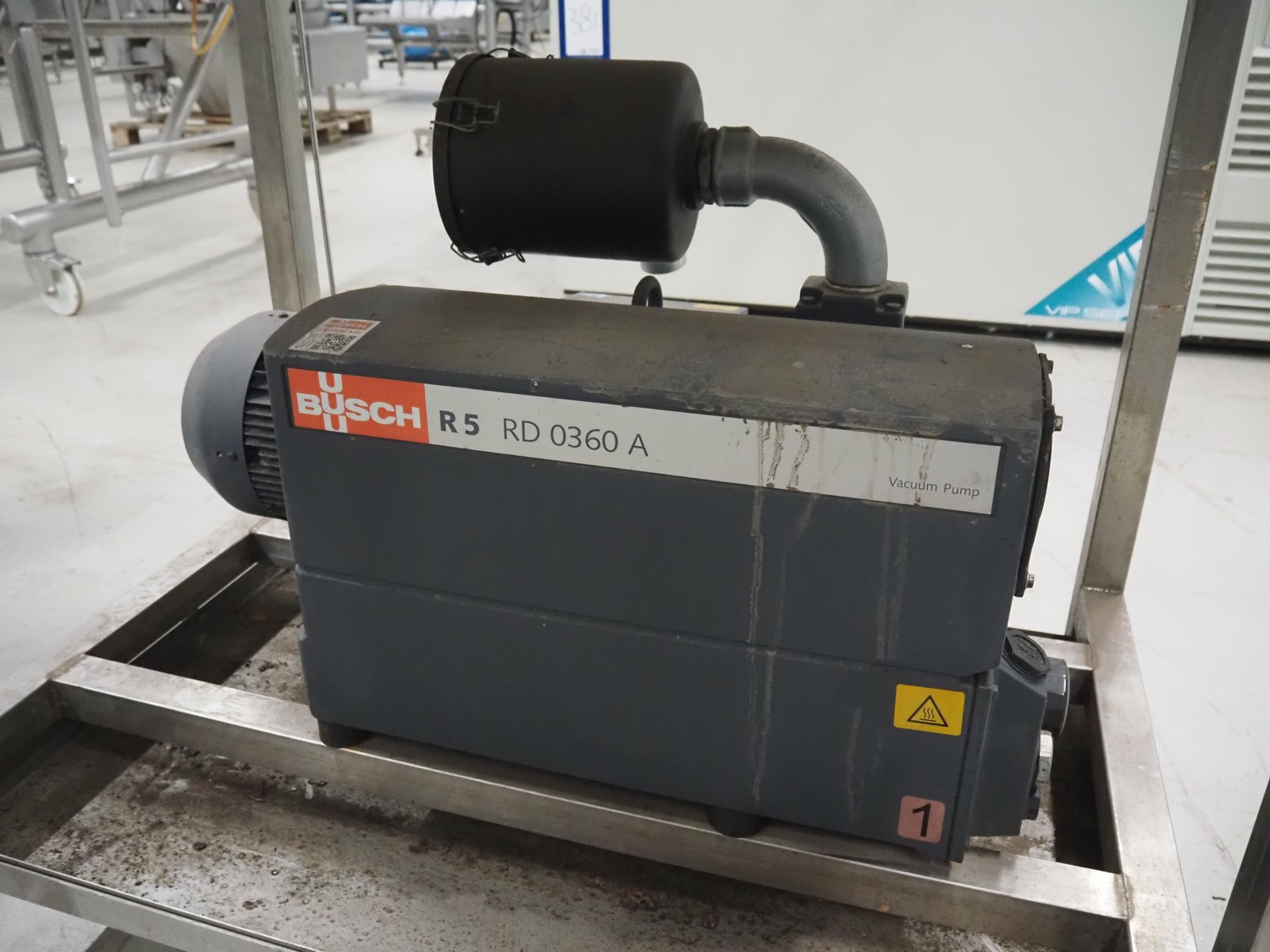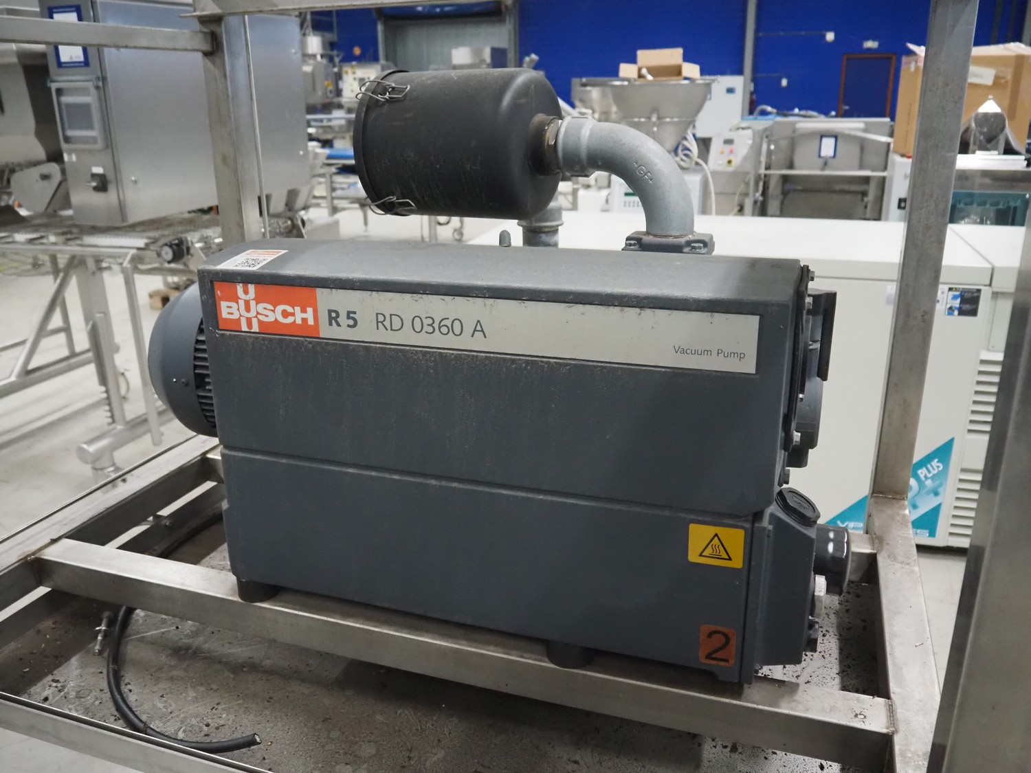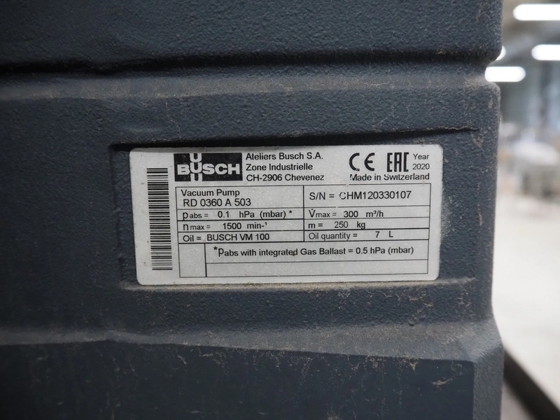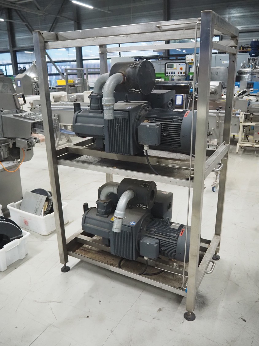 S/s rack with 2 Busch vacuum pumps, type: (2x) RD 0360 A 503, serial number: CHM120330107 / CHM120330110, year of construction: 2020, capacity: (2x) 300 m³ per hour, total dimensions: 1150 mm x 800 mm x 1850 mm.