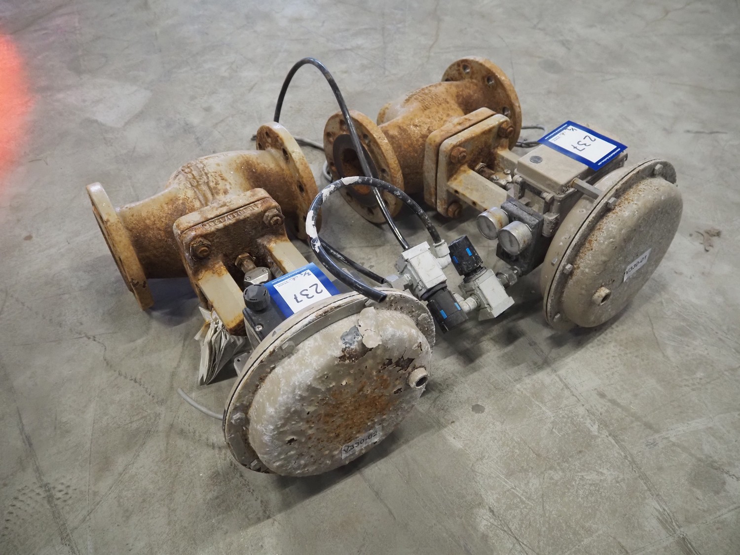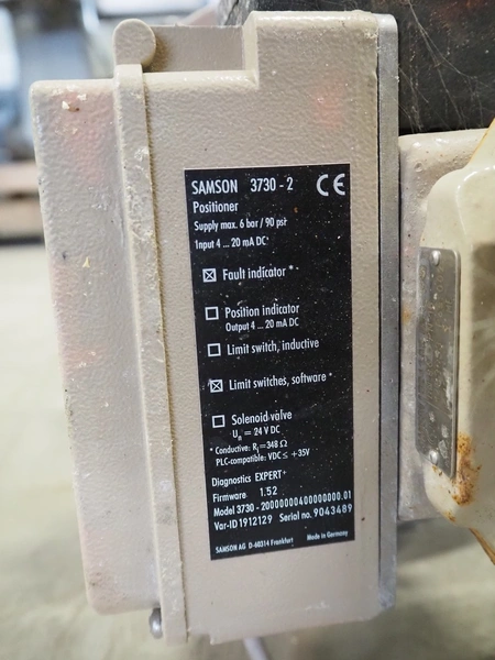 2 Samson pneumatic actuators, type: 3277, dimensions: (2x) 300 mm x 200 mm x 600 mm.
