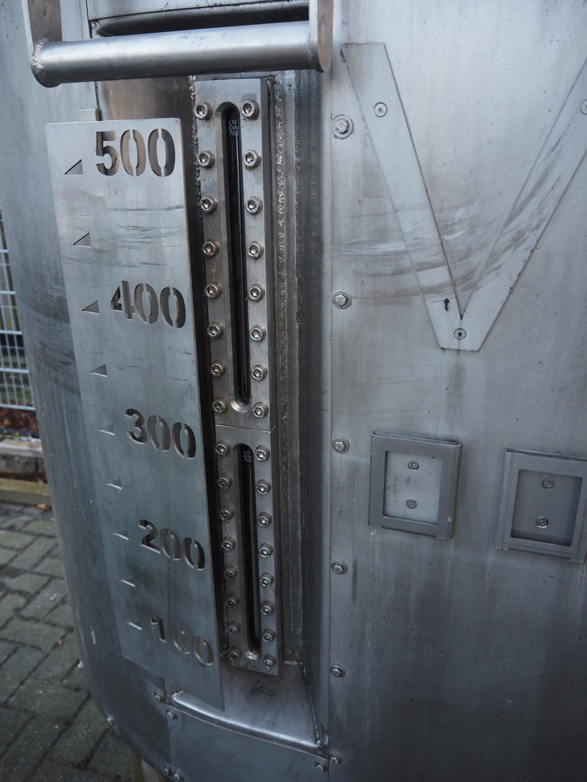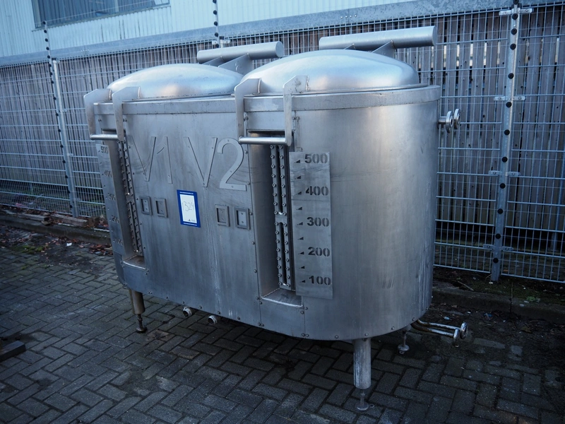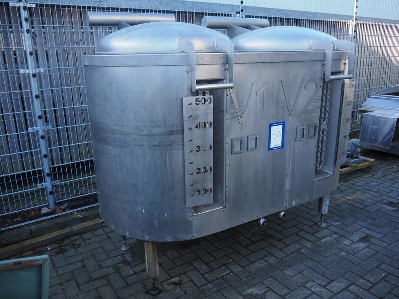 Double s/s tank, volume: (2x) 500 litres, dimensions: 2100 mm x 1200 mm x 2000 mm.