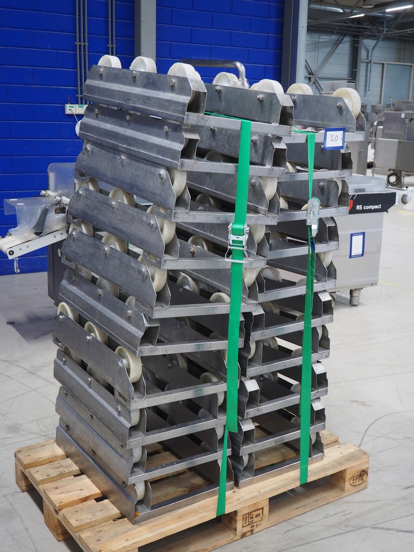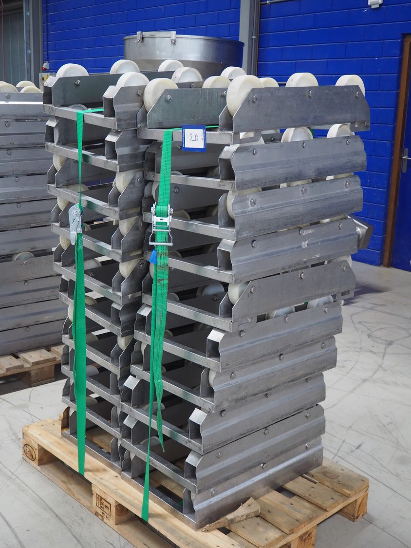 Pallet with 20 s/s rollies, dimensions: (2x) 660 mm x 410 mm x 160 mm.