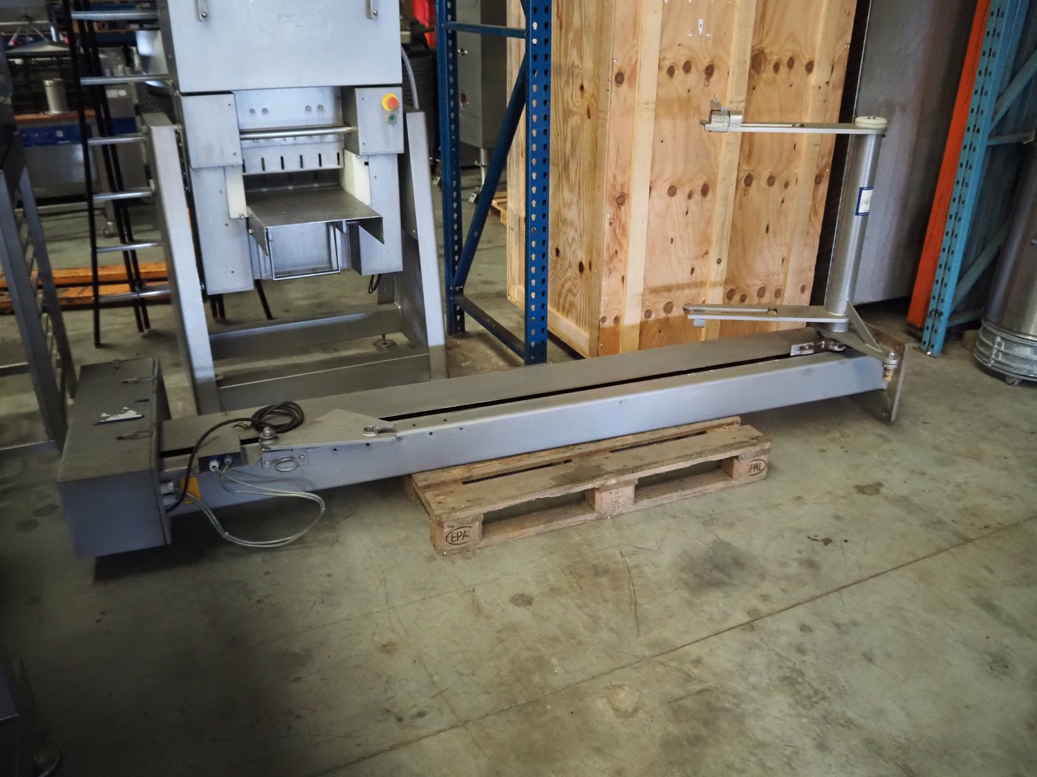S/s lifter for 200 liter meat bins, dimensions: 2880 mm x 820 mm x 1000 mm.