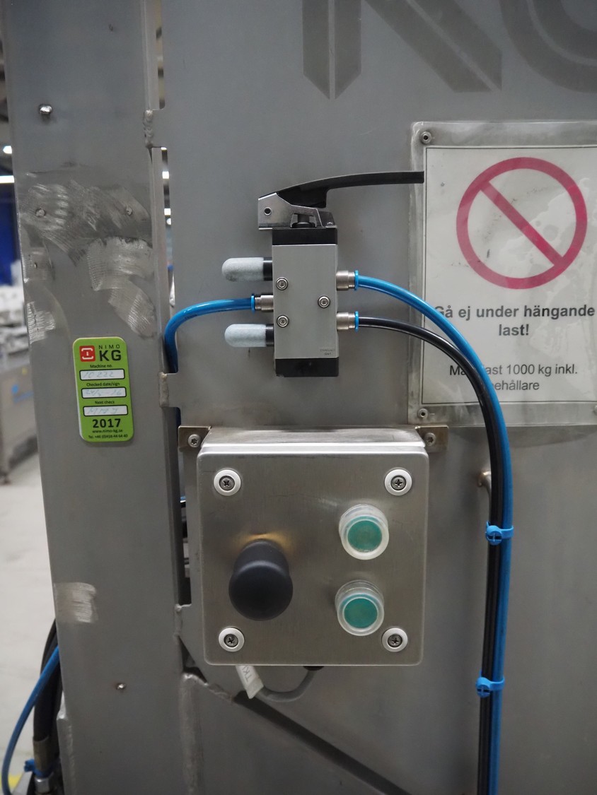Nimo KG tilting device, type: SK 800 HA, number: 10222, year of construction: 2005, capacity: 1000 kg, tilting height: 1200 mm, total dimensions: 1600 mm x 1600 mm x 1850 mm.
