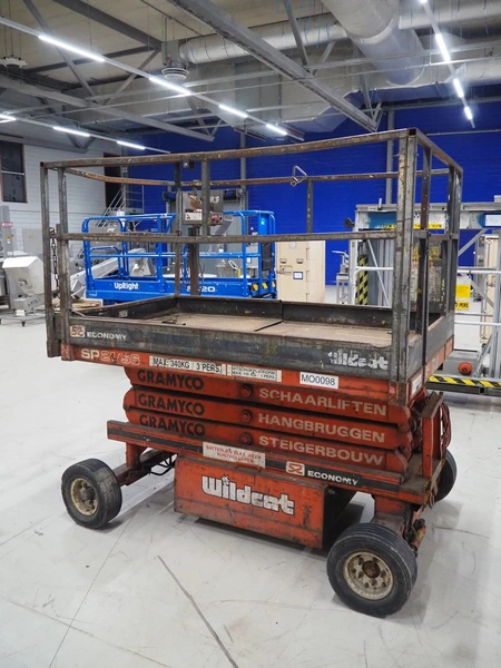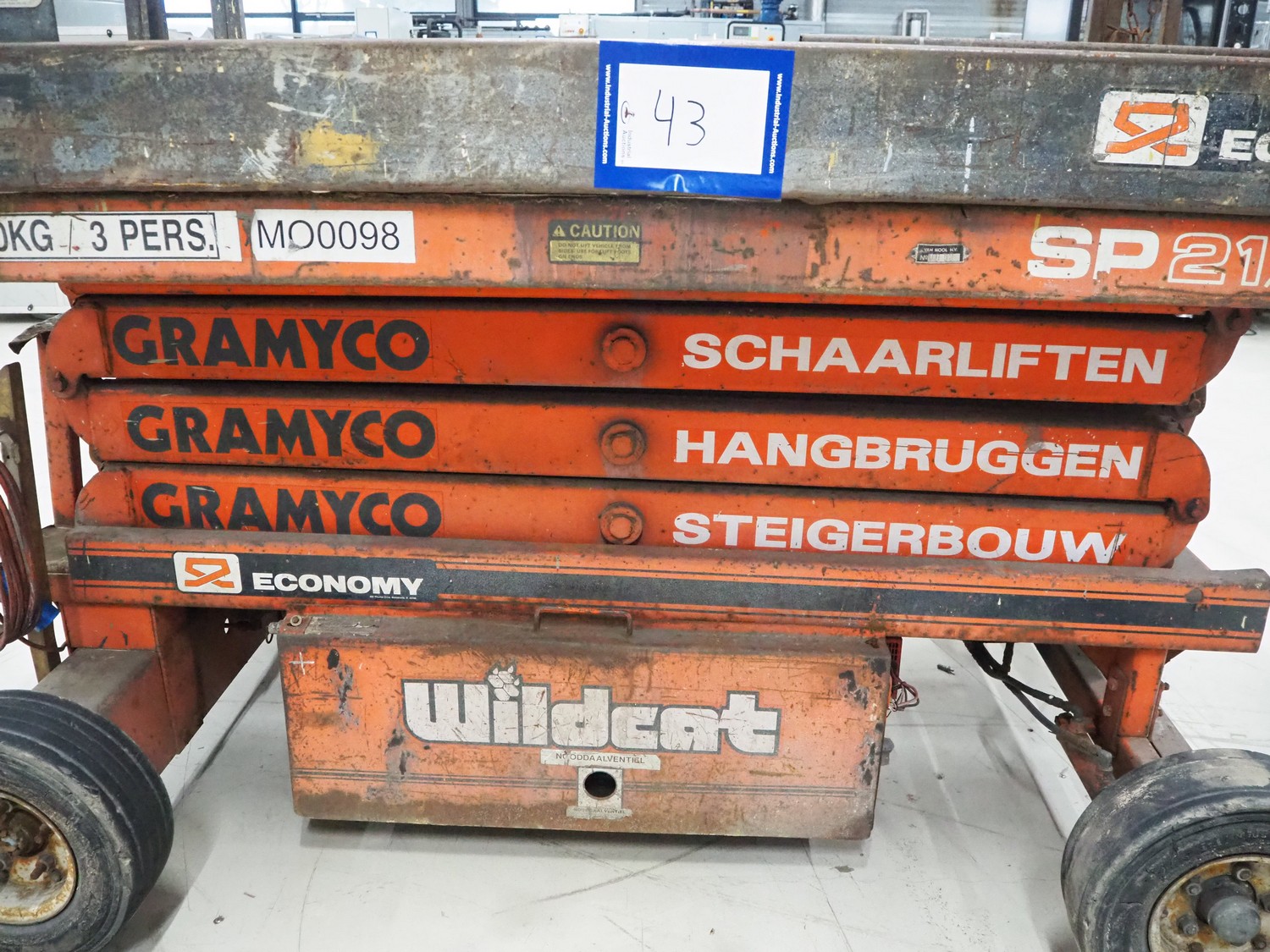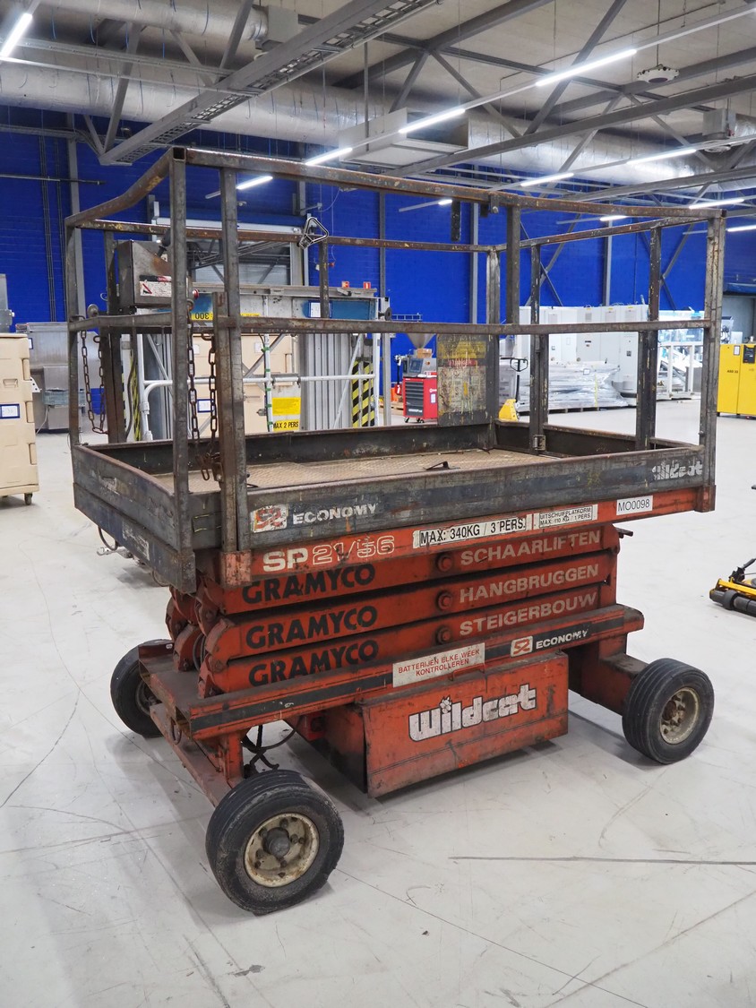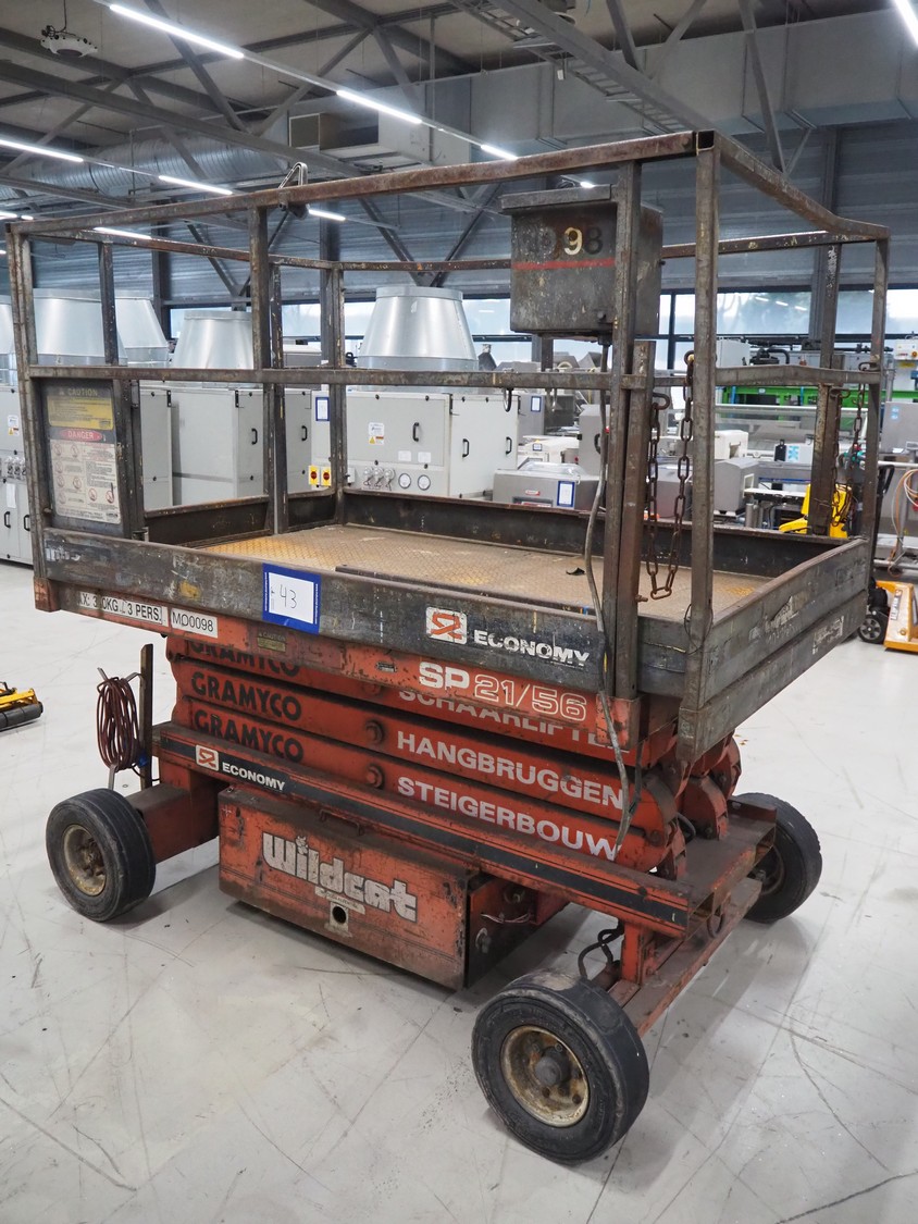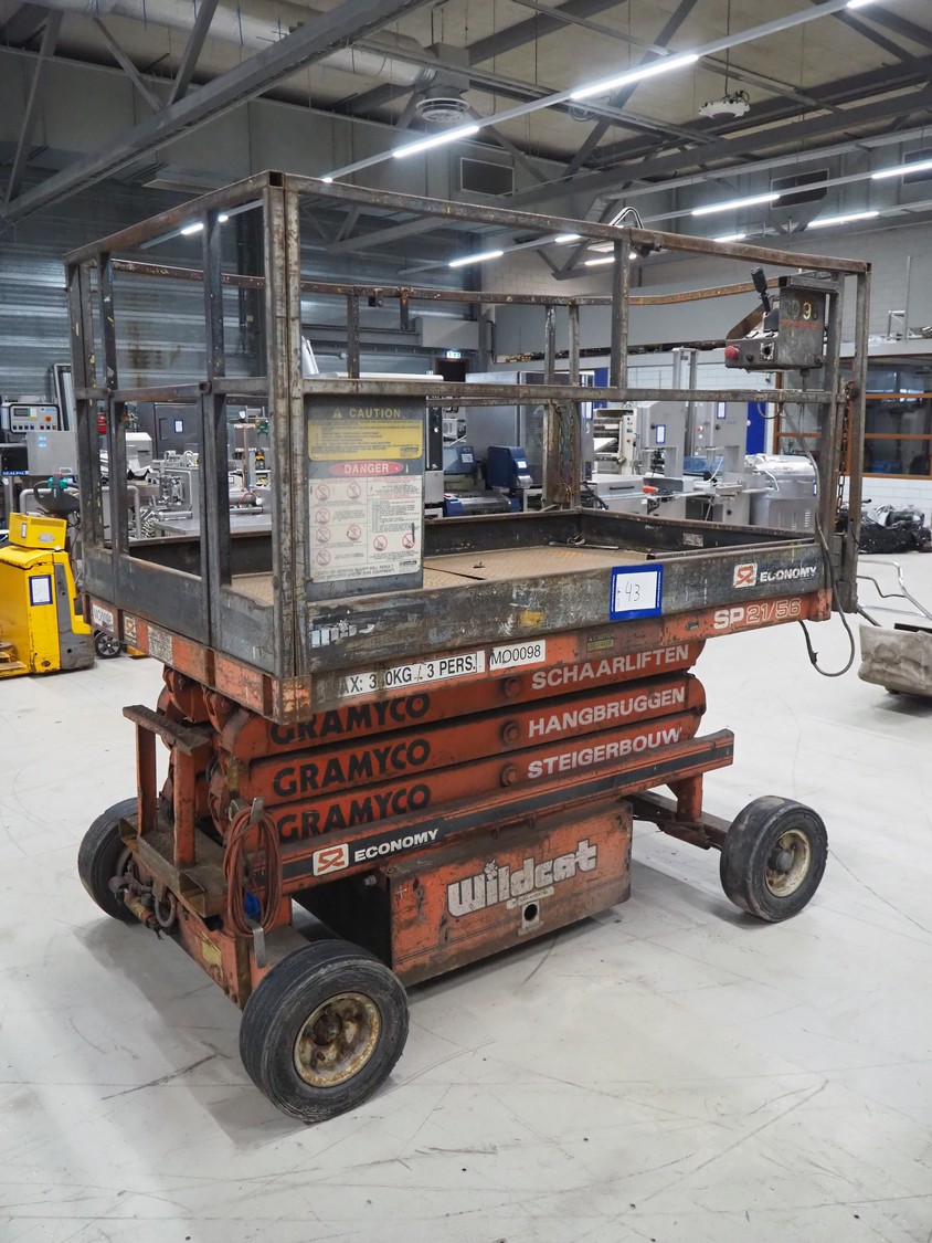 Economy Engineering Company mobile scissor lift, model: SP-2156, serial number: AL78708, year of construction: 1989, maximum capacity: 340 kg, dimensions: 2100 mm x 1400 mm x 2150 mm.