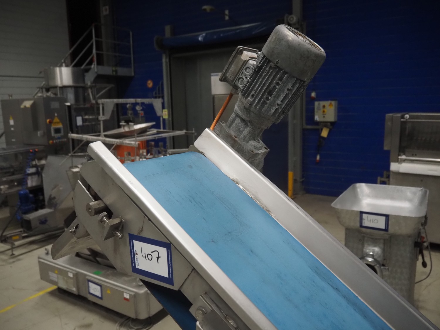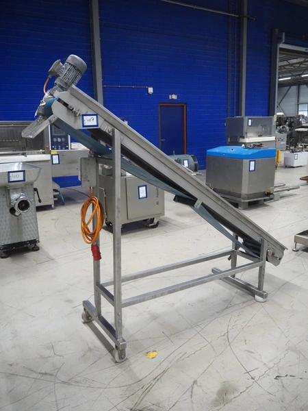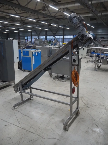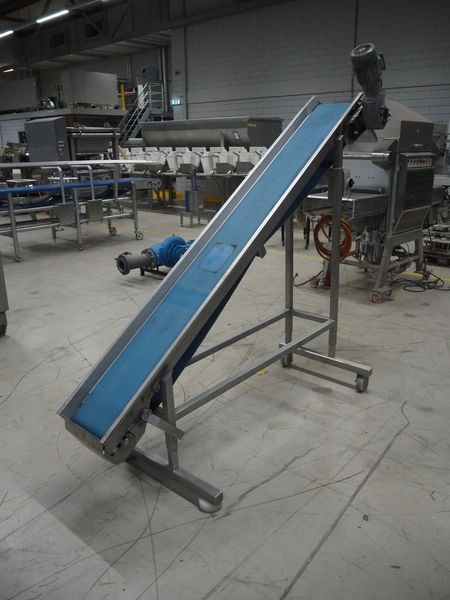Nieros mobile elevating belt, plastic belt, belt width: 255 mm, elevating height: 1780 mm, total dimensions: 2150 mm x 700 mm x 2050 mm.