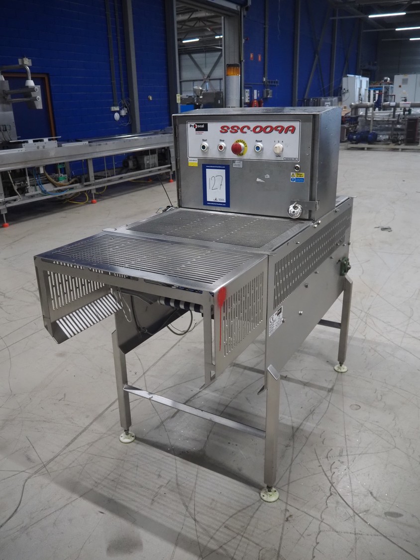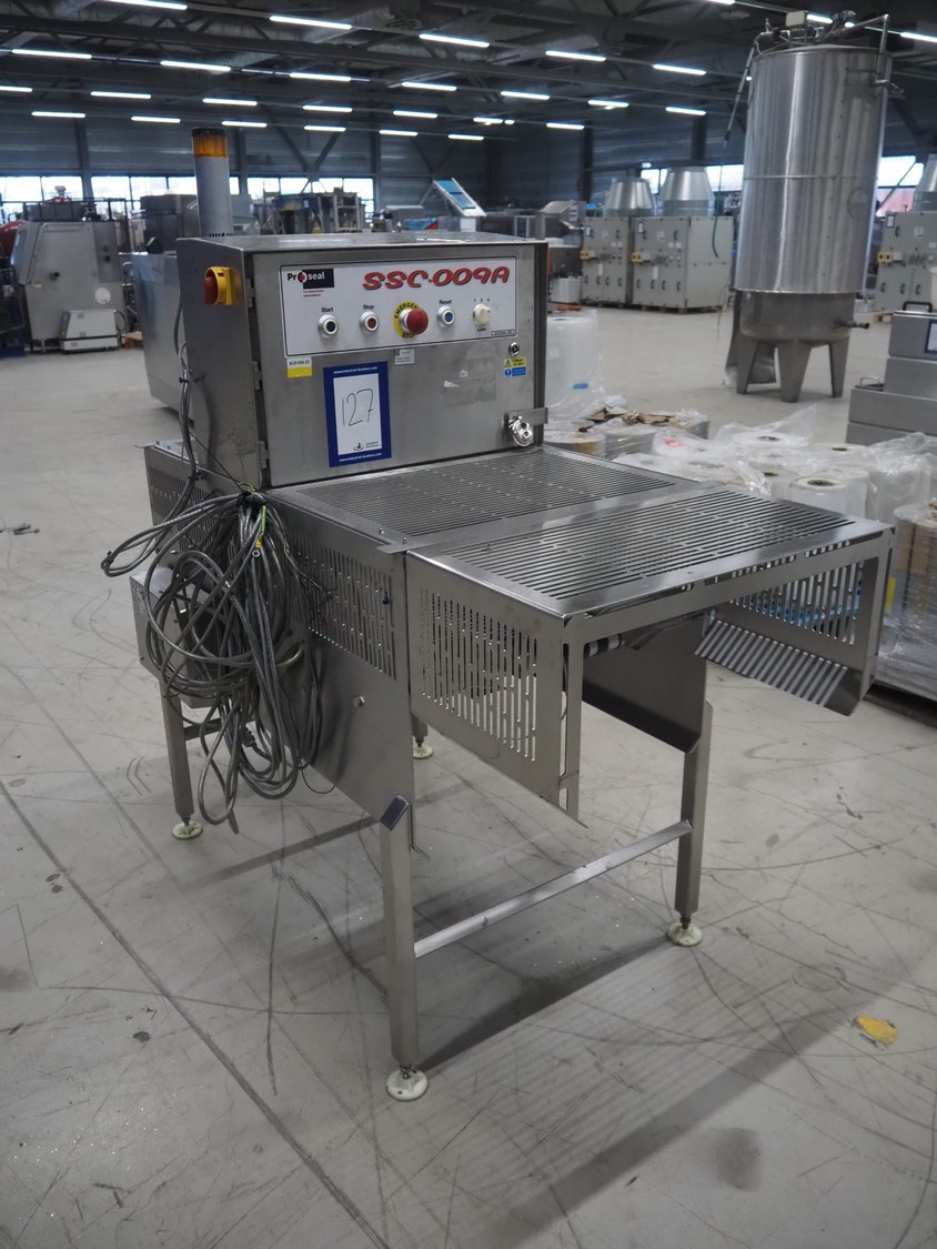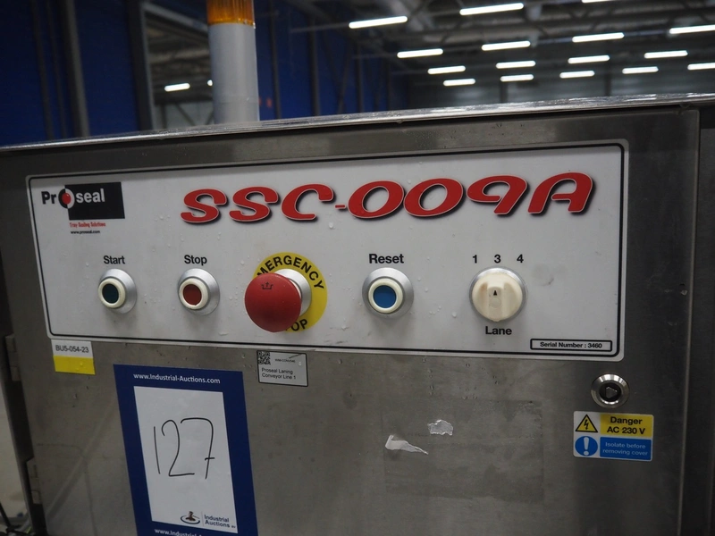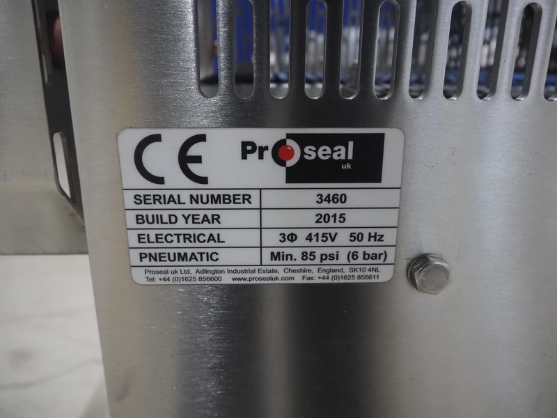 Proseal converger, type: SSC-009A, serial number: 3460, year of construction: 2015, 415 V, 3 Ph, 50 Hz, 6 bar, plastic belts, belt width: (4x) 25 mm, (1x) 685 mm, total dimensions: 1550 mm x 860 mm x 1740 mm.