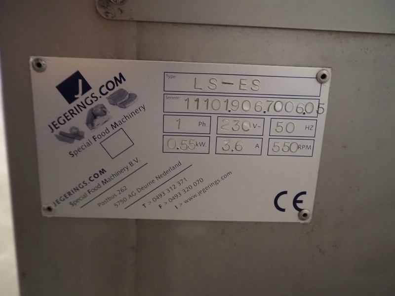Jegerings salad spinner, type: LS-ES, serial number: 11101.906.70060.05, 230 V, 1 Ph, 50 Hz, 3.6 A, 0.55 kW, 550 rpm, dimensions: 750 mm x 580 mm x 850 mm.