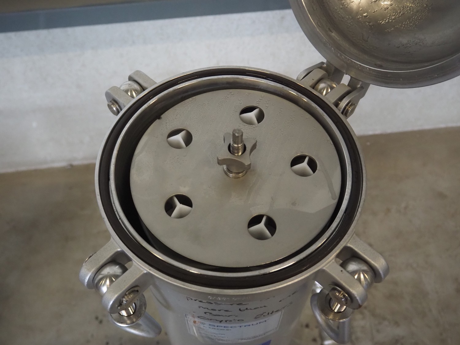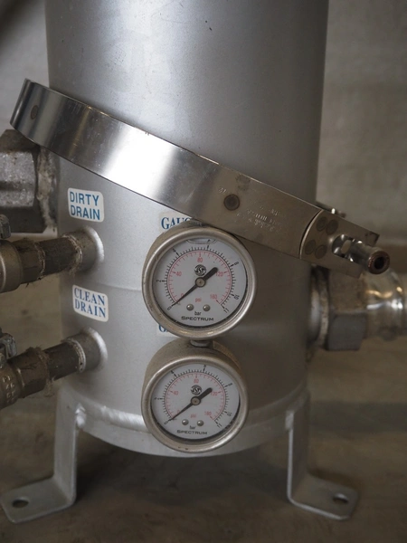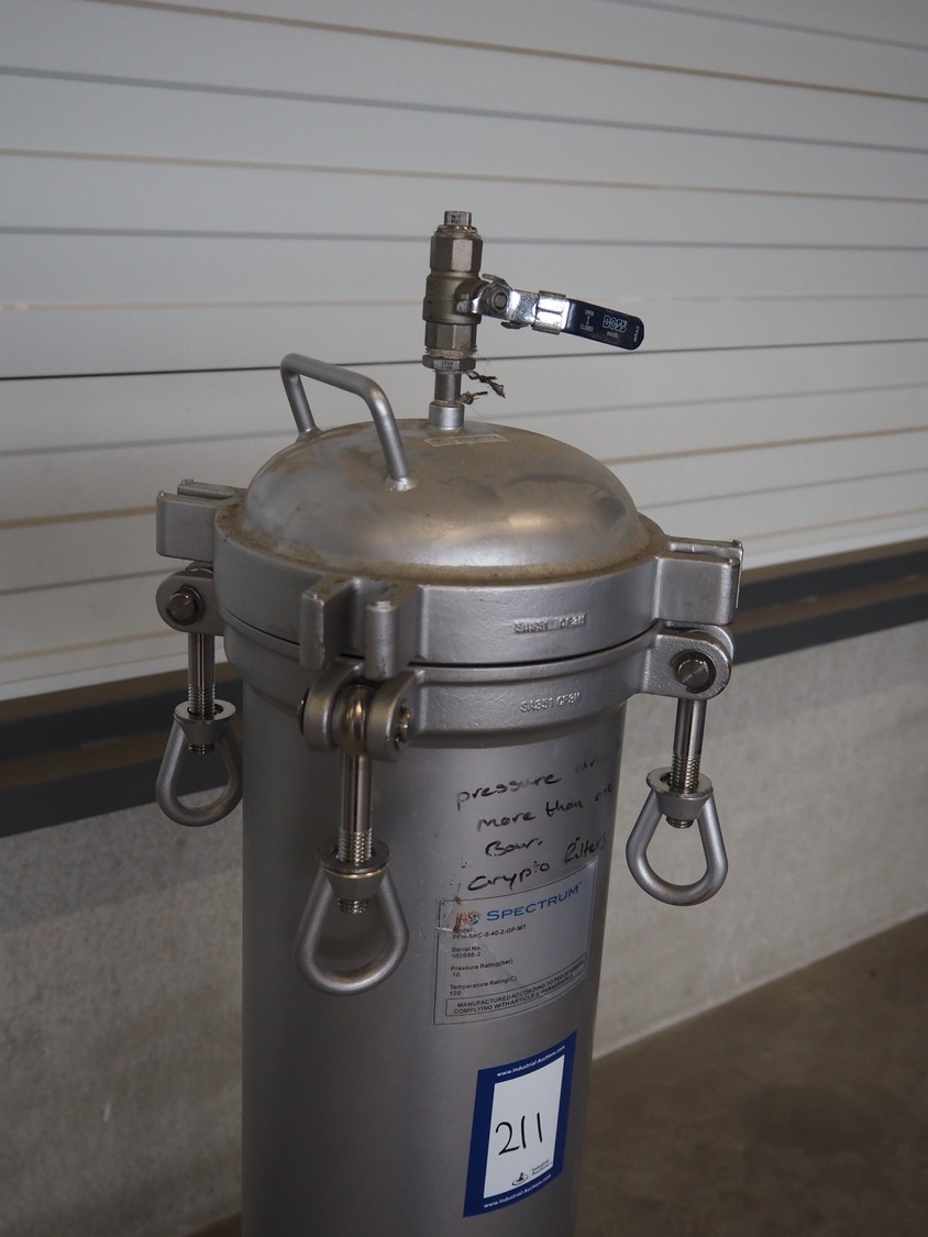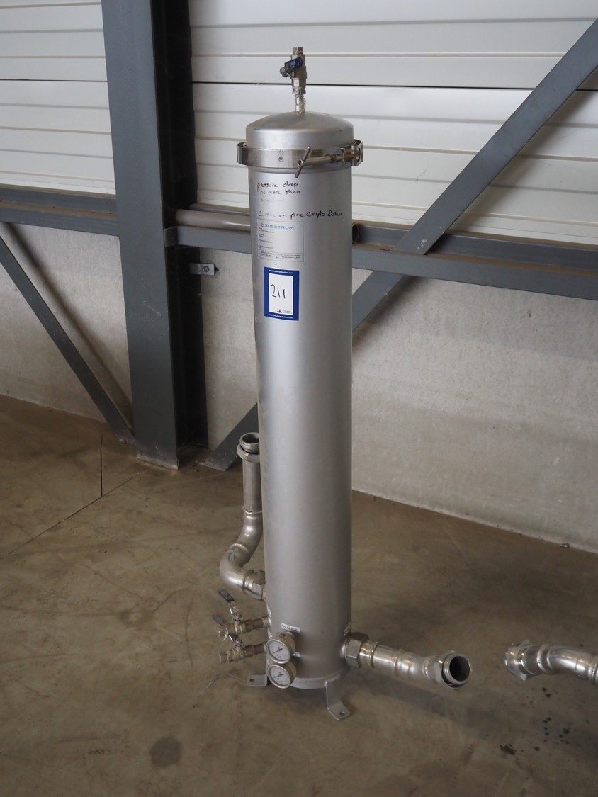 2 Spectrum water filters, model: SFH-SPC-5-40-2-GP-MT, serial number: 163528-5, pressure rating: 10 bar, temperature rating: 120° Celsius, dimensions: (2x) 1600 mm x 800 mm x 500 mm.