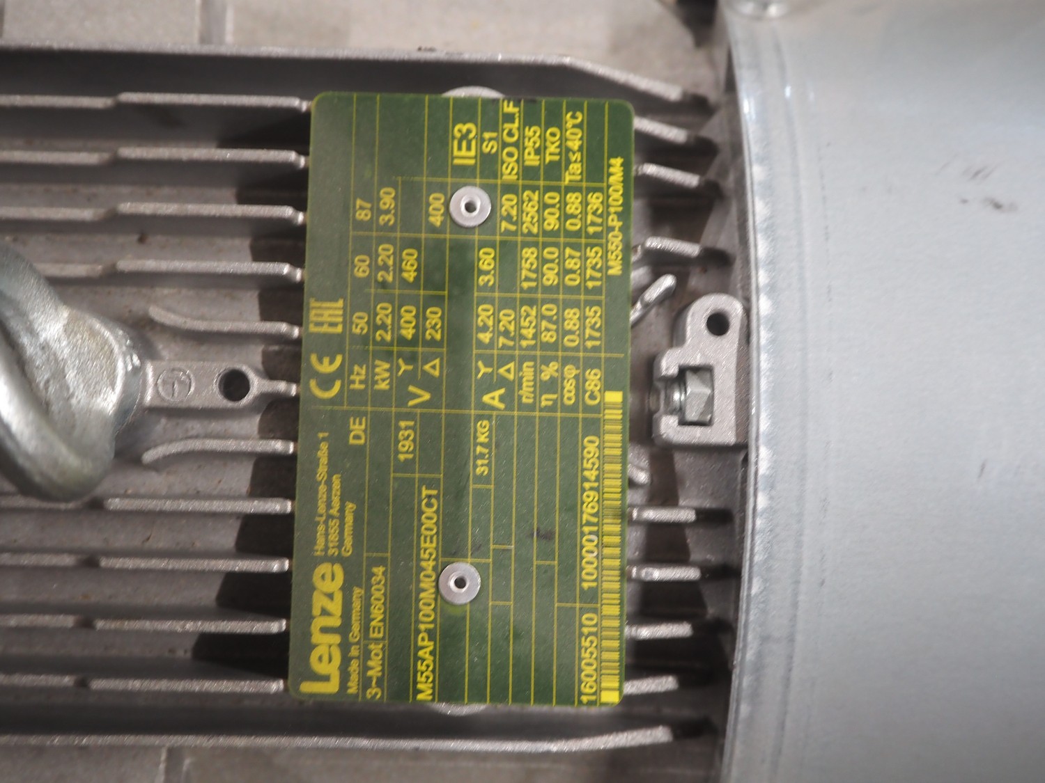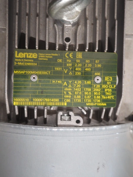 Lenze motor, dimensions: 420 mm x 200 mm x 260 mm.
