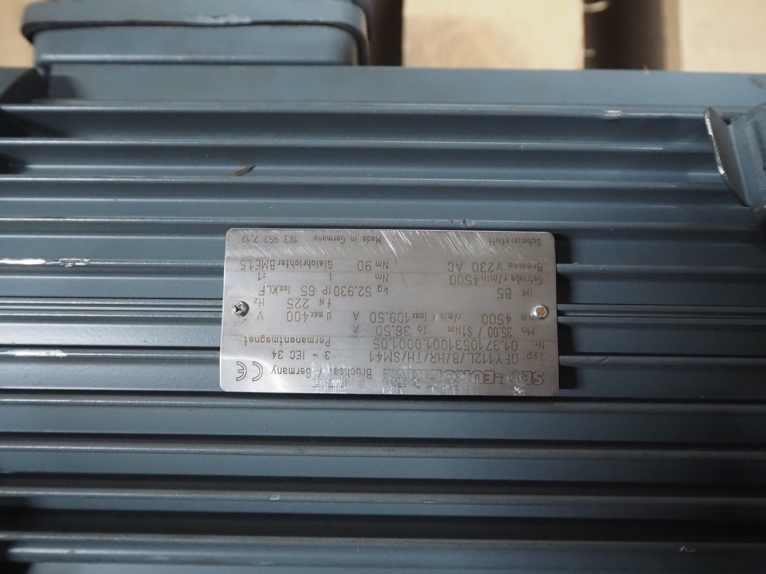 SEW-Eurodrive motor, type: KV77 DY112LB/HR/TH/SM41, dimensions: 470 mm x 190 mm x 290 mm and 290 mm x 200 mm x 340 mm.