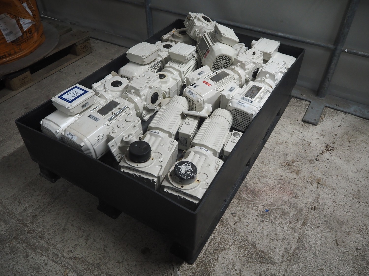 Pallet with large amount of SEW-Eurodrive electromotors.