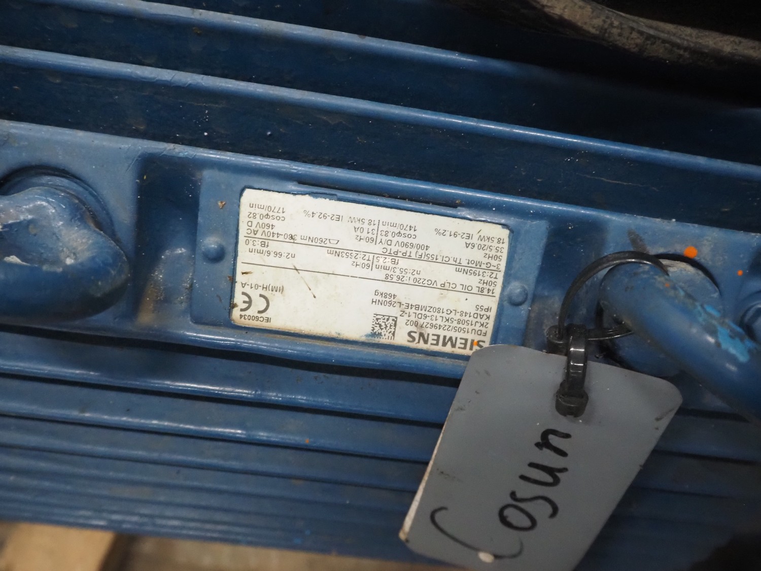 Siemens electro motor with gearbox, model: FDU1505/2249627 002, dimensions: 1450 mm x 350 mm x 550 mm.