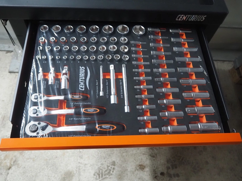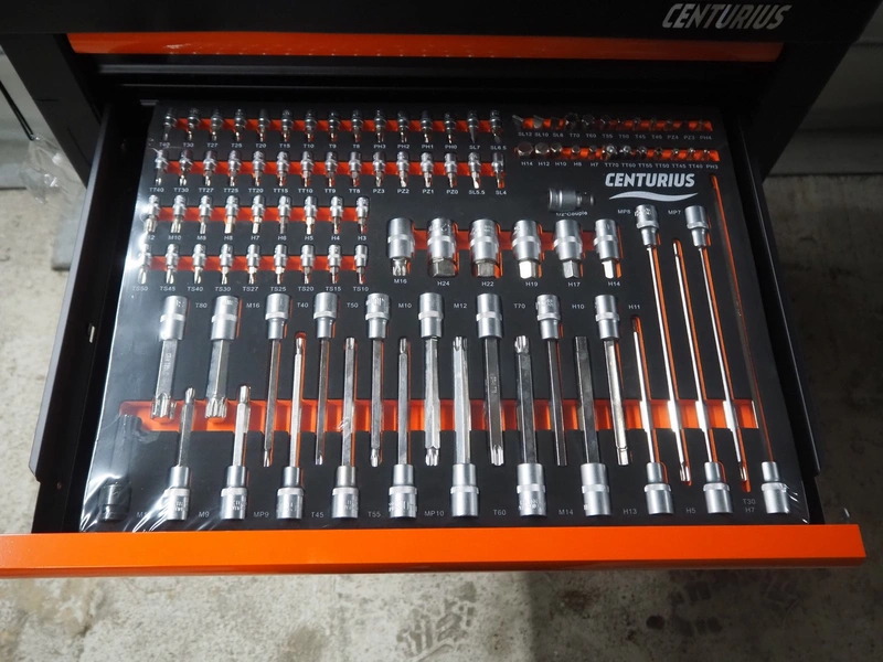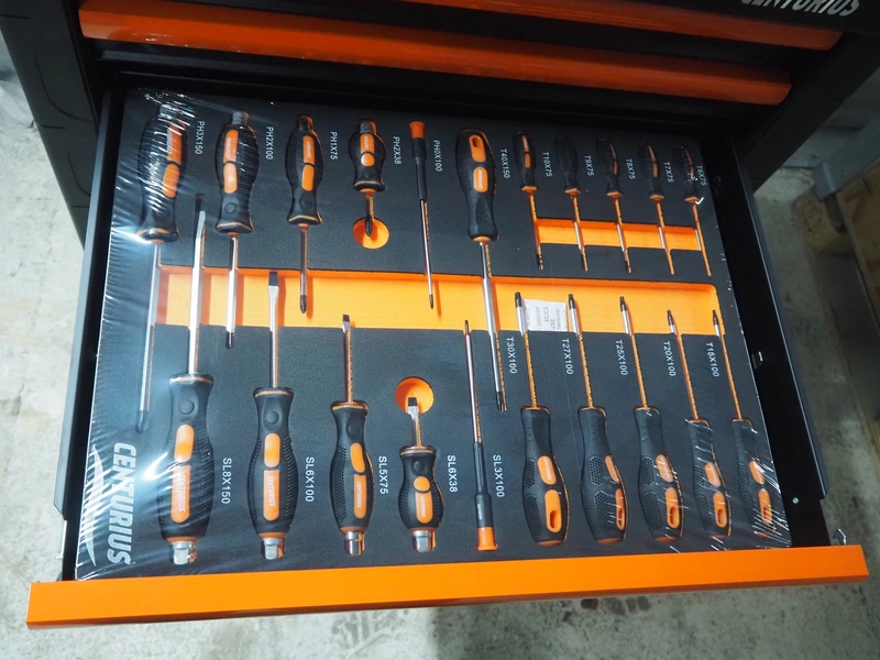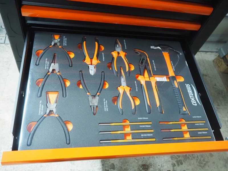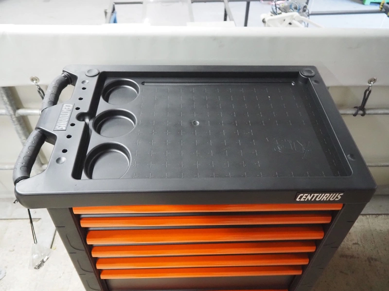 Centurius tool trolley with large amount of tools, dimensions: 780 mm x 470 mm x 970 mm.