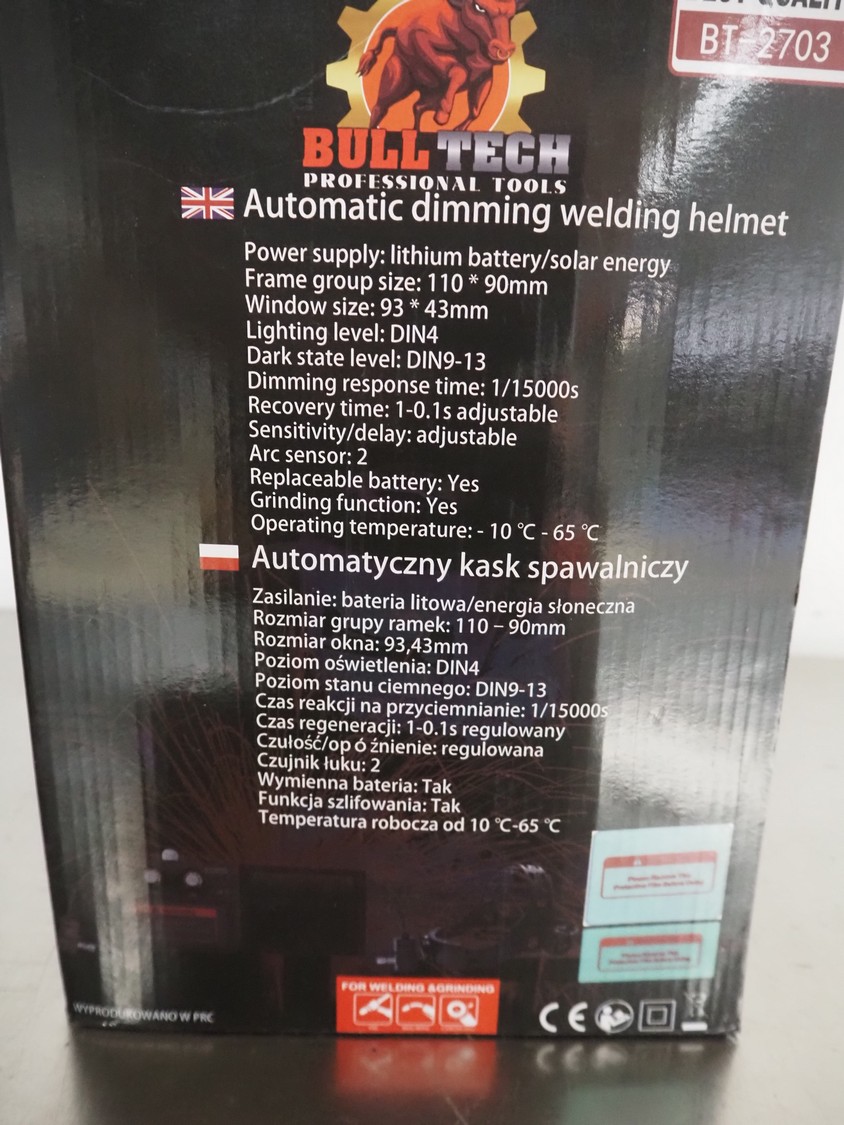 BULL TECH automatic dimming welding helmet.