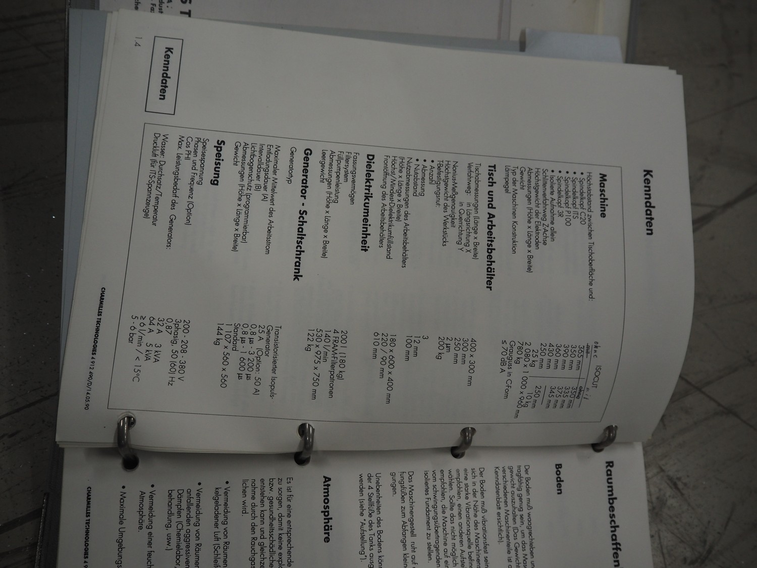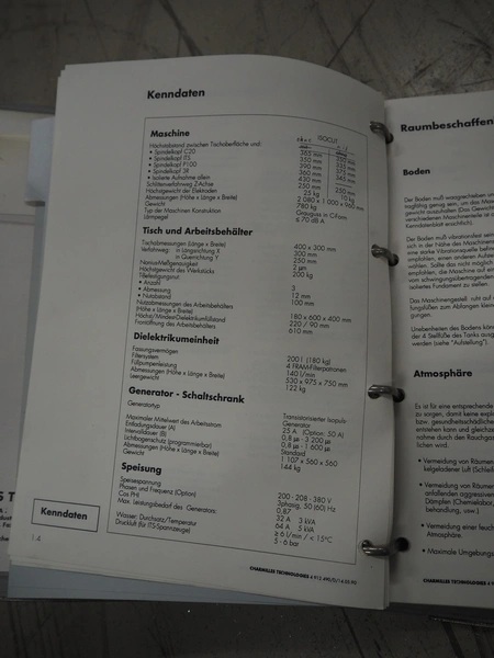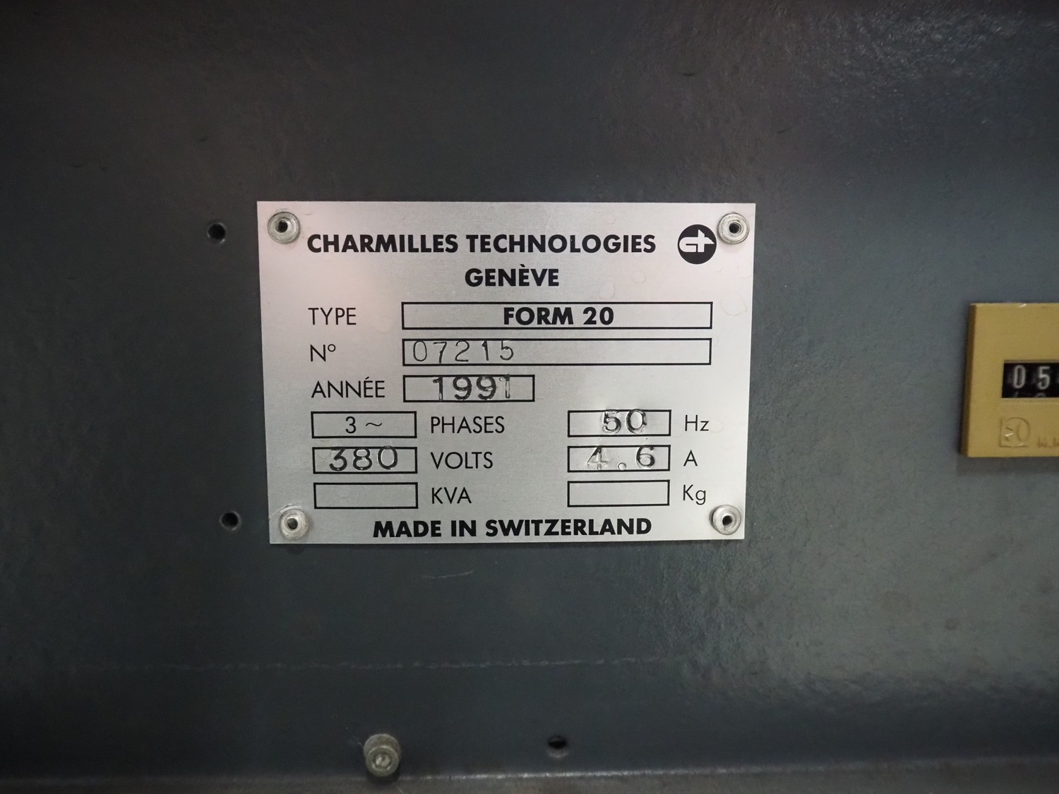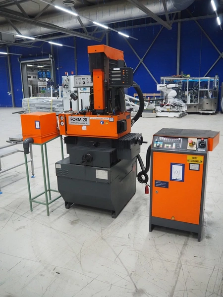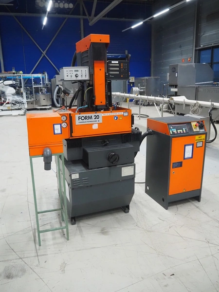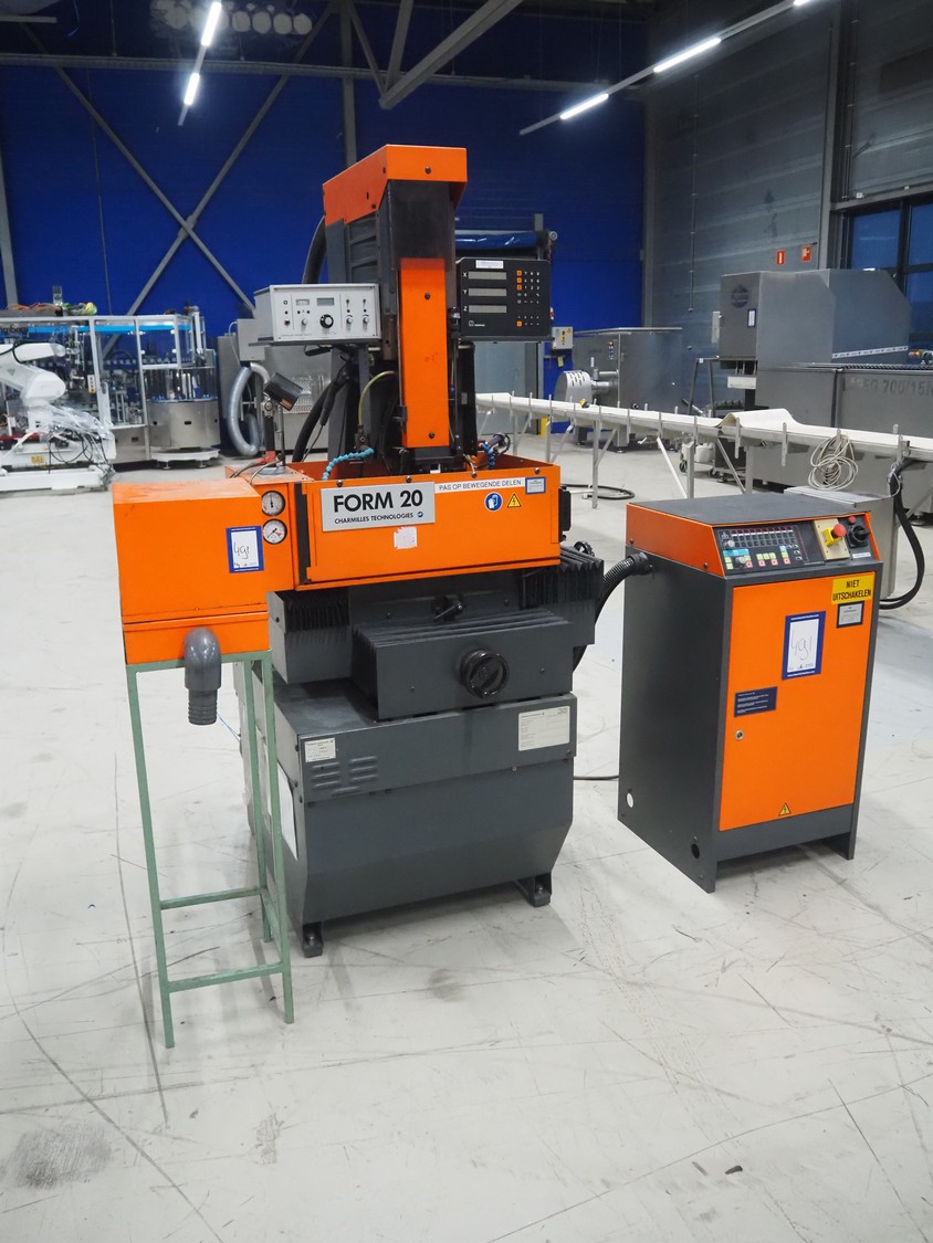 Charmilles Technologies die-sinking machine, type: FORM 20, number: 100464, year of construction: 1991, 380 V, 3 Ph, 50 Hz, 4.6 A, dimensions: 1000 mm x 1200 mm x 2100 mm, 400 mm x 340 mm x 1350 mm.