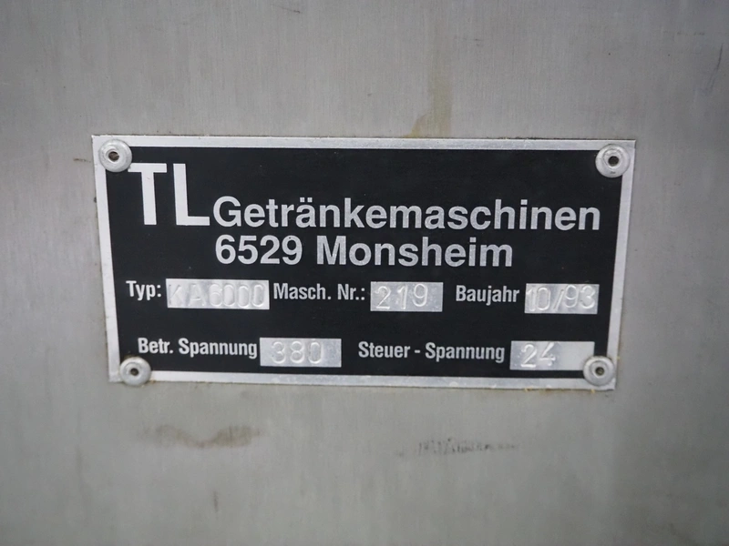TL getränkemaschinen capper, type: KA6000, number: 219, year of construction: 10/93, dimensions: 1800 mm x 800 mm x 2000 mm. Incomplete.