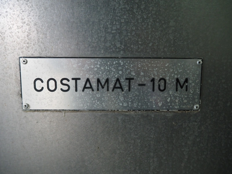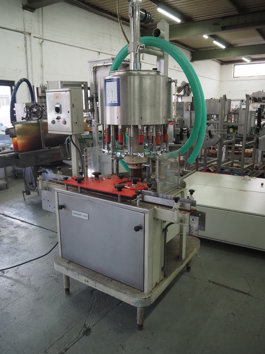 Costamat 10-heads bottle filler, bottle diameter: 35 mm, total dimensions: 1550 mm x 1250 mm x 2500 mm. Belt not included.