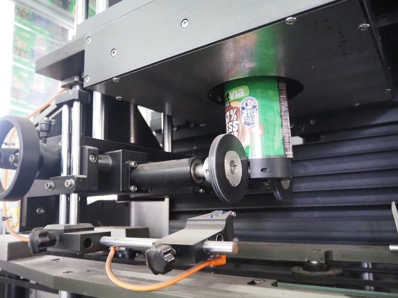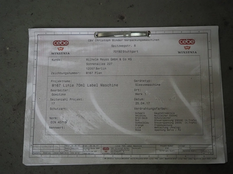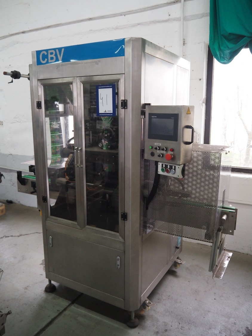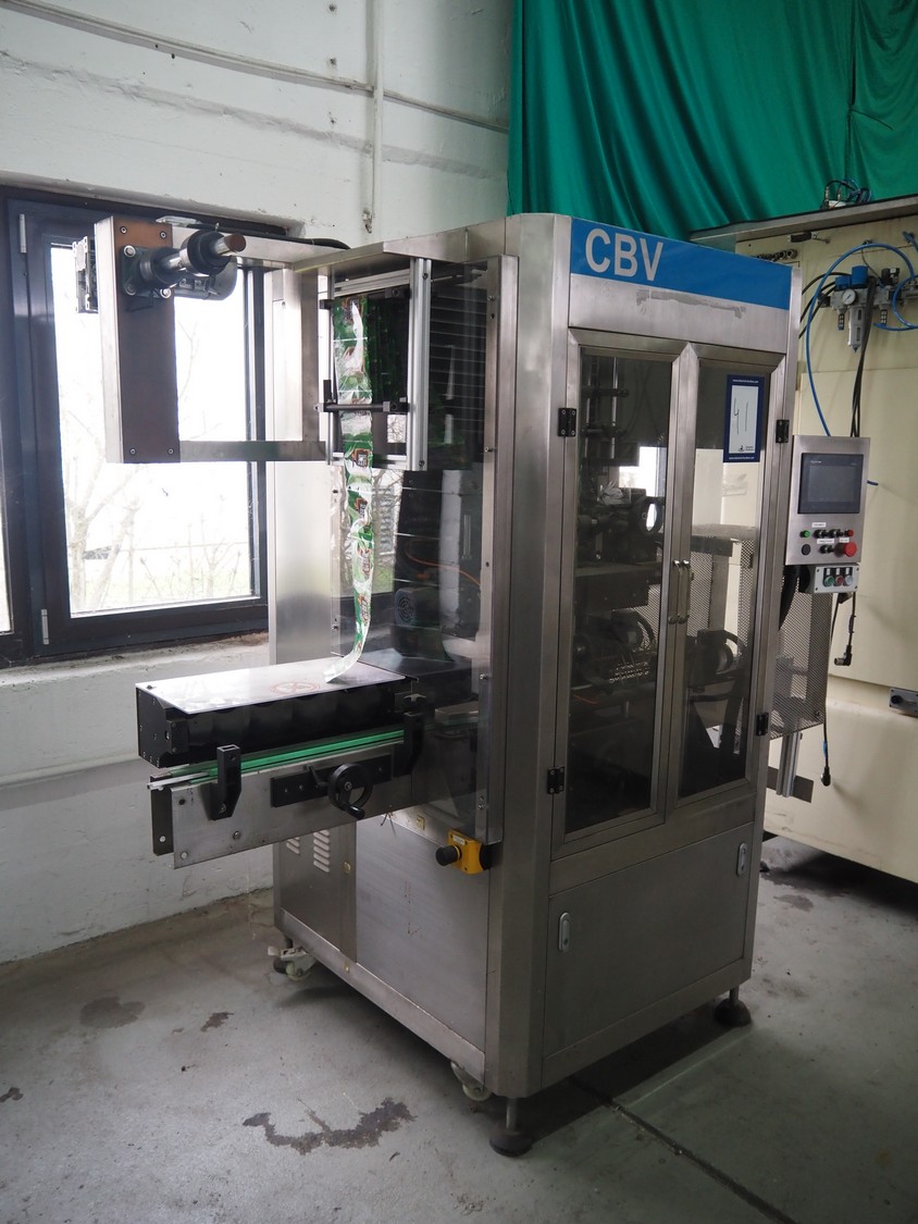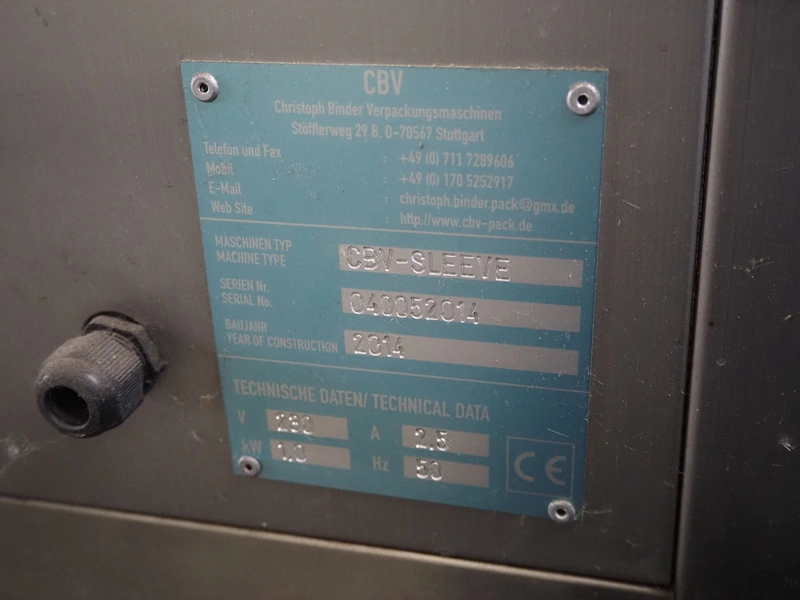 CBV sleeve machine for jars, type: CBV-Sleeve, serial number: 040052014, year of construction: 2014, 230 V, 50 Hz, 2.5 A, 1.0 kW, jar diameter: 80 mm, total dimensions: 2100 mm x 1150 mm x 1950 mm.