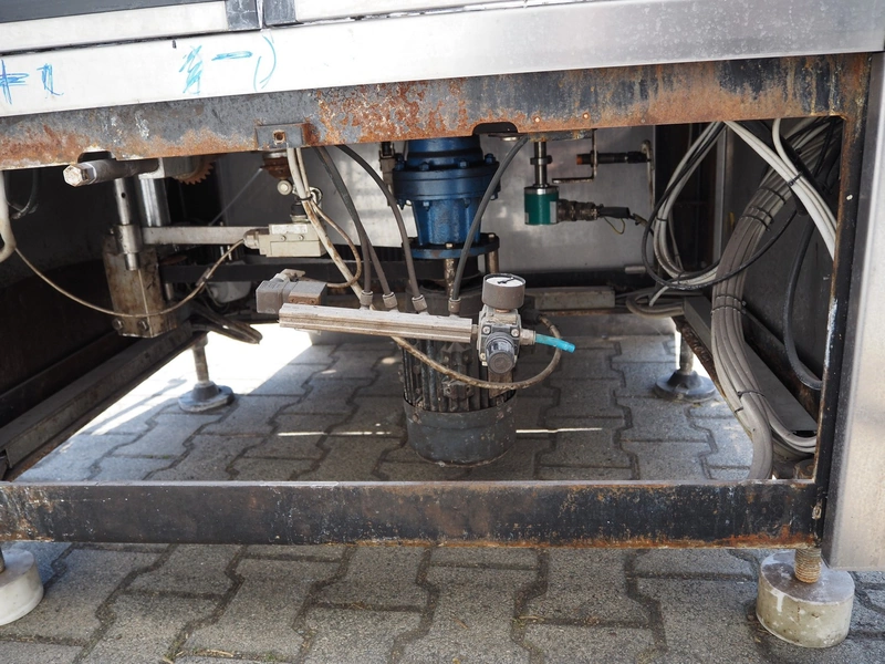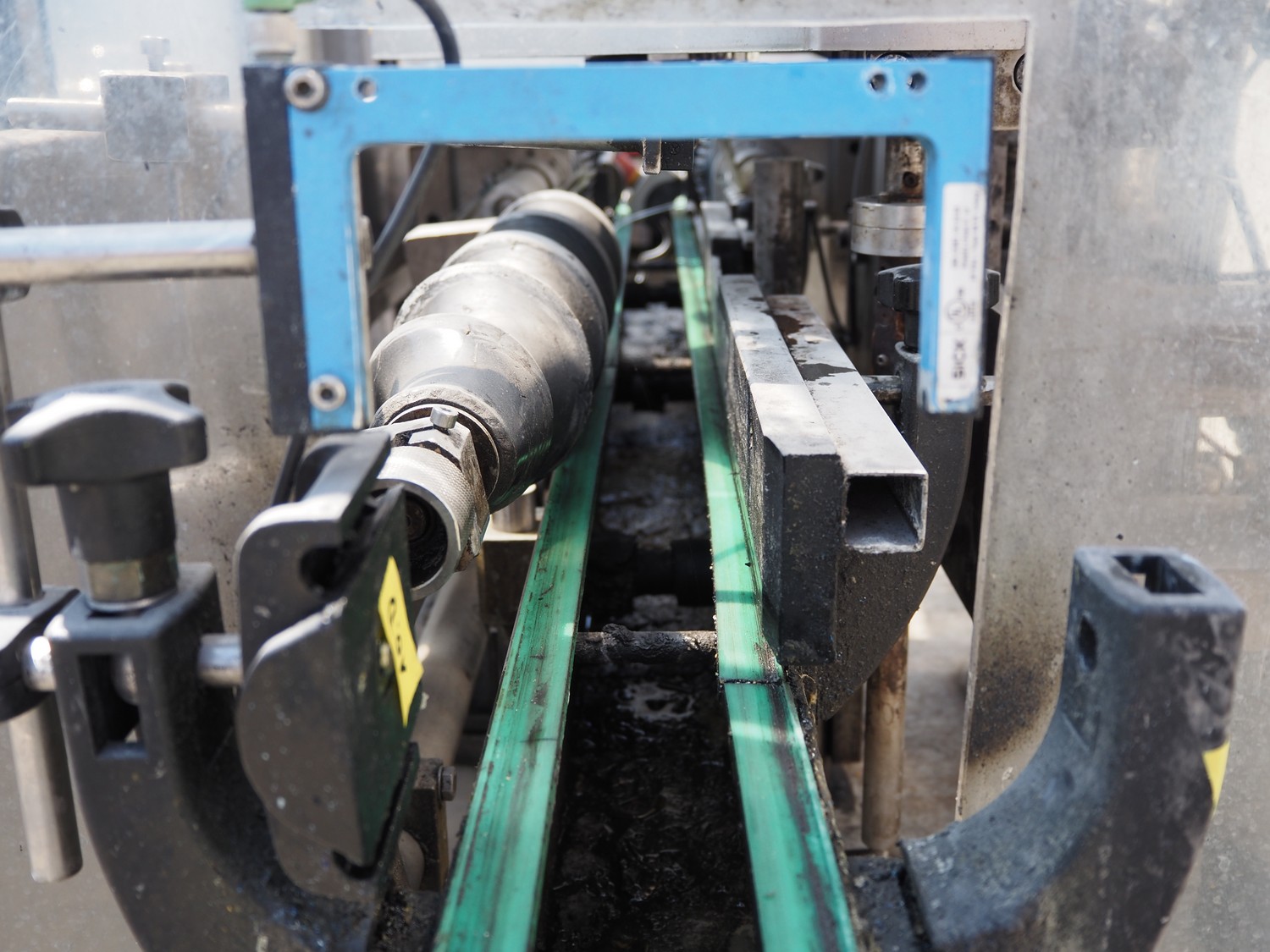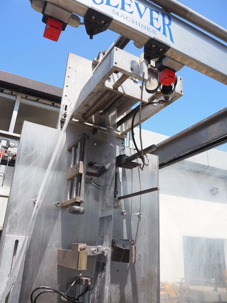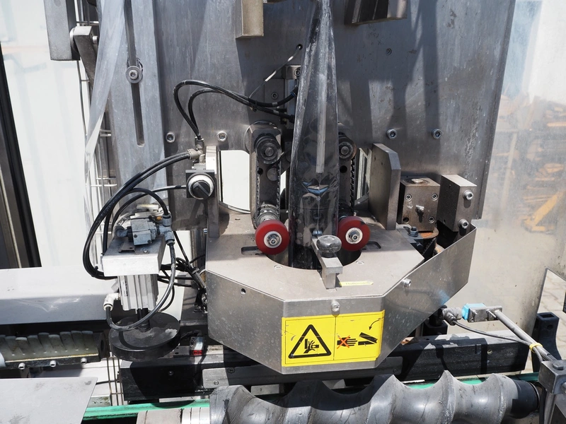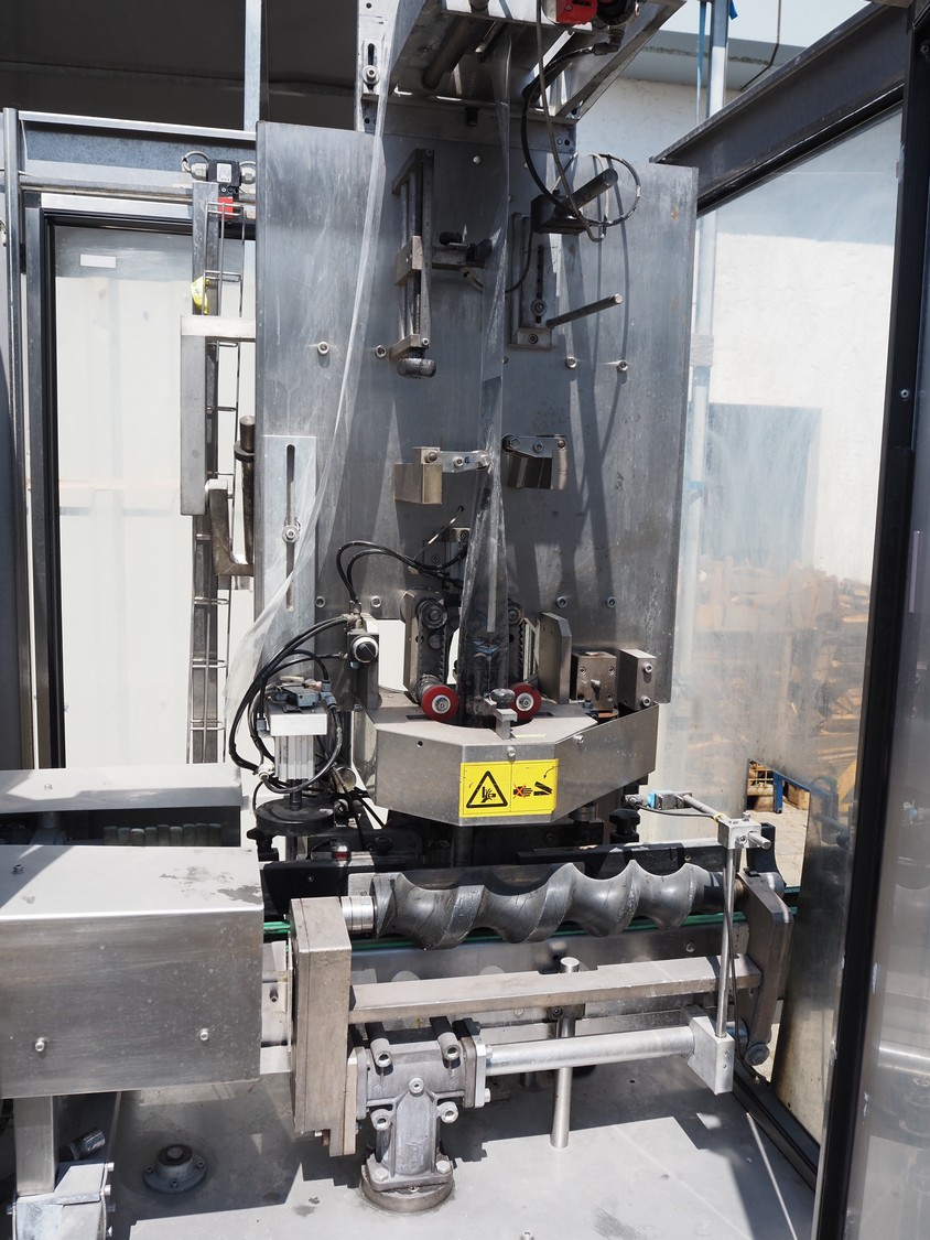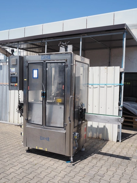 Clever Machines sleever for jars, type: GS 301, serial number: 0087 – 2009, year of construction: 2009, film width: 110 mm, belt width: 85 mm, total dimensions: 2400 mm x 1600 mm x 2450 mm.