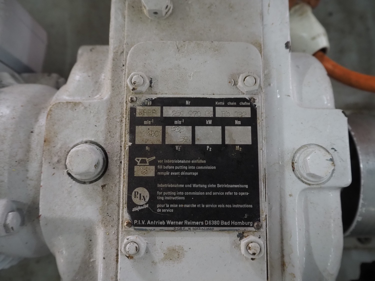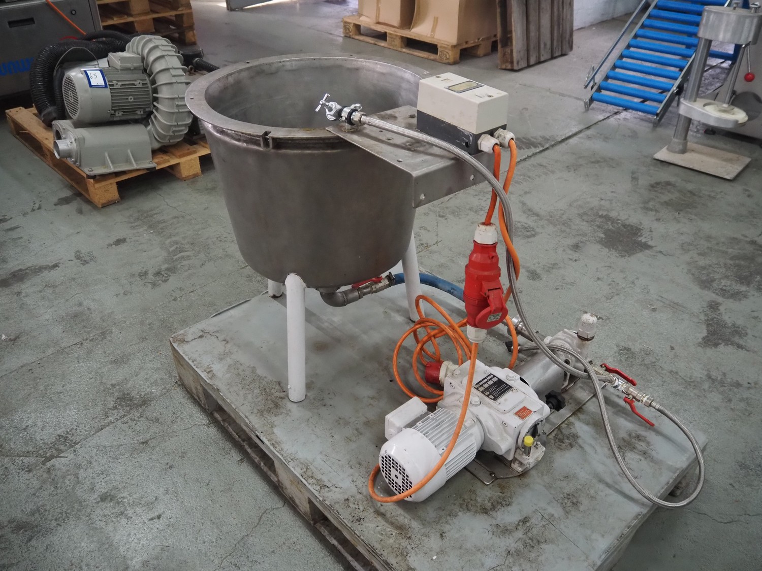 P.I.V. s/s tub with pump, type: FRBP, number: 259 970 G2, inside dimensions: Ø 480 mm x 400 mm, total dimensions: 1200 mm x 800 mm x 1000 mm.