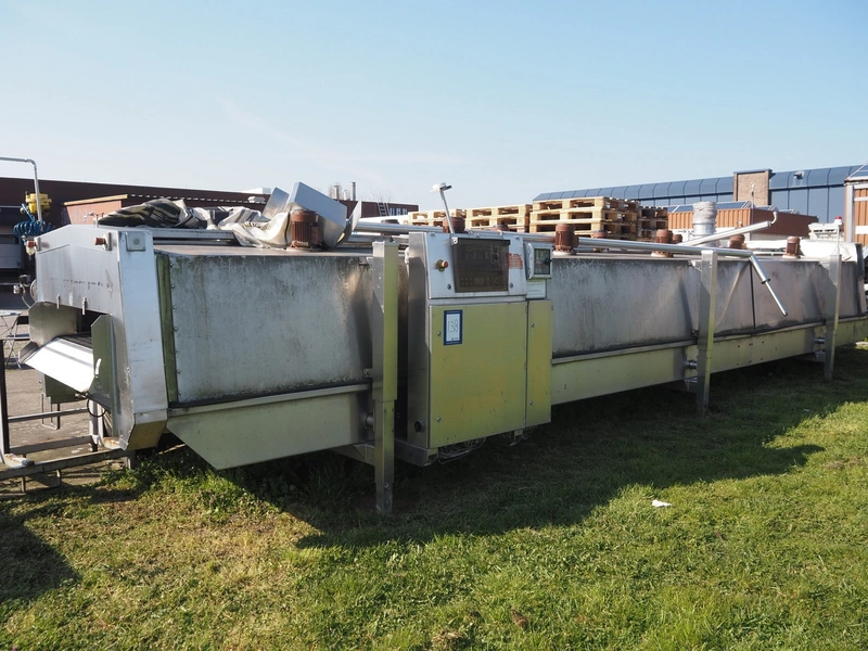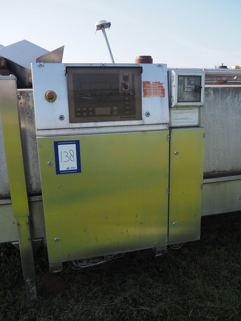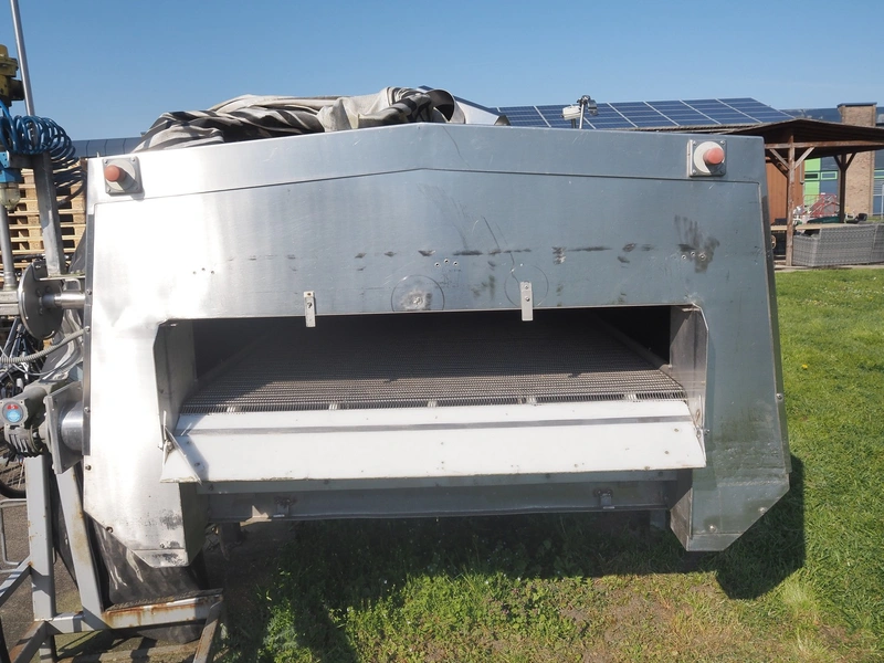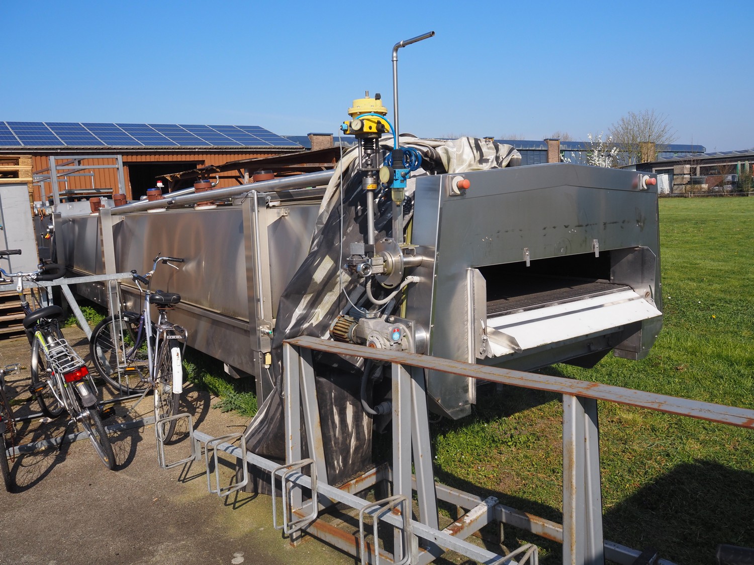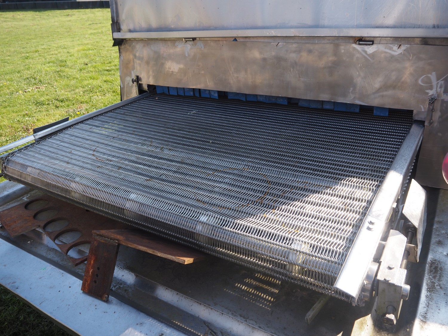 Frigoscandia freezing tunnel, model: AGA Freeze L 1250-6-N, number: 1240034, s/s mesh belt, belt width: 1250 mm, total dimensions: 11000 mm x 2500 mm x 2050 mm