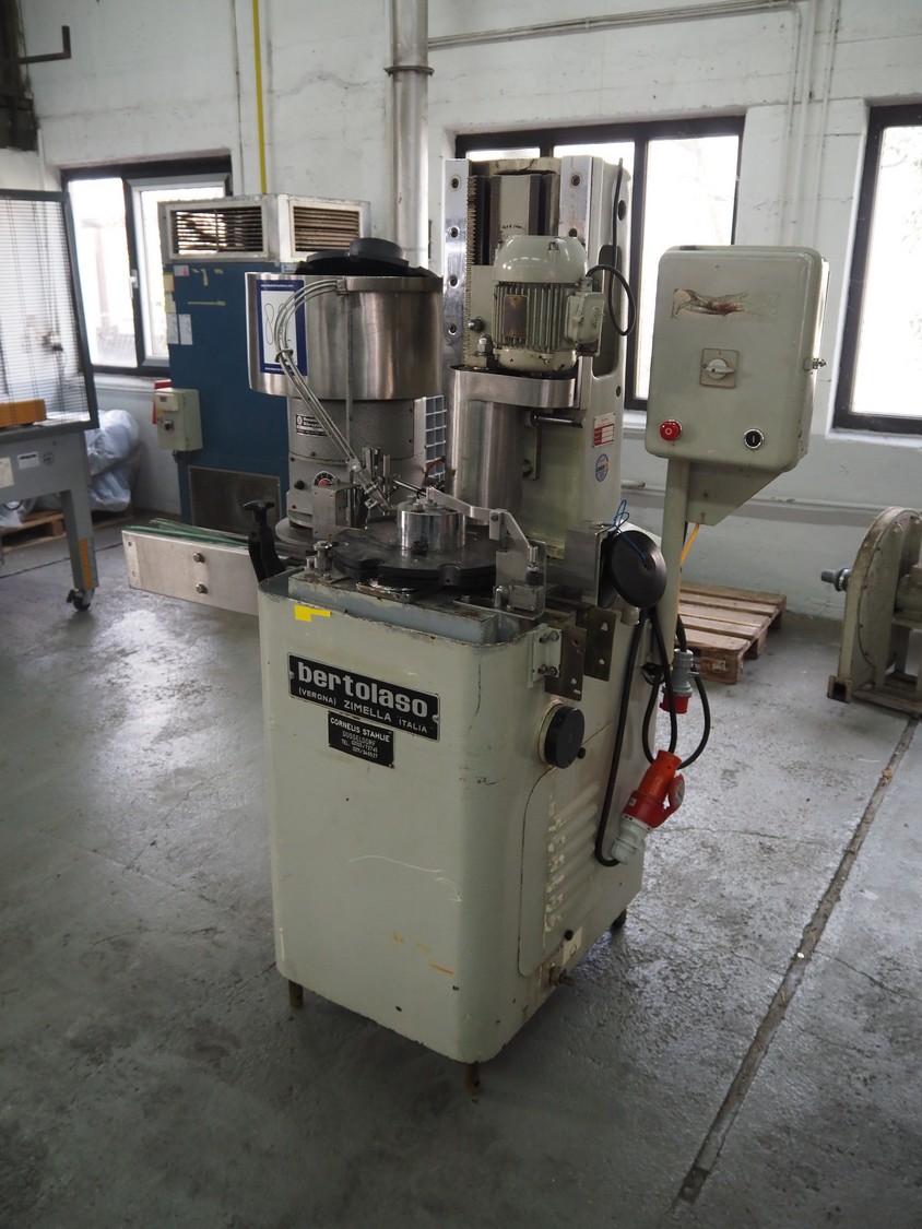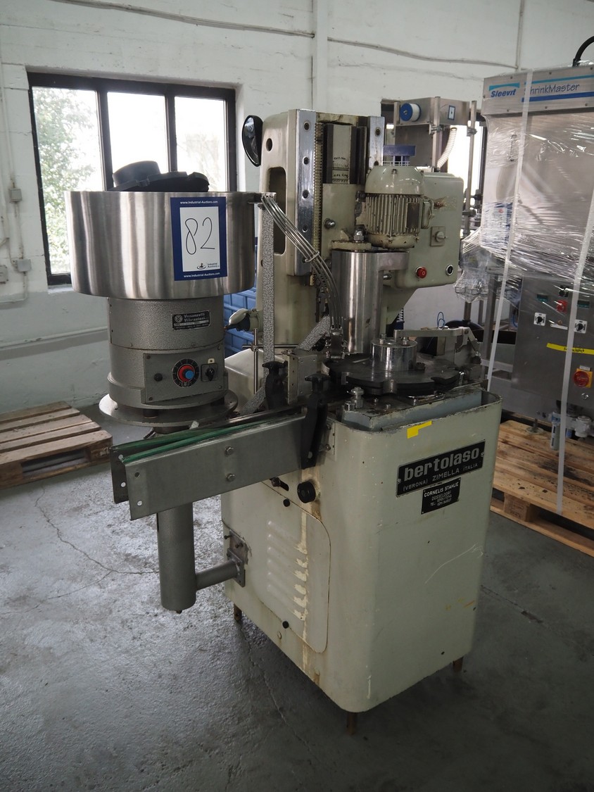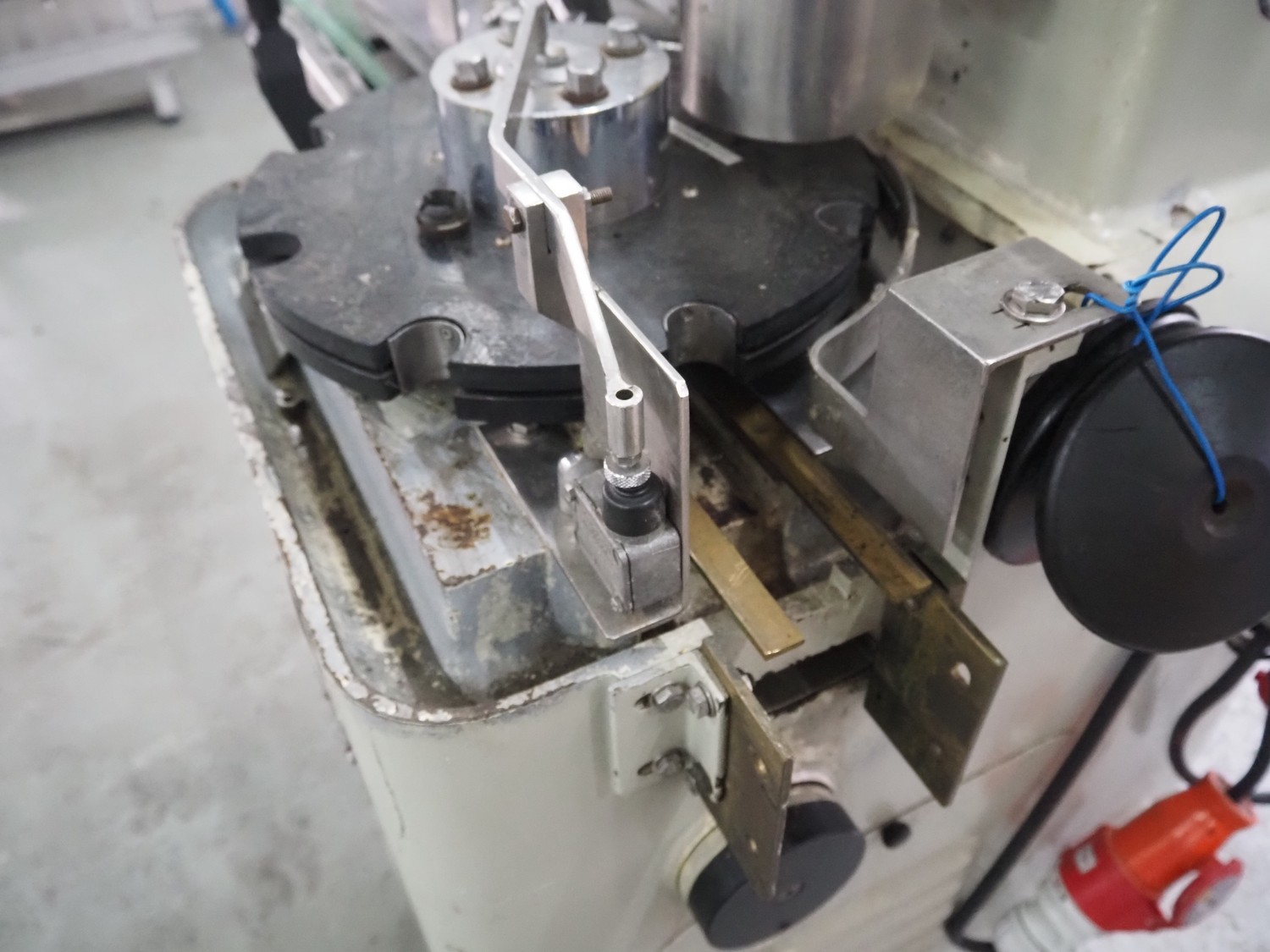 Bertolaso crown bender with cap feeder, type: Alfa, serial number: 230 417, year of construction: 1975, bottle diameter: 40 mm, cap diameter: 25 mm, total dimensions: 1400 mm x 800 mm x 1750 mm.