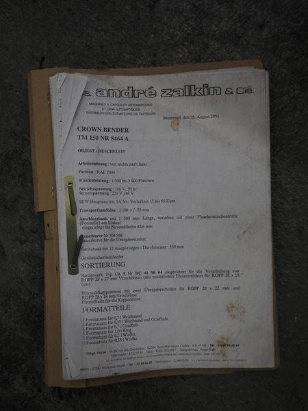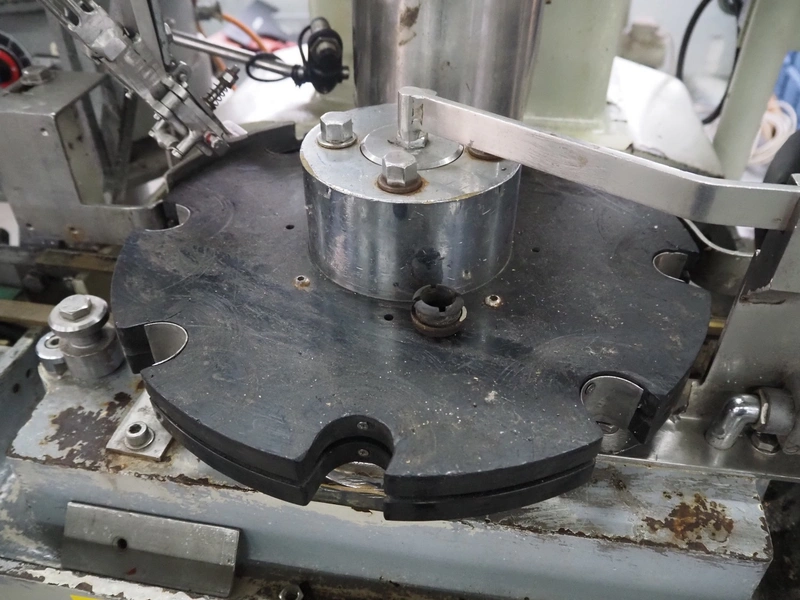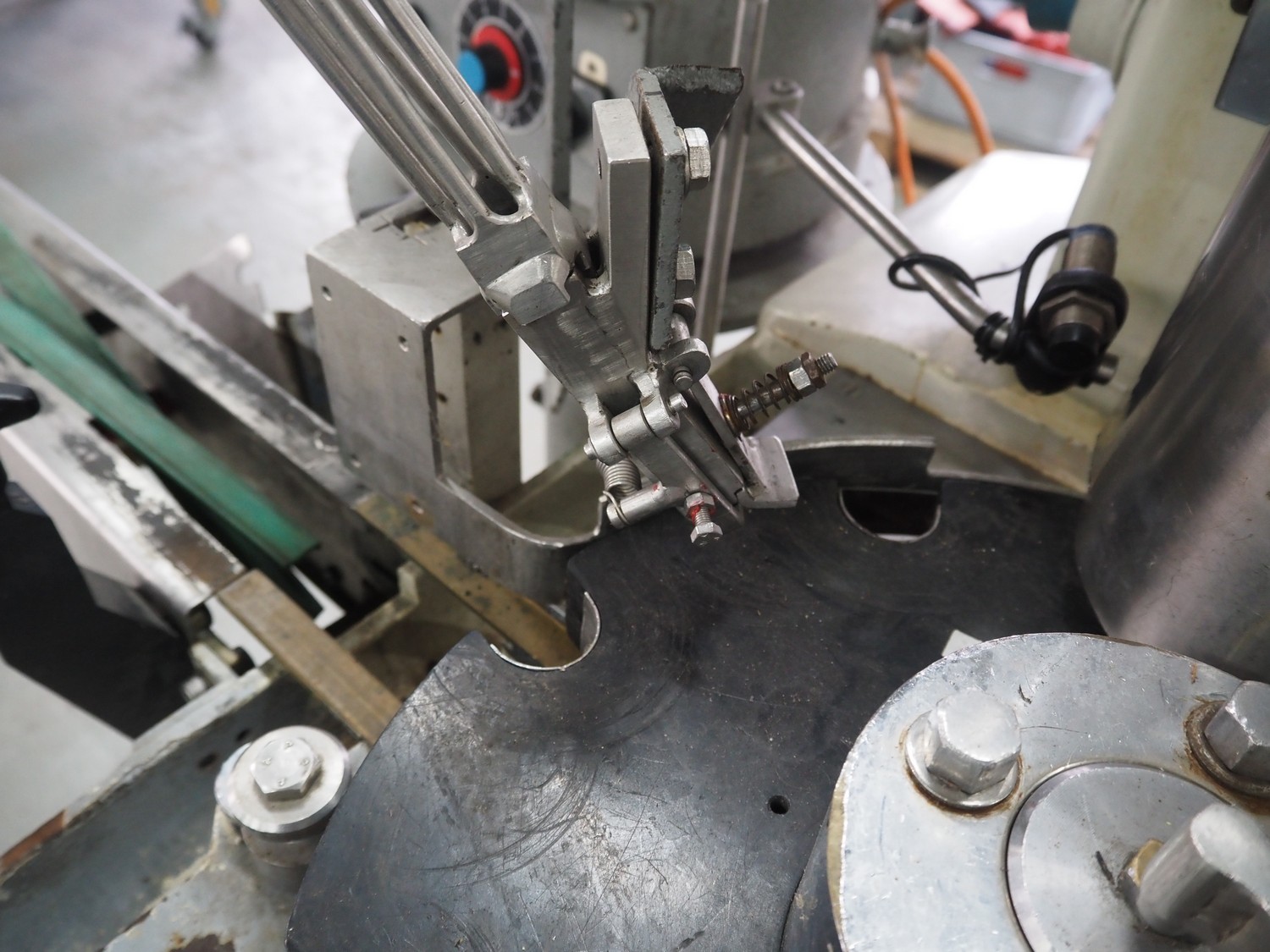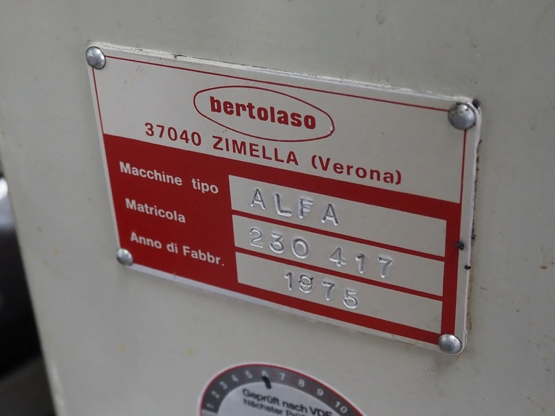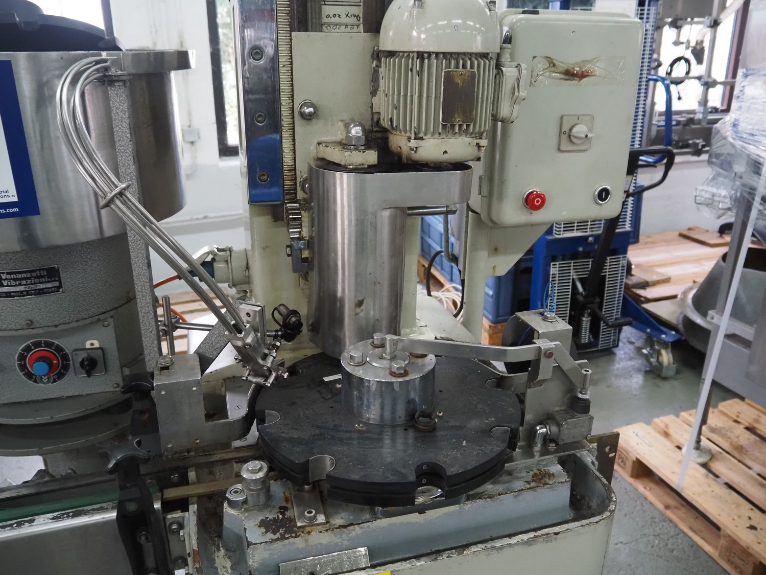 Bertolaso crown bender with cap feeder, type: Alfa, serial number: 230 417, year of construction: 1975, bottle diameter: 40 mm, cap diameter: 25 mm, total dimensions: 1400 mm x 800 mm x 1750 mm.