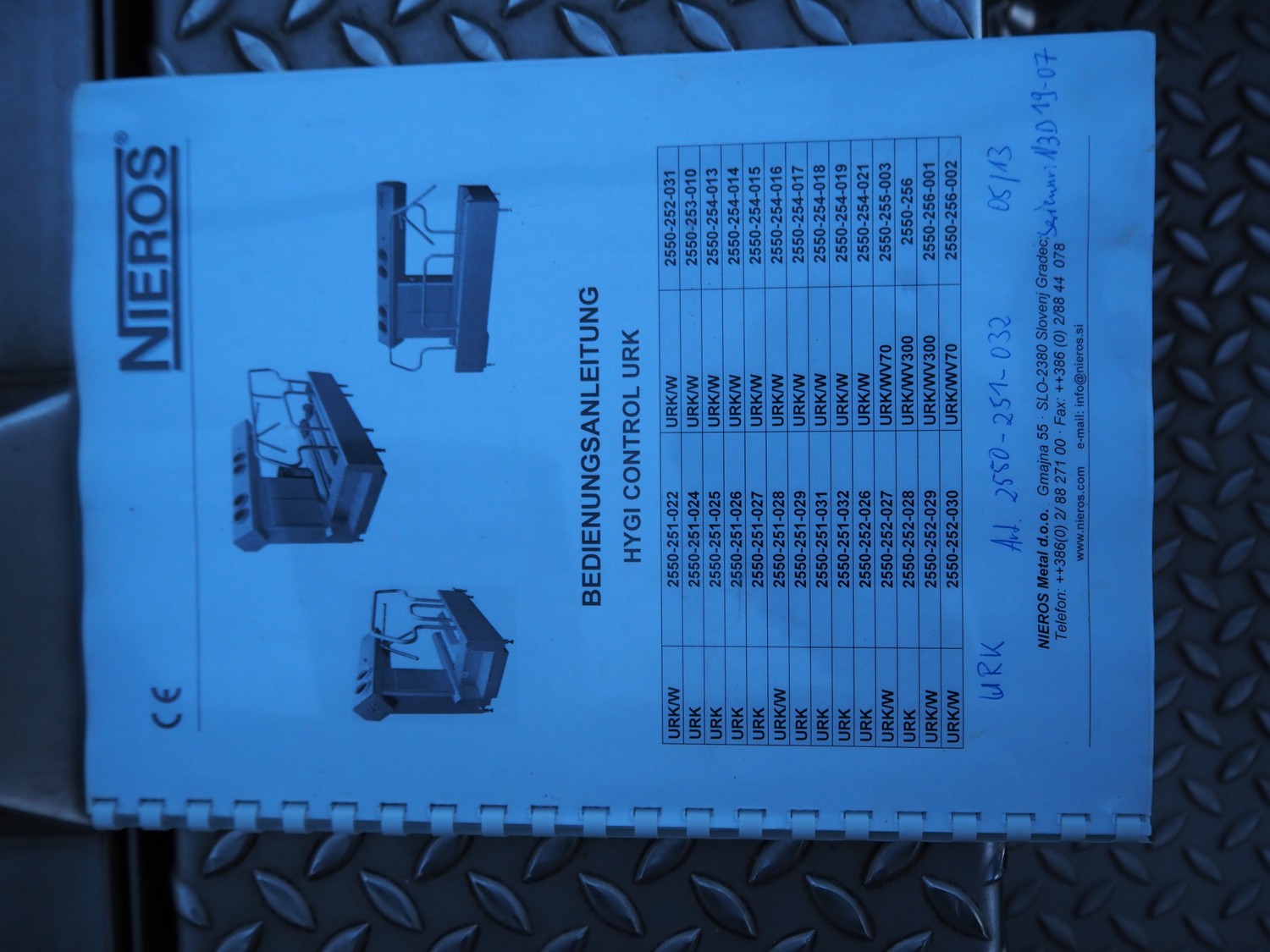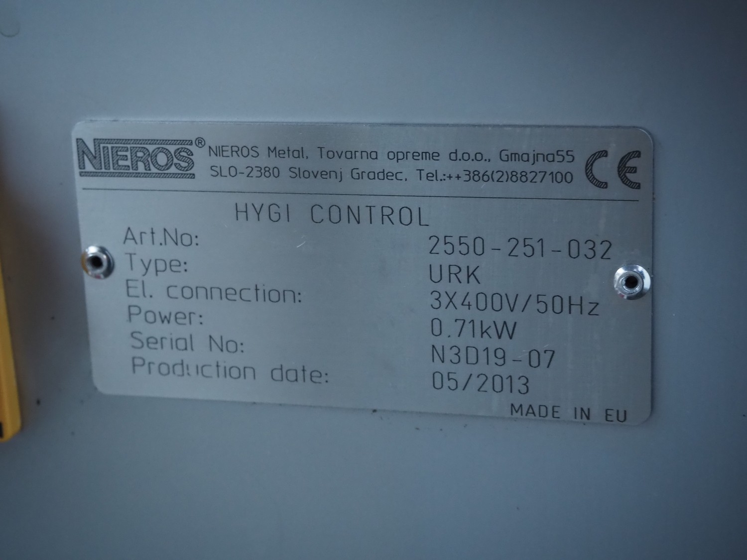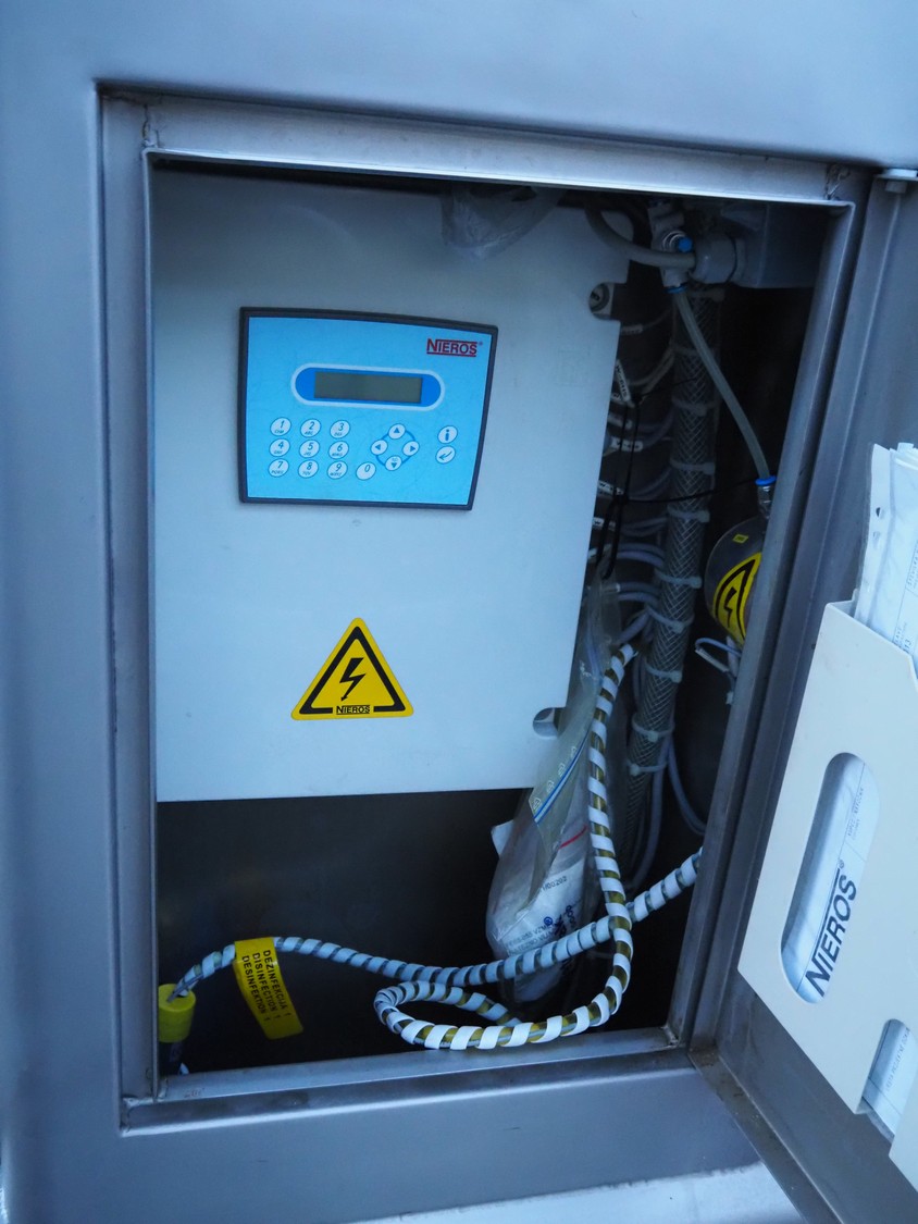 Nieros hygiene station with sole cleaner, tourniquet and hand disinfection, type: URK, serial number: N3D19-07, year of construction: 05/2013, brush length: (2x) 450 mm, total dimensions: 1350 mm x 950 mm x 1600 mm.
