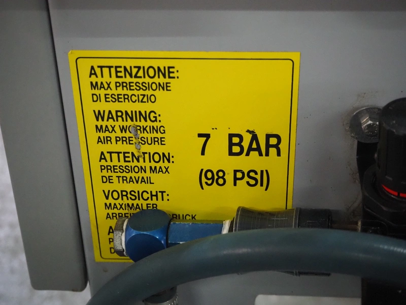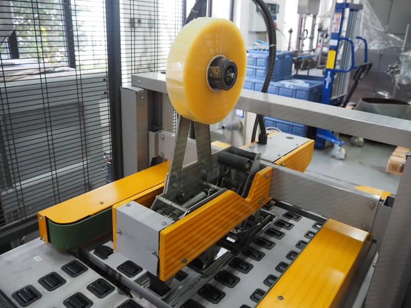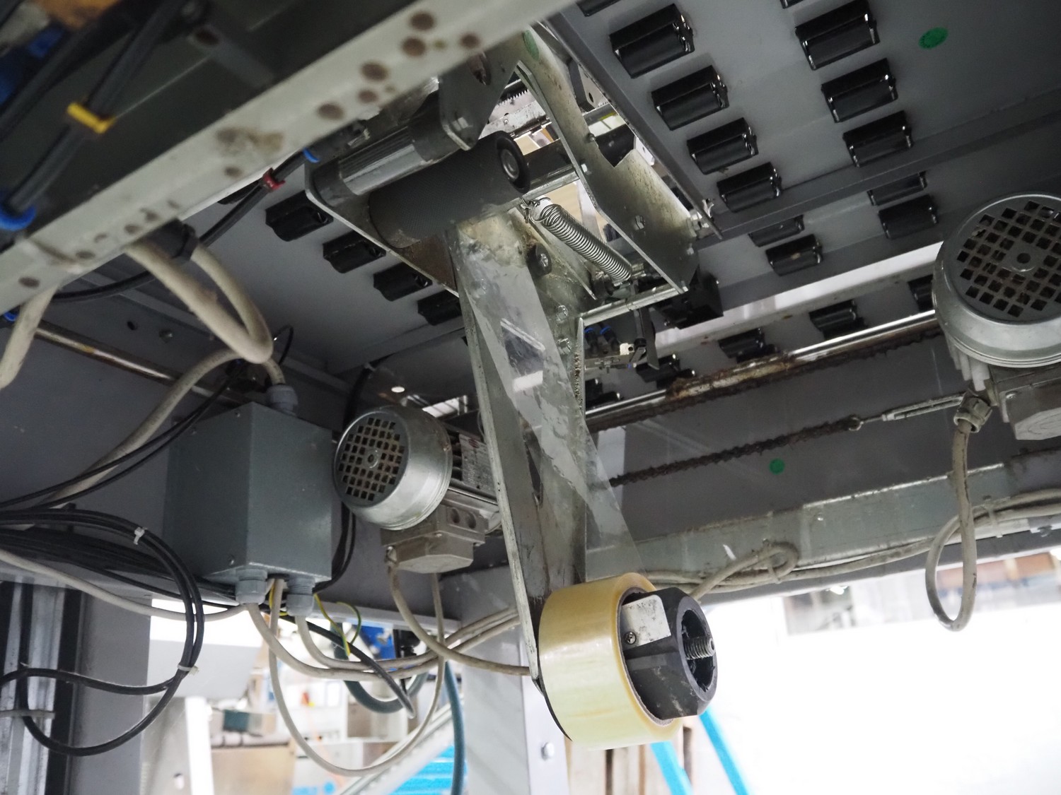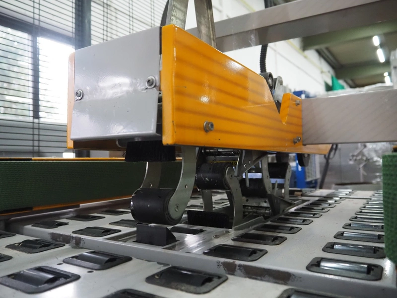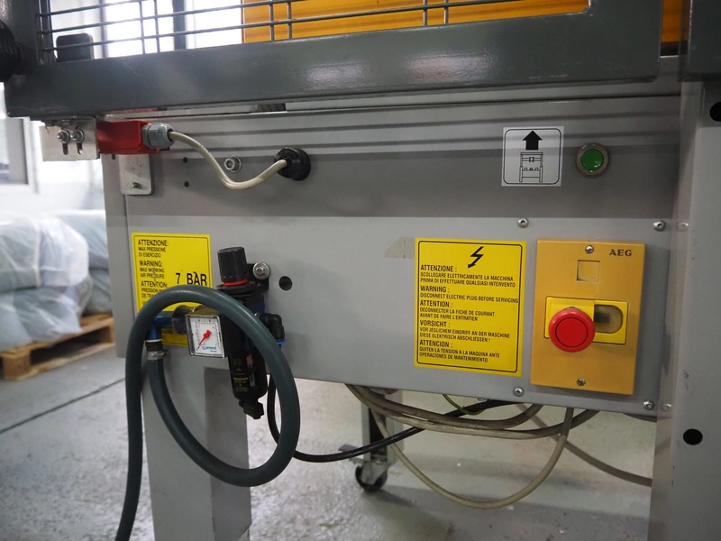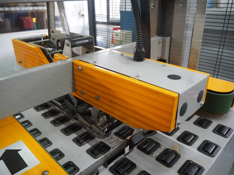 Strapex mobile box closing machine, type: Locktape 50 A, serial number: KN/033340, year of construction: 04/99, 380 V, 3 Ph, 50 Hz, 1.5 A, 0.6 kW, weight: 197 kg, clearance: 500 mm x 100 mm, total dimensions: 1100 mm x 1120 mm x 1820 mm.