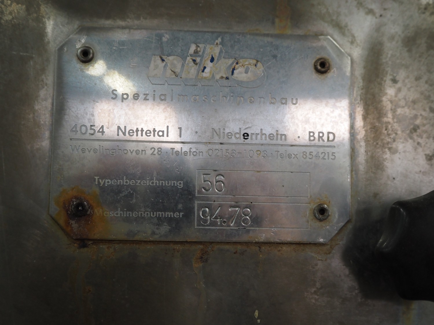 Niko Spezialmaschinenbau GmbH & Co. KG mobile salt dosing unit, type: 56, serial number: 94.78, inside dimensions: 500 mm x 400 mm x 400 mm, diameter output: 55 mm, total dimensions: 1500 mm x 800 mm x 2300 mm.