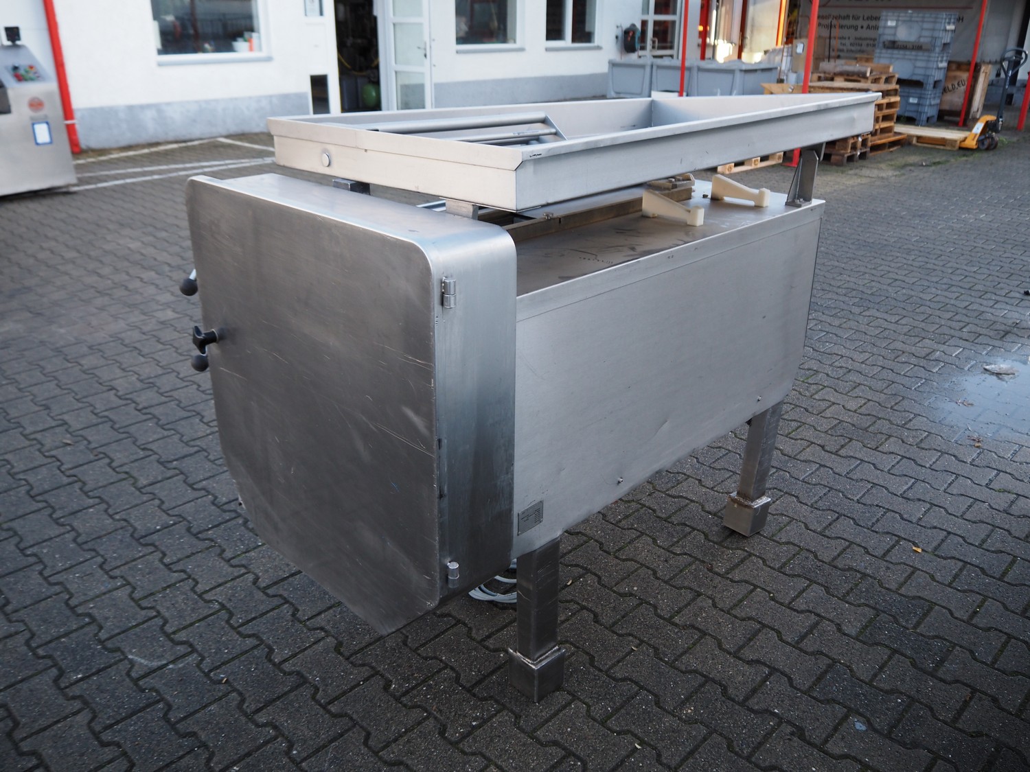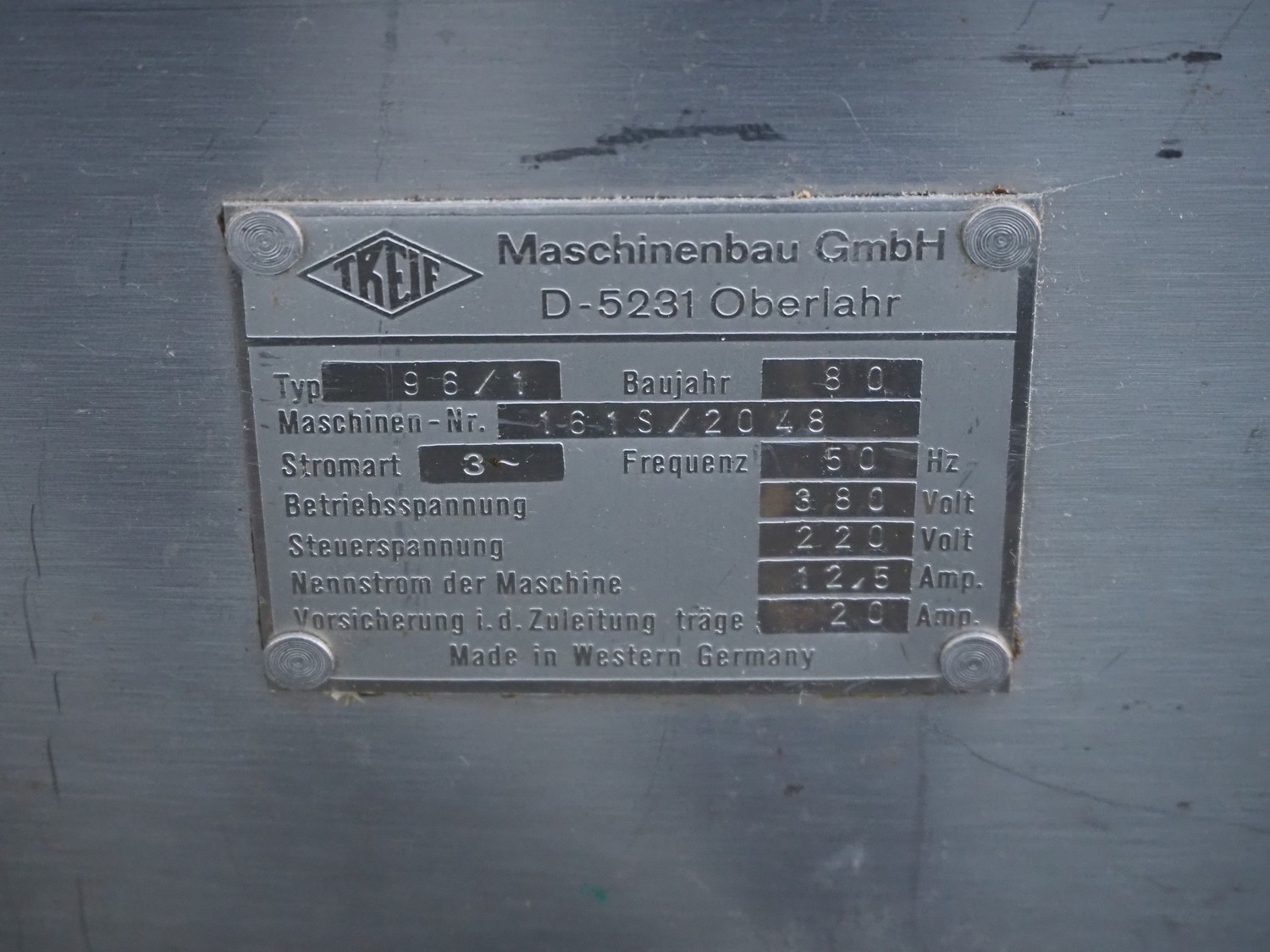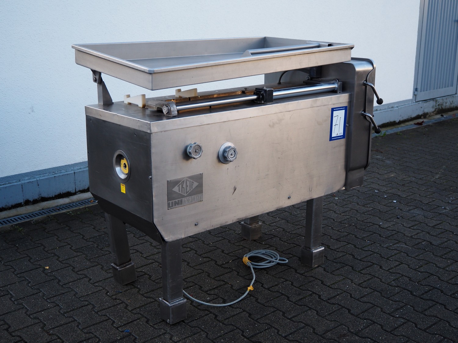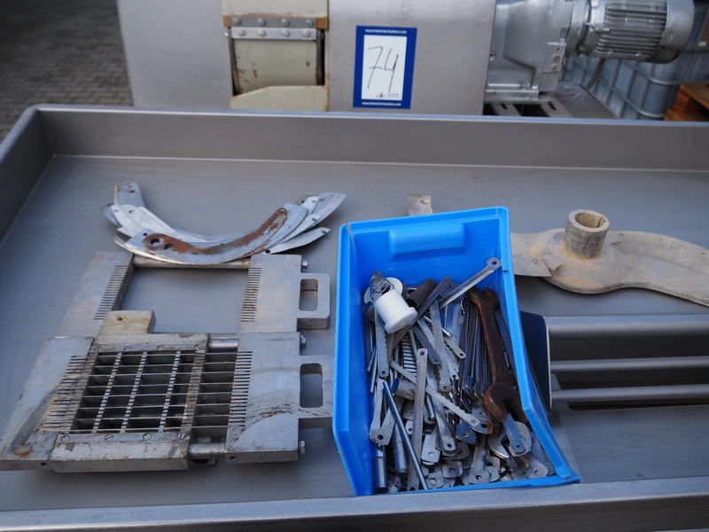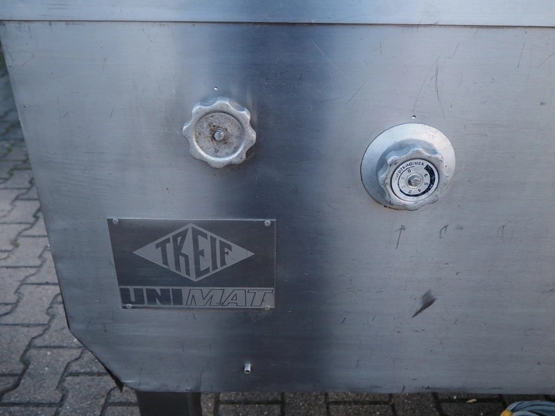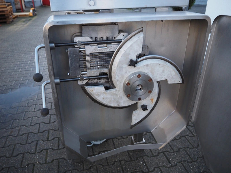 Treif dicer, type: 96/1, machine number: 161S/2048, year of construction: 1980, 220/380 V, 3 Ph, 50 Hz, 12.5/20 A, chamber dimensions: 150 mm x 150 mm, total dimensions: 1600 mm x 900 mm x 1300 mm.