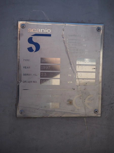 Scanio fat analyser, type: Scanalyser, machine number: 23, year of construction: 1997, 400 V, 3 Ph, 50 Hz, 3 A, 1.2 kW, dimensions: 750 mm x 1000 mm x 1900 mm.