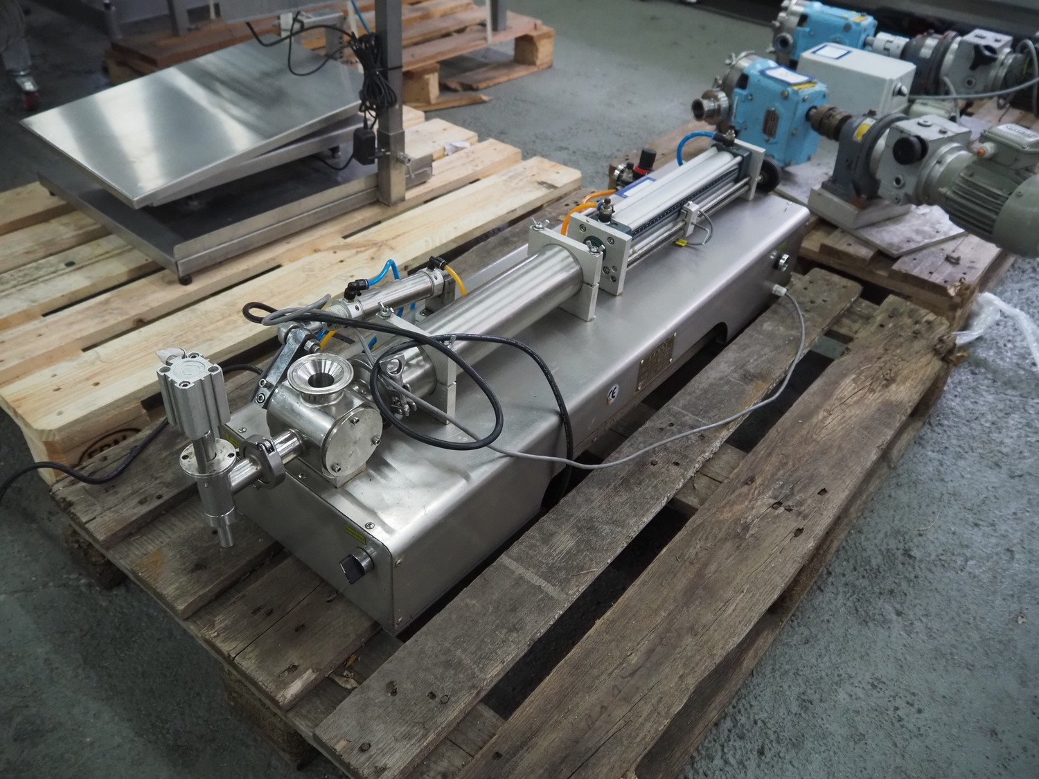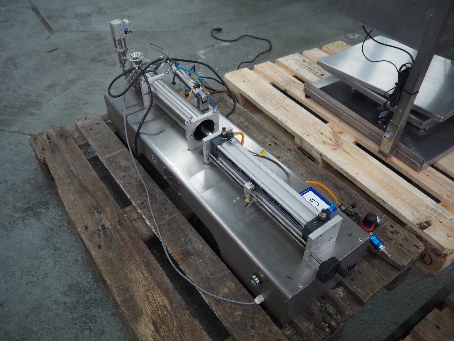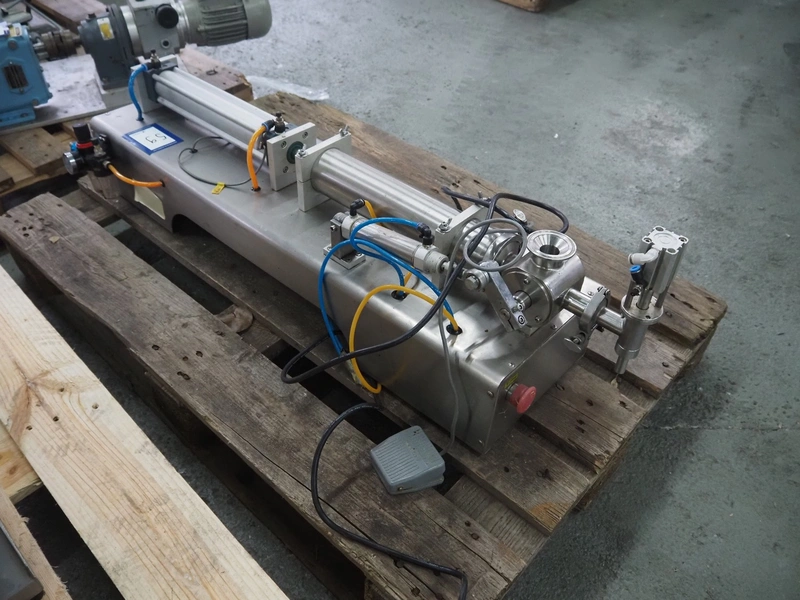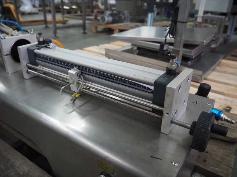 S/s filling machine, filling range: 100-1000 ml/g, dimensions: 1100 mm x 400 mm x 500 mm. Incomplete.