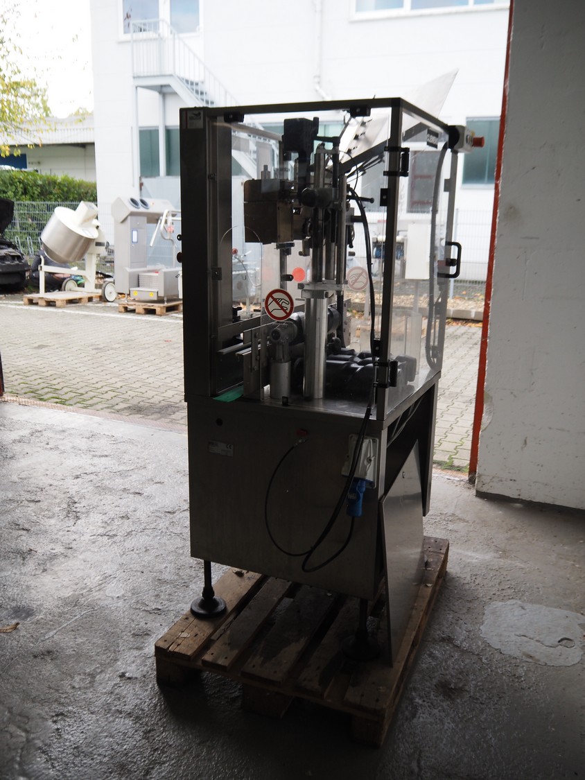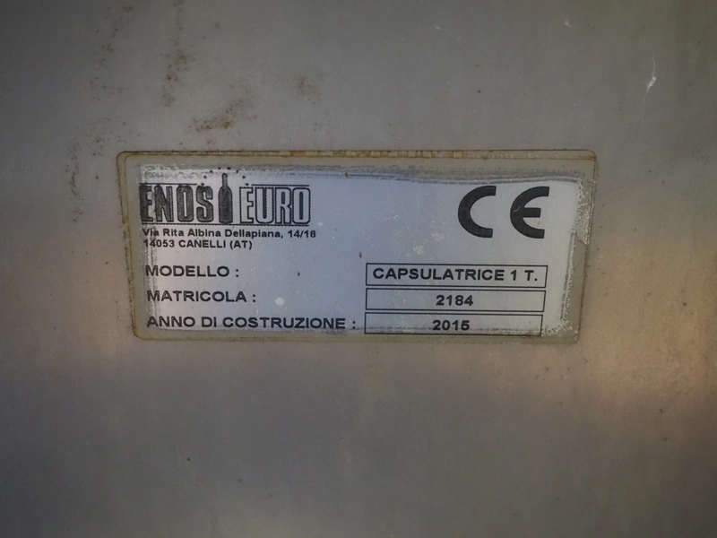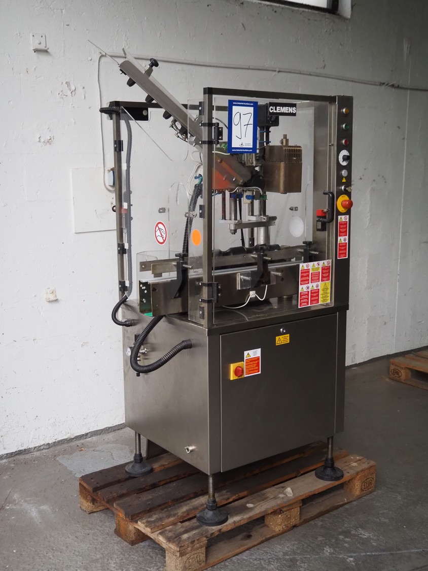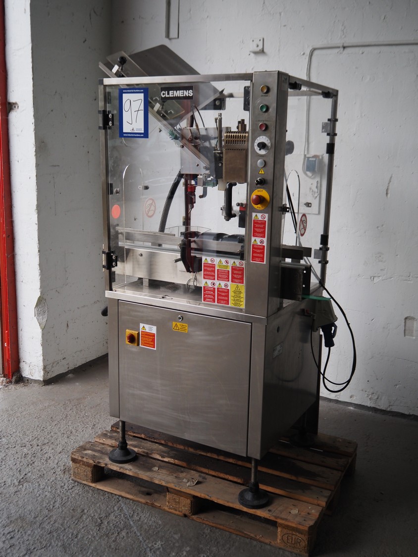 Clemens capping machine, model: Capsulatrice 1 T., serial number: 2184, year of construction: 2015, lane width: 40 mm, total dimensions: 1000 mm x 800 mm x 1970 mm.