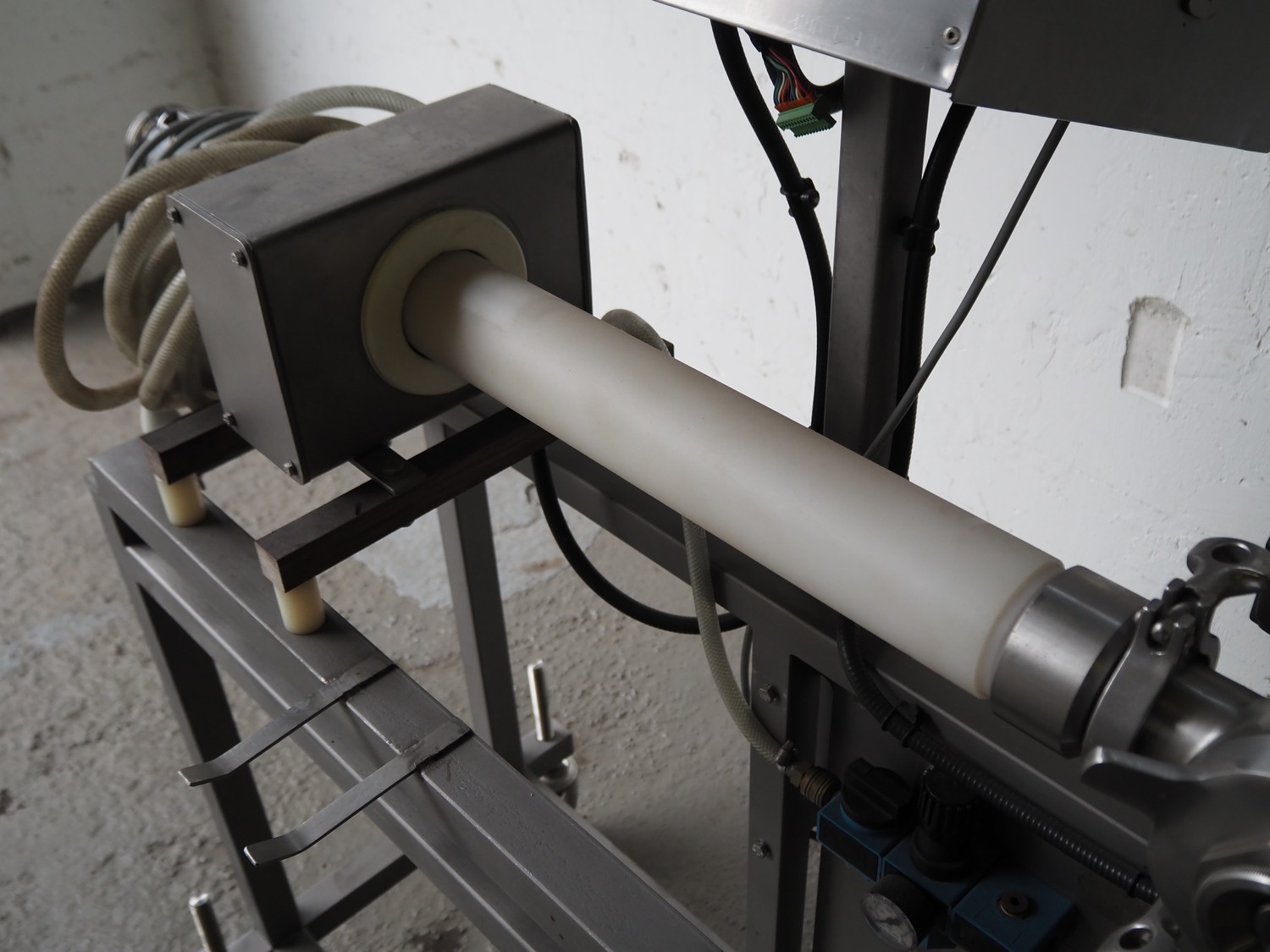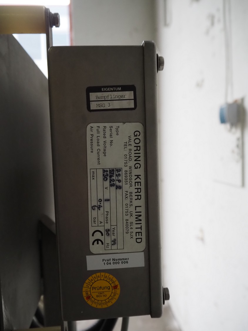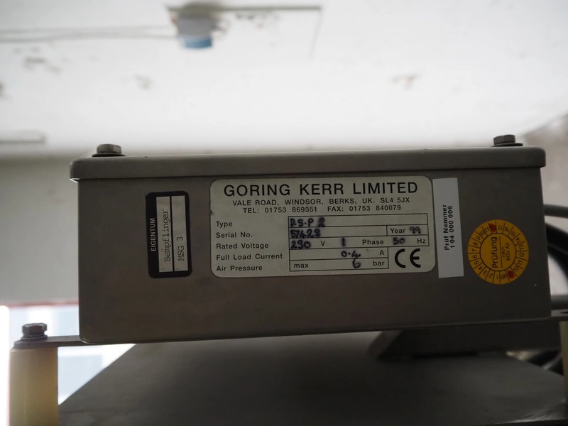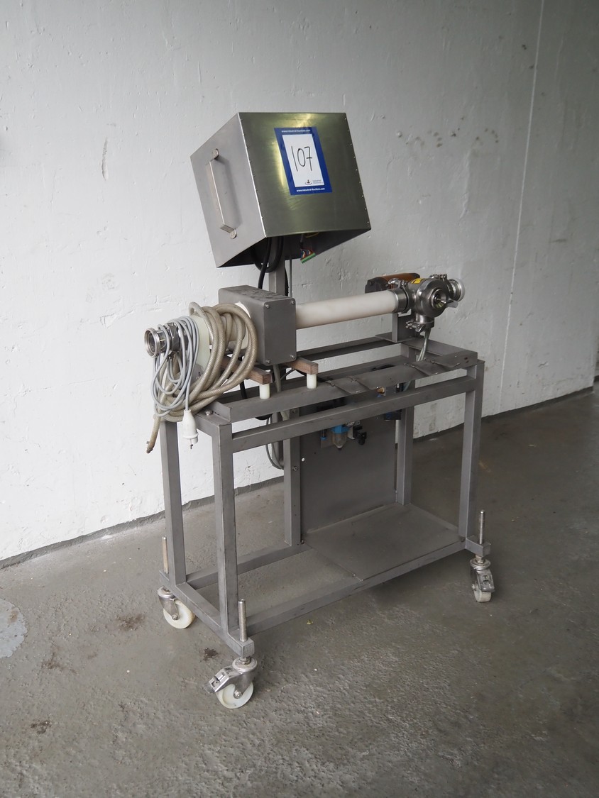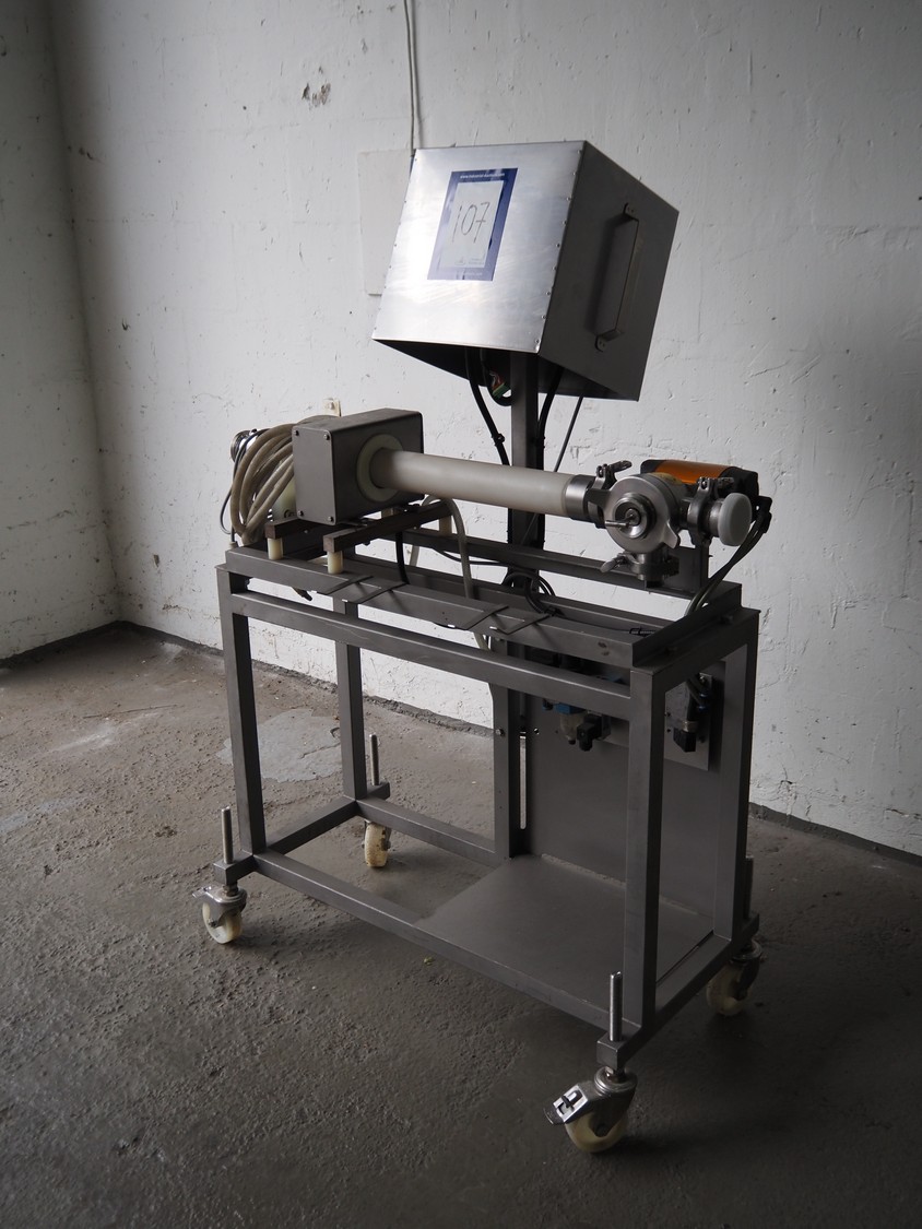 Goring Kerr Limited mobile pipeline metal detector, type: D.S.P2, serial number: 57423, year of construction: 1999, 230 V, 1 Ph, 50 Hz, 0.4 A, diameter clearance: 70 mm, total dimensions: 1200 mm x 500 mm x 1500 mm. Incomplete.